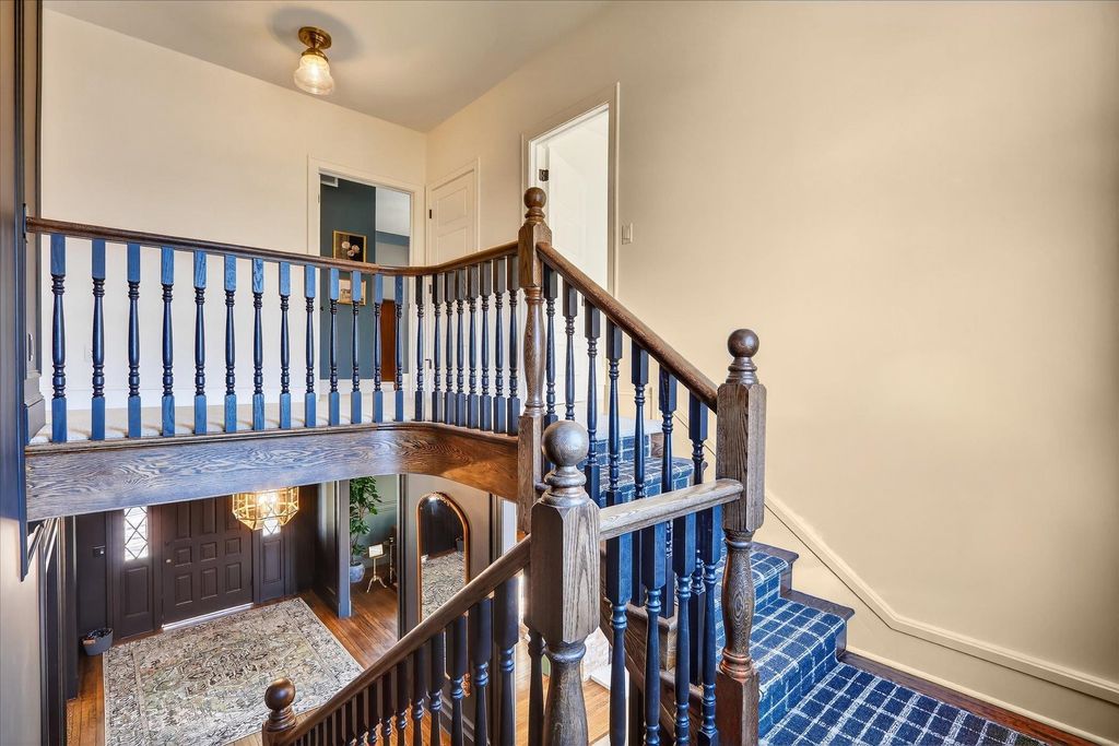 This standout Dutch Colonial, located right next to Beloit College, blends classic elegance with modern amenities. The entire home has been thoughtfully renovated, with attention to every detail. The grand foyer welcomes you with a sweeping staircase. A two-sided fireplace warms both the living and family rooms. The tuxedo kitchen, featuring a black-and-white checkerboard floor, flows into a dreamy butler's panty. An airy and spacious breezeway connects the home to the newly added 3-car garage. The backyard features hardscape outdoor fire pit and grilling area. With a formal dining room, a large primary suite, and a spacious walk-up finished attic, this home is a perfect blend of historical charm and thoughtful modern touches.