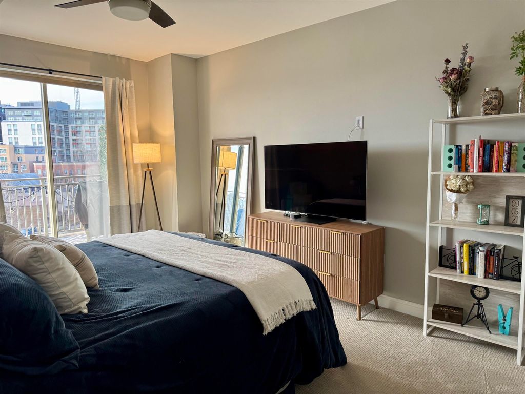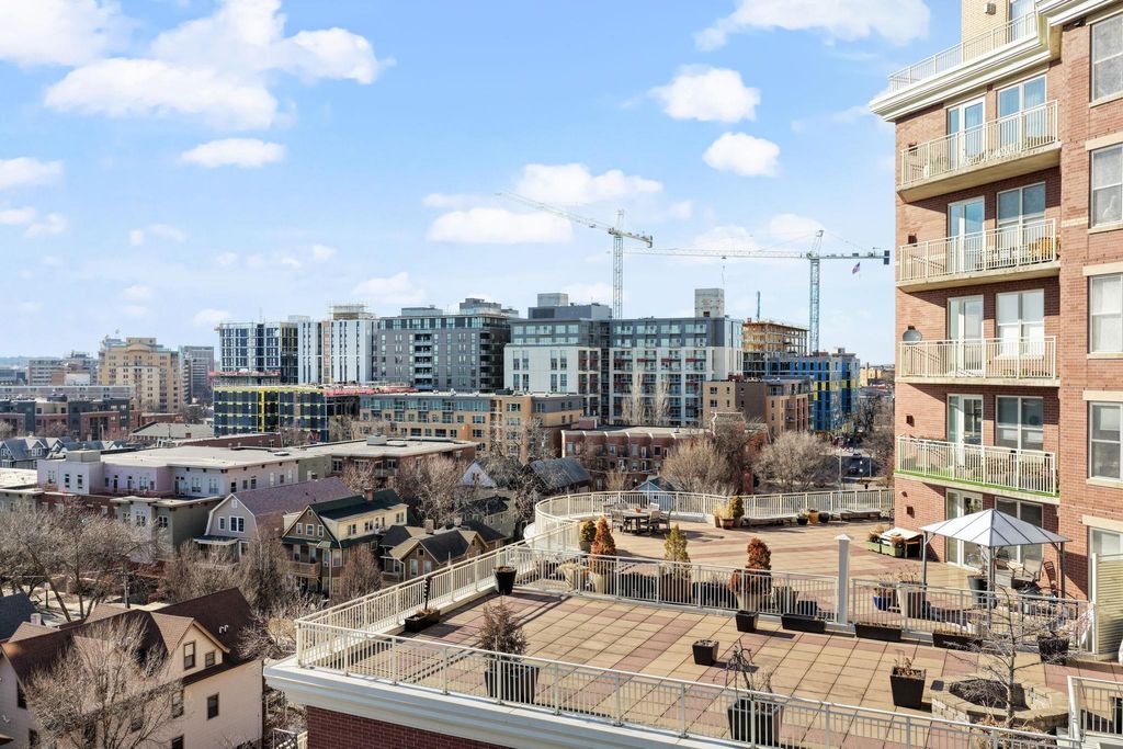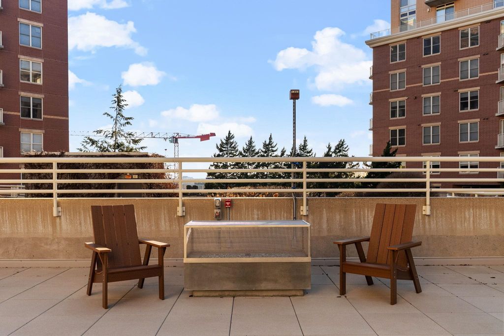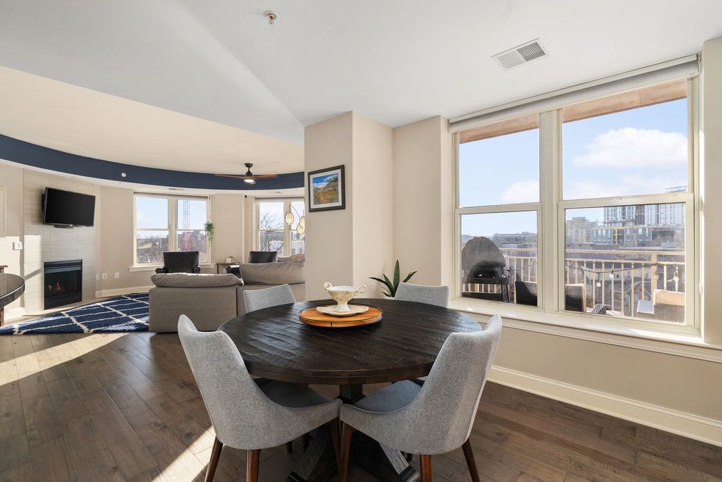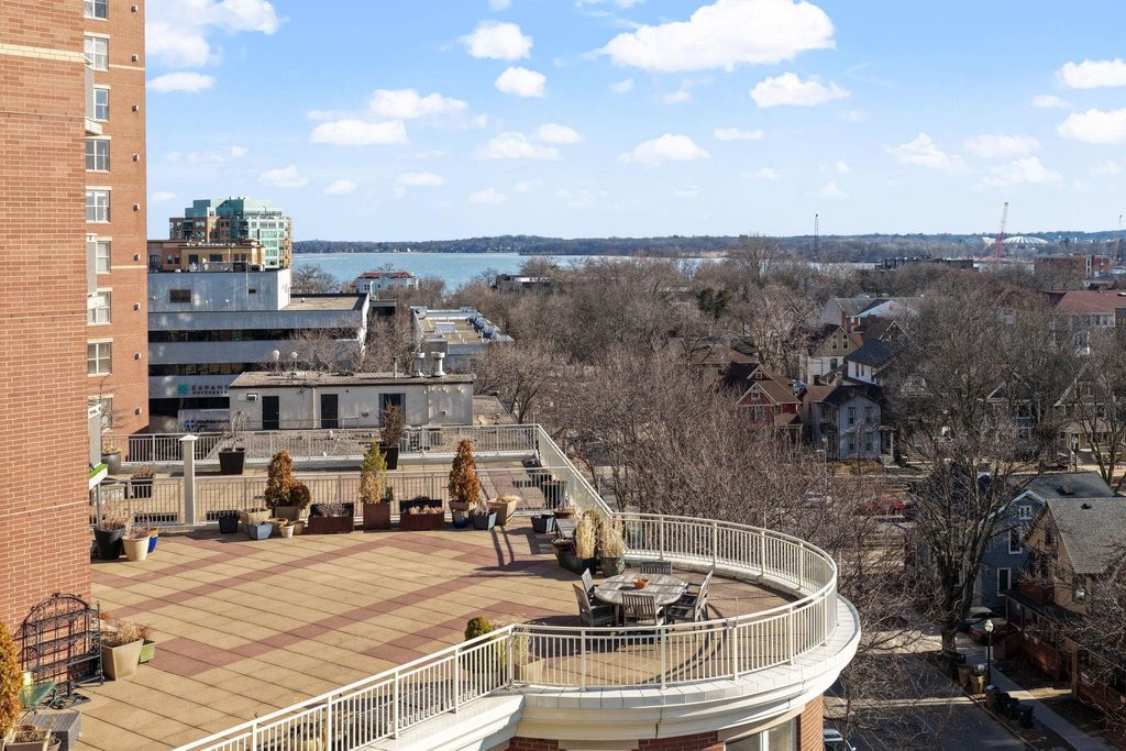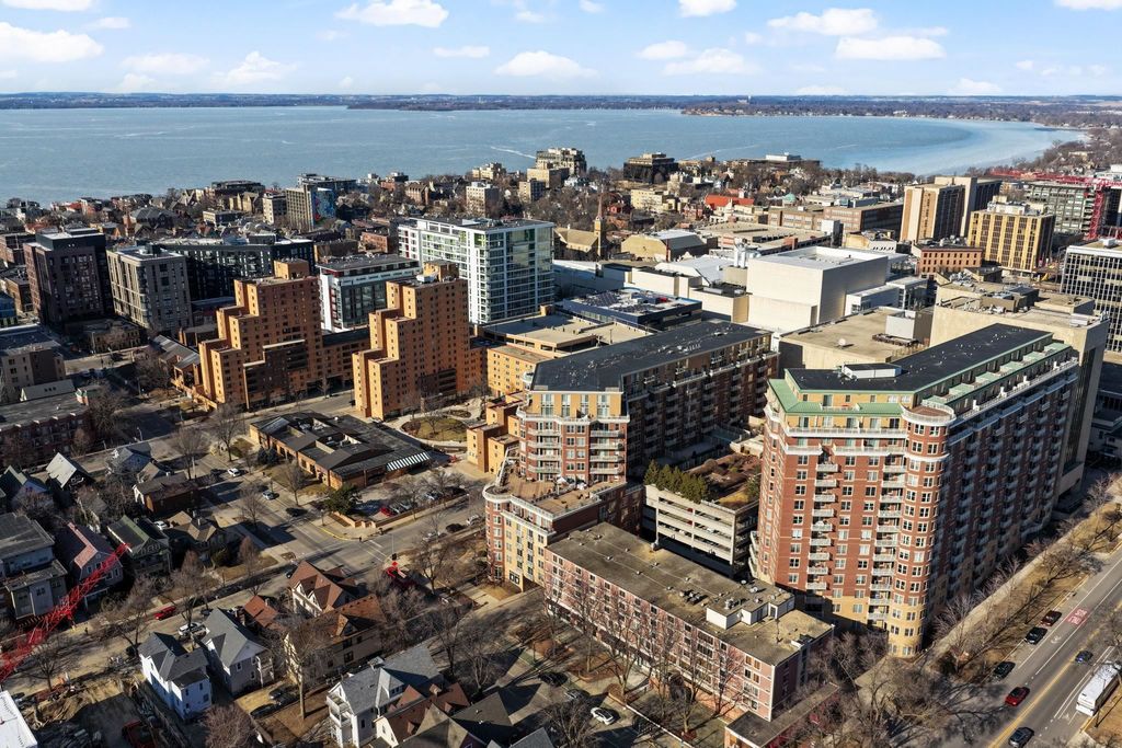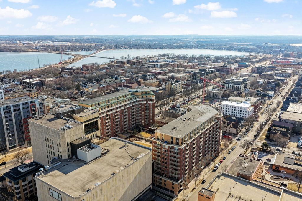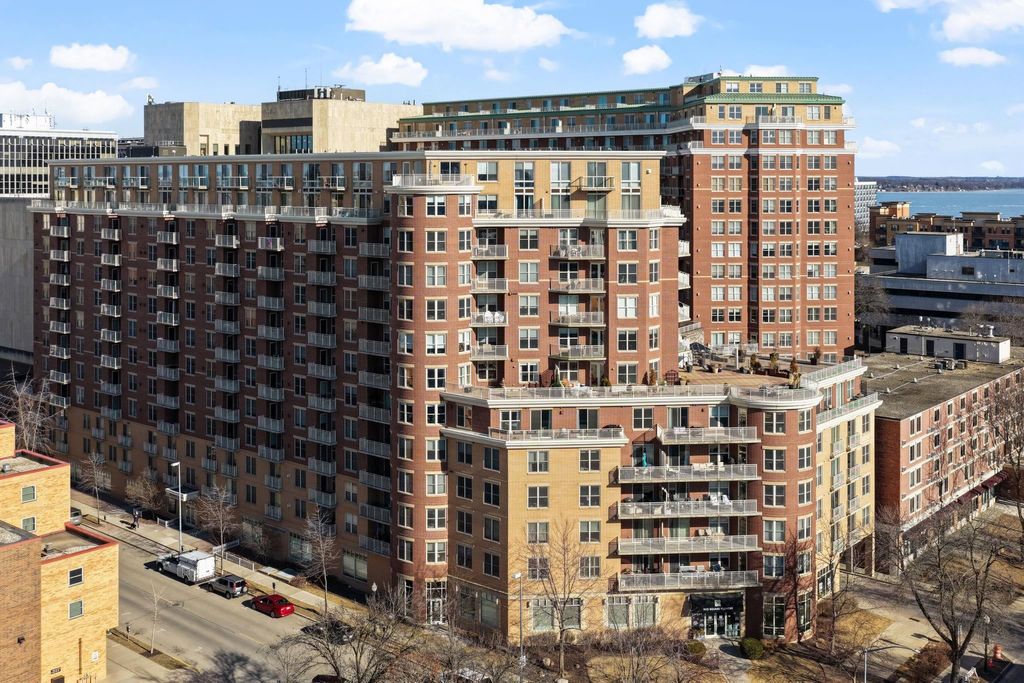 Showings begin 2/27. Live in the heart of Madison at Metropolitan Place, one of downtown's most desirable condo communities. This condo offers a bright, open layout anchored by the distinctive turret-style living room. Surrounded by windows and filled with natural light, the living space features a gas fireplace and access to the large patio creating an easy indoor-outdoor flow. The kitchen is designed for gathering, with a gas range, ss appliances, granite countertops, tile backsplash, and a generous island with breakfast bar seating. The spacious dining area is framed by striking city views. The primary suite includes an oversized walk-in closet with custom organizers and an en-suite bath. The 2nd bedroom also features a walk-in closet, and the den provides flexible space for a home office or media room. 2 parking spaces included and a large storage unit just outside the door add rare convenience downtown. Just steps from the Capitol, State St, Overture Center, and year round events!