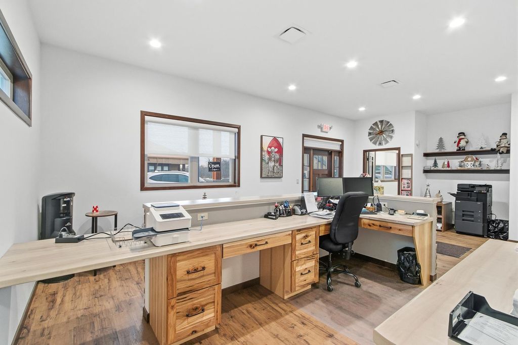 Built to impress!! You'd be hard pressed to find a more spectacular commercial building in all of Green County! Set your Business front & center in this custom construction positioned to impress your clientele, featuring top notch craftsmanship. The interior boasts 4 oversized offices, large reception area at entrance w/stone accented built in desk, a beautiful, expansive conference room, two restrooms w/Kohler fixtures & a break room. Huge storage areas for addtl expansion opportunity for more offices, etc. to meet your business-growth ventures! A lg covered stone pavilion & warm & welcoming stone accents greet clients. 2-3 private onsite parking spots in back! Located next to an established grocery store and another large public parking lot! Pristine condition, top of the line everything, this is a building that truly must be seen to be appreciated! *Sq. ft. apprx, buyer to verify if material.