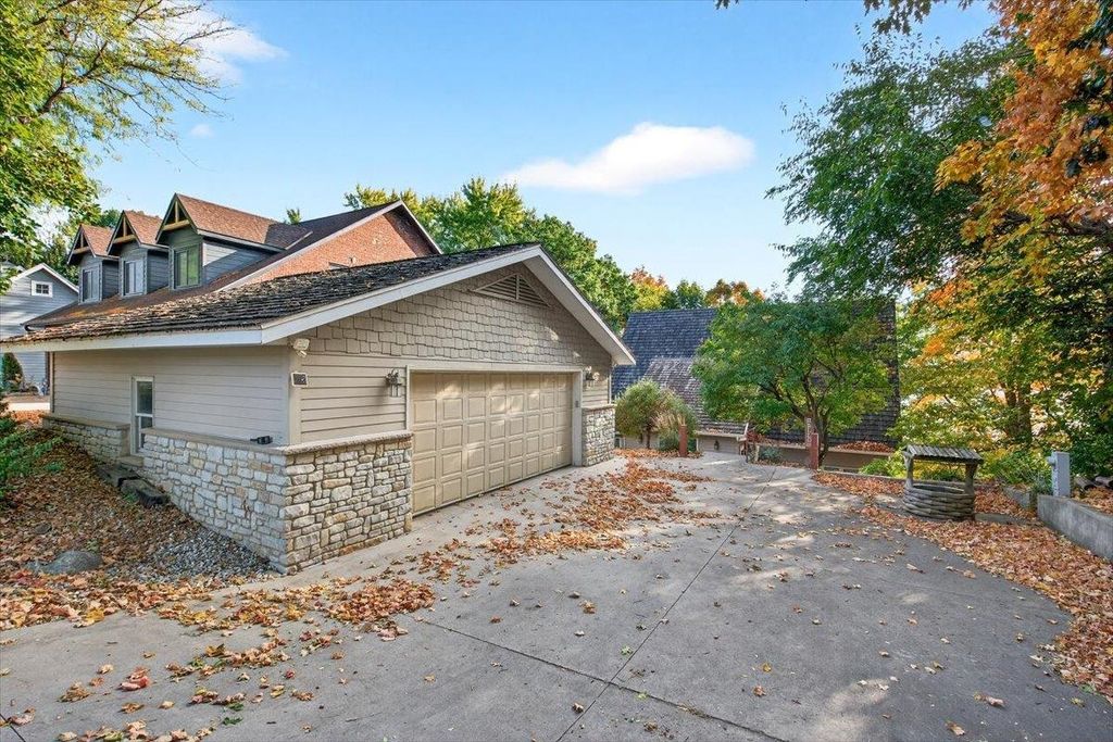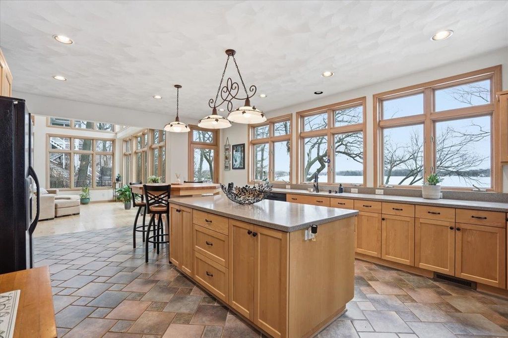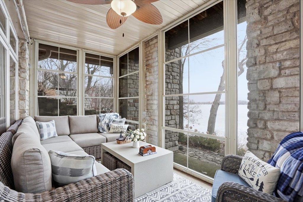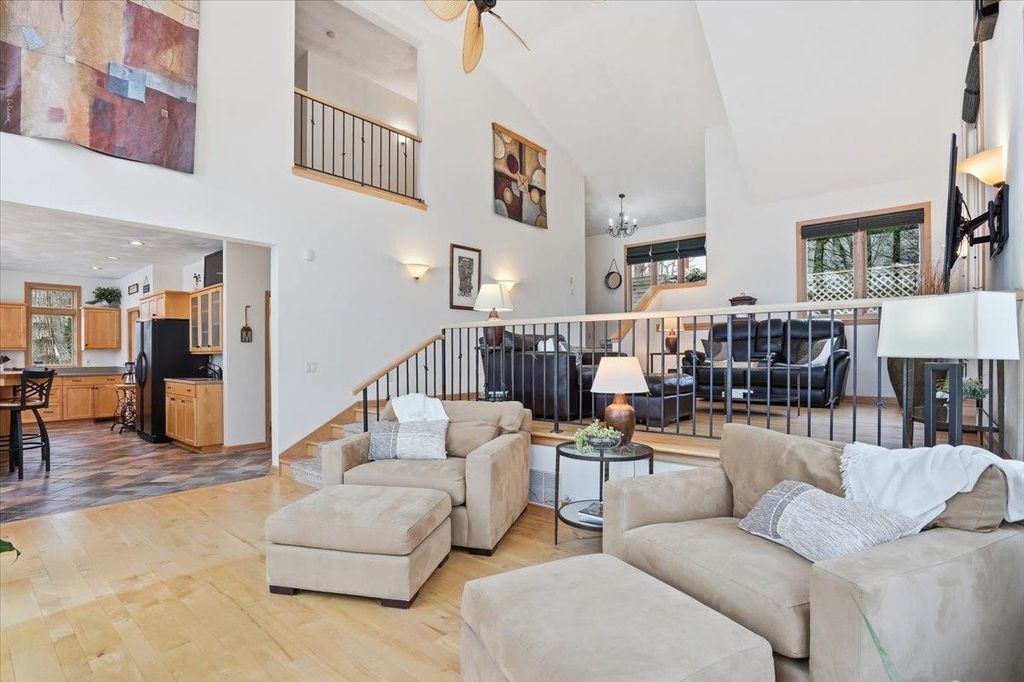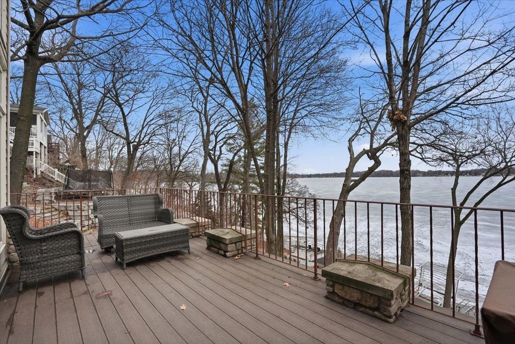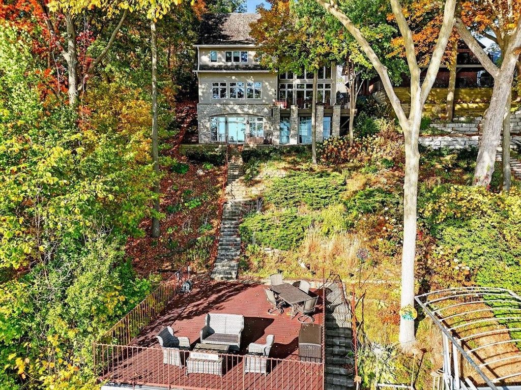 Perched high above the water, this remarkable lake home captures breathtaking views from every level through walls of windows that frame the spring-fed lake, known as one of the cleanest in Wisconsin. A canopy of mature trees surrounds the fully landscaped, tiered backyard, creating a private, lush setting that changes beautifully with the seasons. Composite decking overlooks the water, with a three-season room below for year-round enjoyment. The oversized boathouse is one of the largest on the lake, offering a 500 sq ft elevated entertaining deck at the water's edge. At night, accent and pathway lighting give the home an unforgettable glow from the lake. Extensive, high-quality updates enhance the home throughout. Enjoy boating, kayaking, and fishing just steps away. Located minutes from I-94, near the 52-mile Glacial Drumlin Trail, and within an hour of both Madison and Milwaukee, all while benefiting from Lake Mills' vibrant community and highly regarded school.