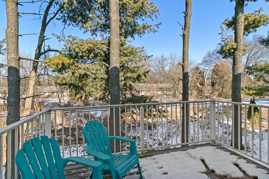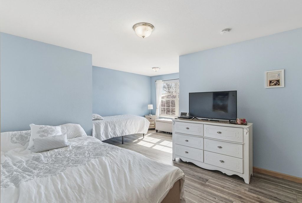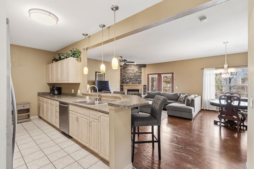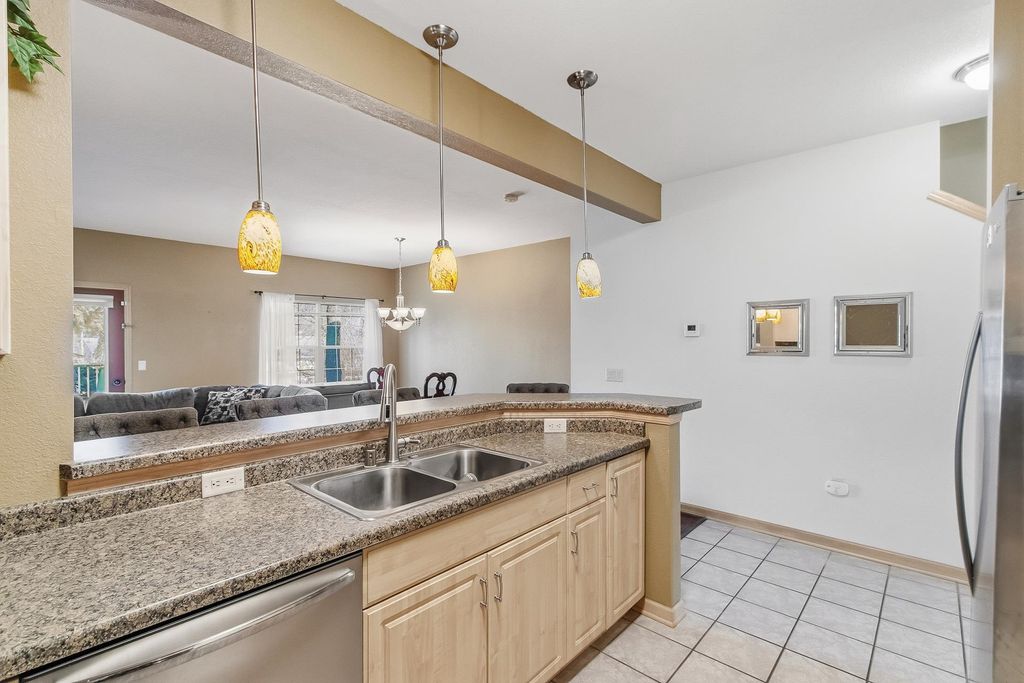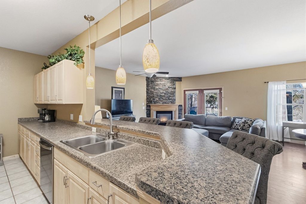 So many amenities to love in this 2 bedroom, 2.5 bath townhouse condo. Open & spacious main w/ high ceilings! The kitchen has brand new S.S. appliances, an abundance of gorgeous maple cabinetry, countertop space, a huge raised breakfast bar + roomy pantry. Maple doors & trim throughout. Kitchen opens to huge great room & dining area w/ gorgeous wood plank flooring, corner gas frpl.w/ w direct access to the composite deck on a private tree lined bkyd. M.L. laundry with new Electrolux washer & dryer & built in shelving. Generous sized bedrooms upstairs both offer lg. walk-in closets & comfy nook areas. The primary suite private bath features double sinks & jetted tub w/shower. 2nd bdrm has new LVP flooring. Both bathrooms w/travertine tile. L.L. fully exposed w/ 9 ft. ceilings, can be finished for an additional 600 sq ft, Perfect for a 3rd bdrm or family room. Also plumbed for 3rd full bath, tons of storage. Upper level has new carpet on stairs & hallway. 2 car attached garage.