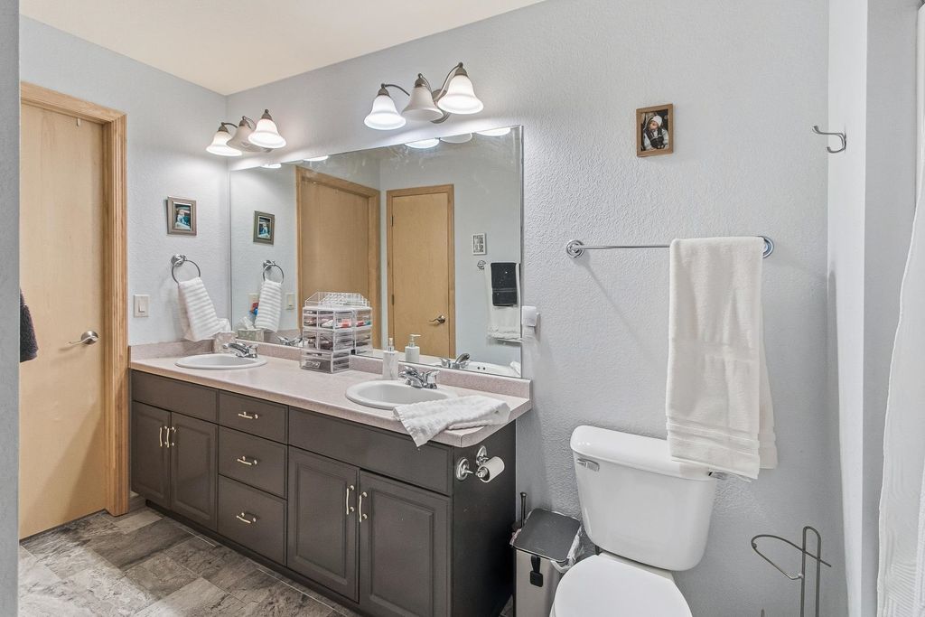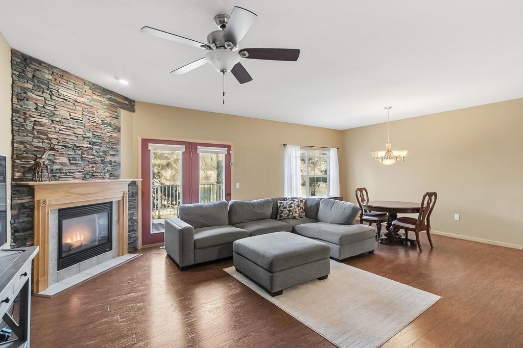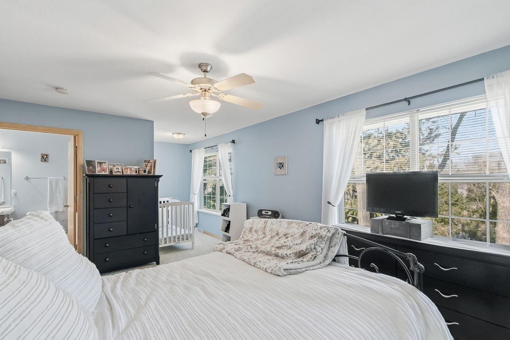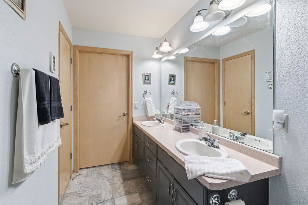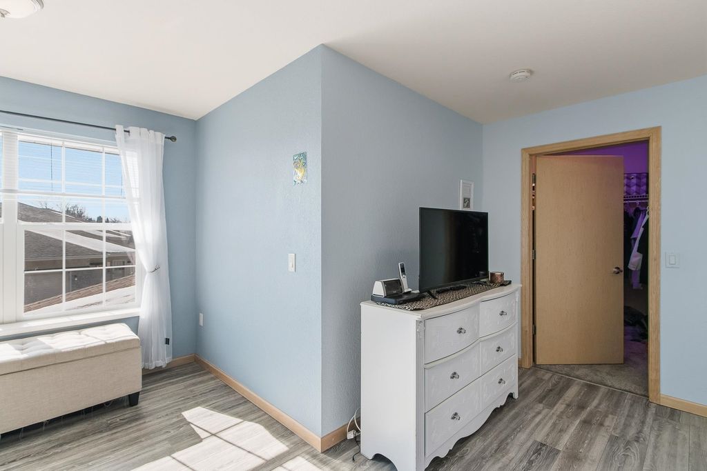 So many amenities to love in this 2 bedroom, 2.5 bath townhouse condo. Open & spacious main w/ high ceilings! The kitchen has brand new S.S. appliances, an abundance of gorgeous maple cabinetry, countertop space, a huge raised breakfast bar + roomy pantry. Maple doors & trim throughout. Kitchen opens to huge great room & dining area w/ gorgeous wood plank flooring, corner gas frpl.w/ w direct access to the composite deck on a private tree lined bkyd. M.L. laundry with new Electrolux washer & dryer & built in shelving. Generous sized bedrooms upstairs both offer lg. walk-in closets & comfy nook areas. The primary suite private bath features double sinks & jetted tub w/shower. 2nd bdrm has new LVP flooring. Both bathrooms w/travertine tile. L.L. fully exposed w/ 9 ft. ceilings, can be finished for an additional 600 sq ft, Perfect for a 3rd bdrm or family room. Also plumbed for 3rd full bath, tons of storage. Upper level has new carpet on stairs & hallway. 2 car attached garage.