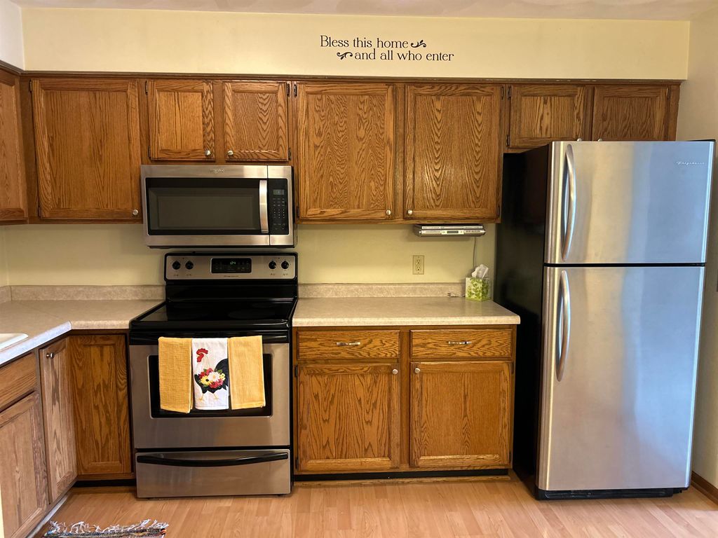 Lovely, updated and very well maintained 2 bedroom 1 1/2 bath condo located on a quiet cul-de-sac with lots of wildlife outside your front door. New roof and siding in fall of 2025. Newer furnace, central air and water heater in 2016. Updated full bathroom with new counter and flooring. Very nice finished area in the lower level and plumbed for another bathroom creates more living space if needed. A relaxing patio for outside enjoyment. Finished attached 2 car garage. All appliances included. A must see! Call today.