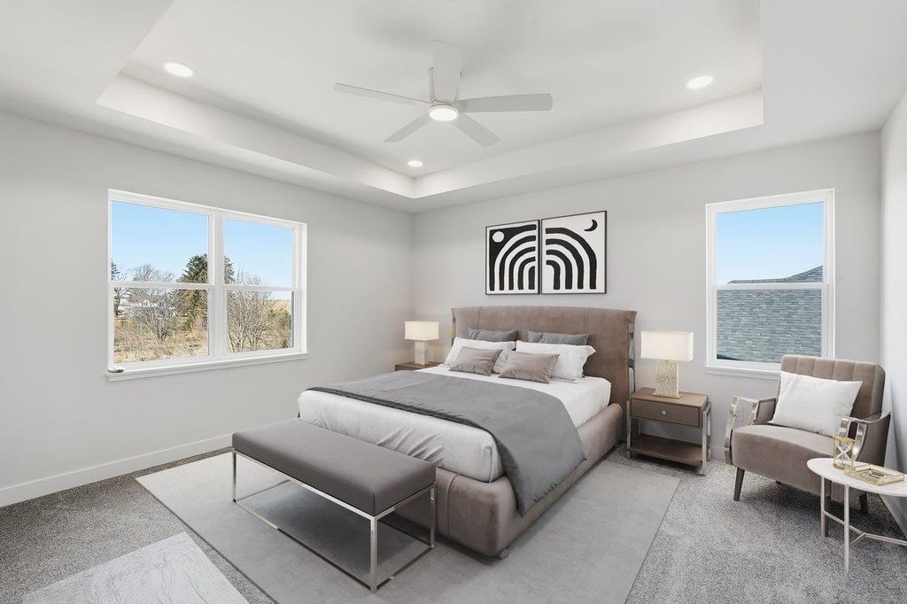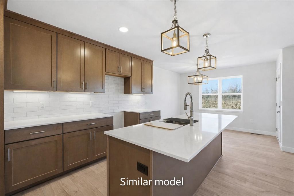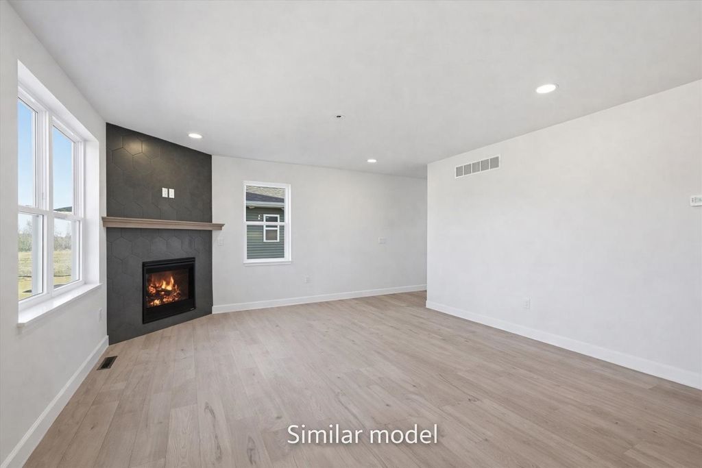 Sunny, bright, and full of potential, this spacious side-by-side duplex in Arlington, WI is being offered as an unfinished unit"”giving you the opportunity to select your own cabinets and countertops before completion. This side features a flipped floorplan of the finished model shown in the photos, offering the same thoughtful design with a mirrored layout. Enjoy 3 LARGE bedrooms, 2.5 baths, and an open-concept main level with tall ceilings that create an airy feel. Each bedroom includes a walk-in closet, and the upper-level laundry adds everyday convenience. The lower level is roughed in for a future bedroom and full bath, providing excellent potential for added equity. A finished two-car garage, $4,000 appliance allowance, and $2,000 closet/pantry allowance add flexibility"”just minutes outside Dane County.