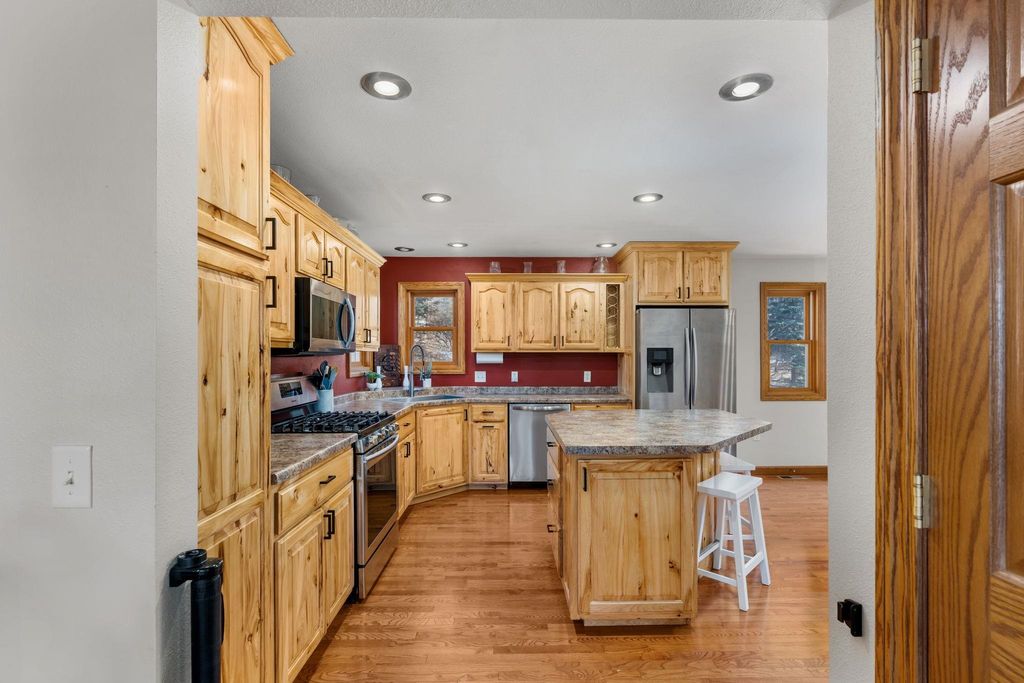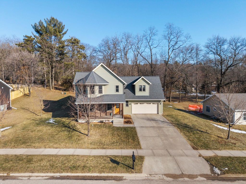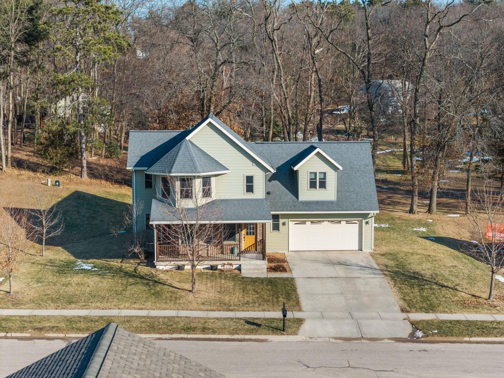 No showings till Open House. Get ready to fall in love with this spacious 4-BR, 3.5-BA home that checks all the boxes & then adds a few you didn't know you needed. Set in a fantastic location close to the hospital, parks, & plenty of great dining spots, you'll love the convenience while still enjoying that peaceful, neighborhood feel. The charming covered front porch is basically begging for morning coffee & the attached two-car garage keeps life easy year-round. Inside, the layout flows beautifully with plenty of room to spread out & entertain without feeling cramped. The kitchen is a total showstopper with rich natural wood cabinetry, stainless steel appliances, loads of workspace, & a big center island. Upstairs, the primary suite is your own retreat - complete with a walk-in closet and a private bath featuring a relaxing soaking tub & separate shower. The finished lower level delivers with a custom bar & hangout space that's made for fun. Stylish, functional, & full of personality.