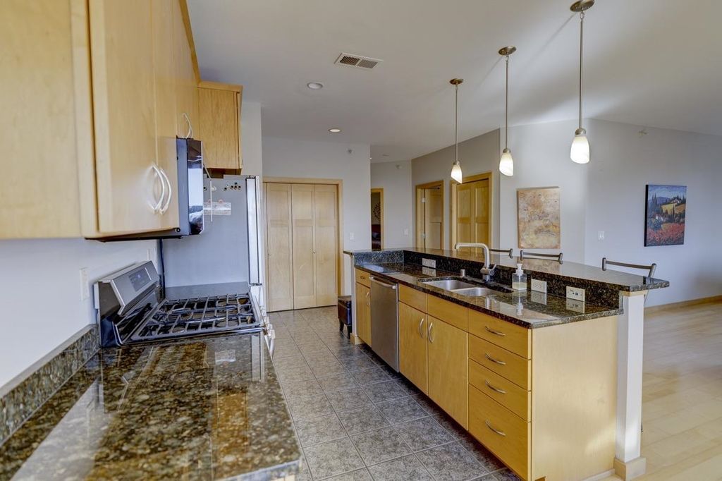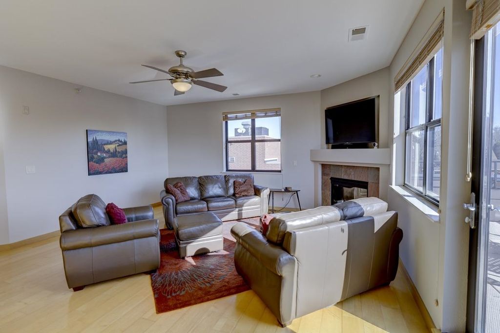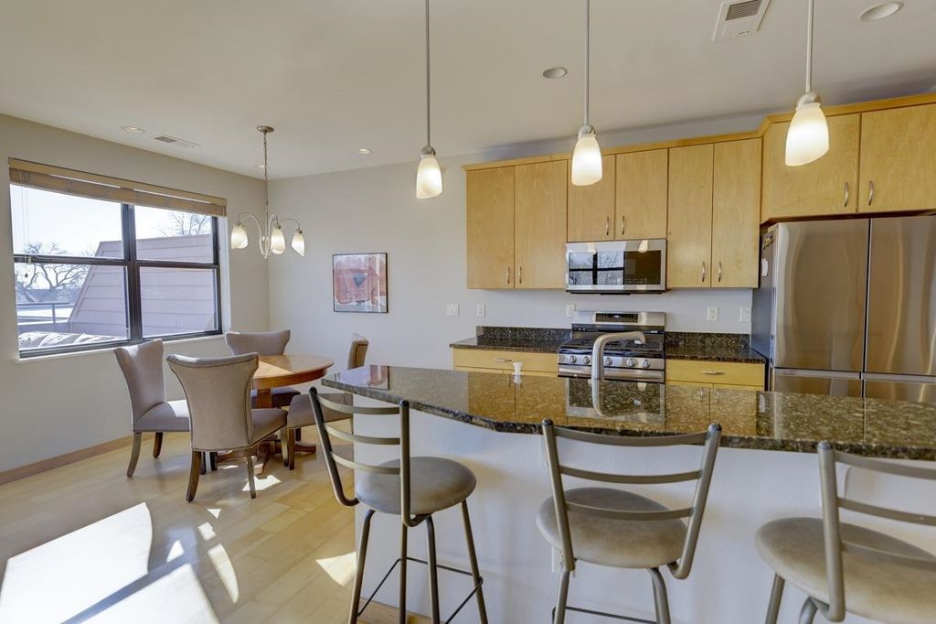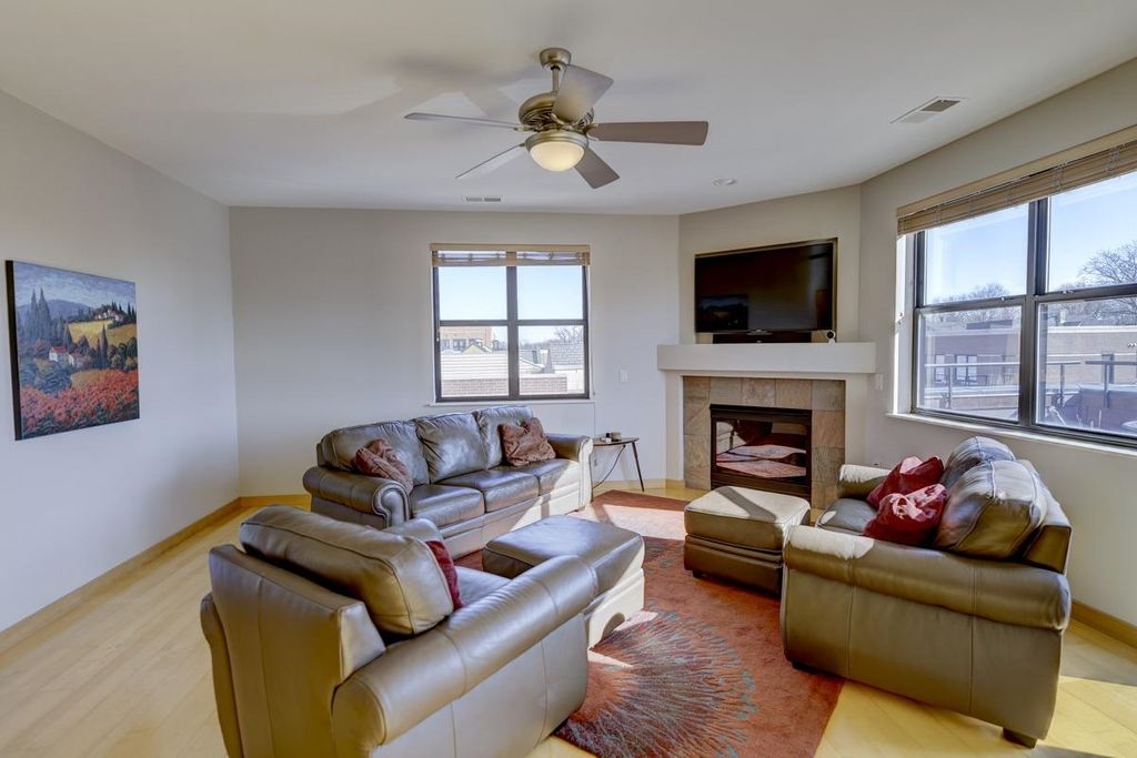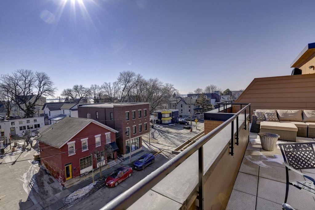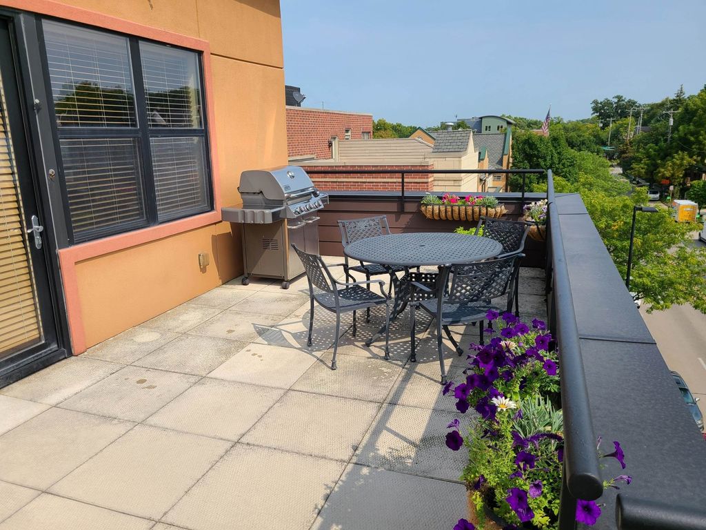 Coveted top-floor residence with abundant natural light in a great location. Unit 402 has a large, ~330 sqft private patio overlooking Willy St. A rare combination of elevation, views, and privacy; it is set back from the front of the building, making it quiet and private while being located in the cultural heart of the Madison Isthmus. No units in this seldom-available 36 unit building were offered for sale in 2025, and no 2 bedroom units since 2023. This top floor, sunny corner unit has 10 opening windows, long views of trees and a slight view of Lake Monona. Pet friendly building on the Capital City Trail bike path.