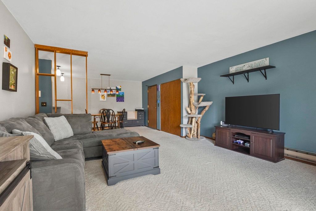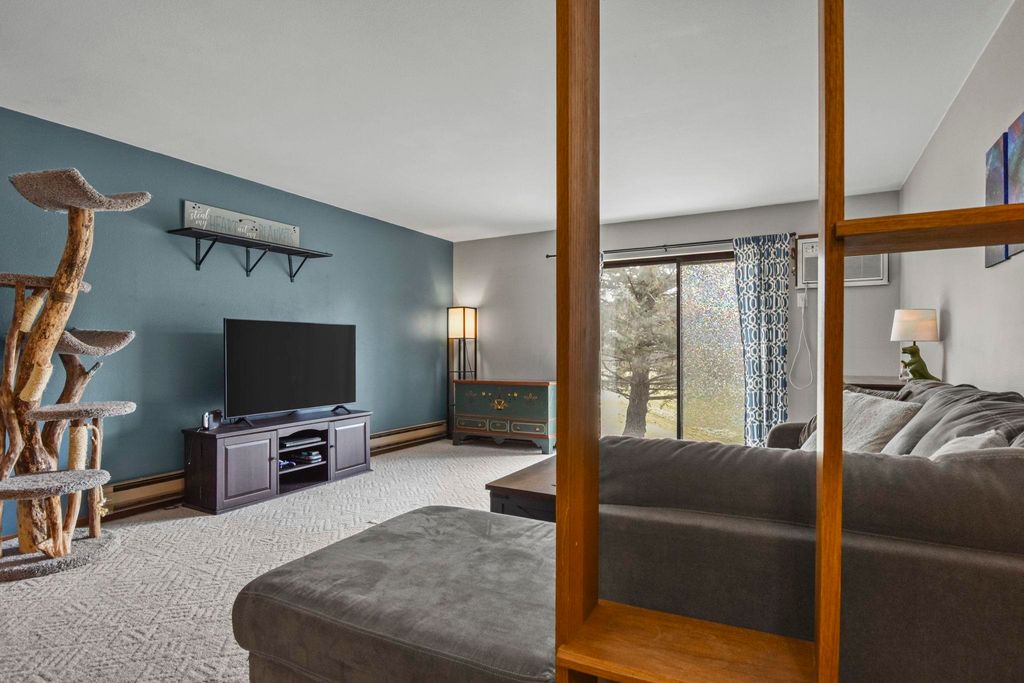 Spacious 2 bedroom, 2 full bath main floor condo! This affordable condo features walkout to patio and green space, updated Windows (2024), Dishwasher (2024), Roof (2024), and Washer/Dryer (2025). Kitchen boasts freshly painted cabinets, new backsplash, and SS appliances. Expansive bedrooms include huge closets. Both bathrooms have been updated with tile flooring, new vanities, and fixtures. Condo includes 1 heated garage space plus 1 parking space outside, and a large storage unit. Enjoy the community pool and clubhouse, and secure entry to the unit. Easy access to the beltline, parks/green space, and shopping!