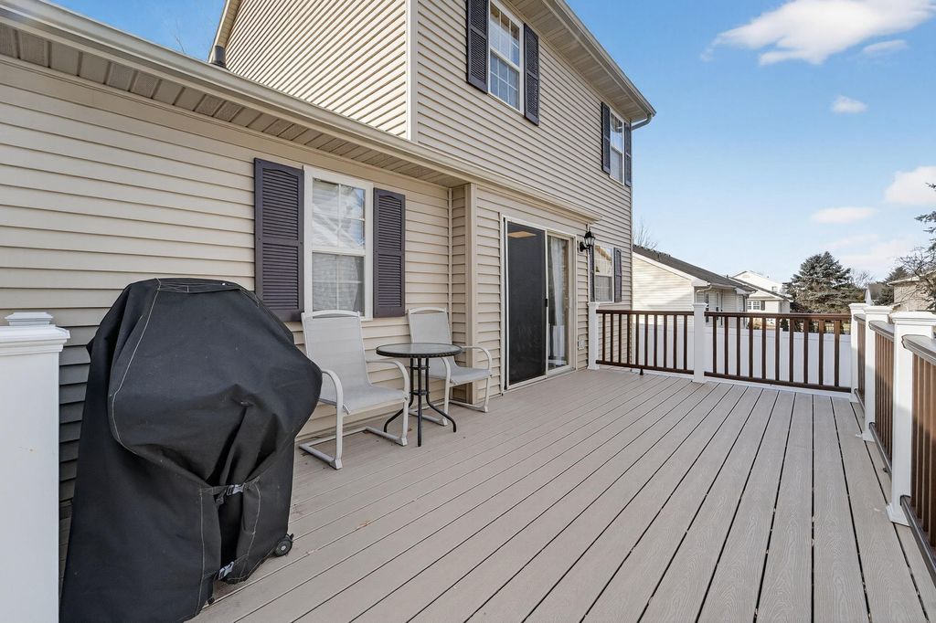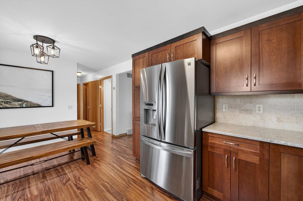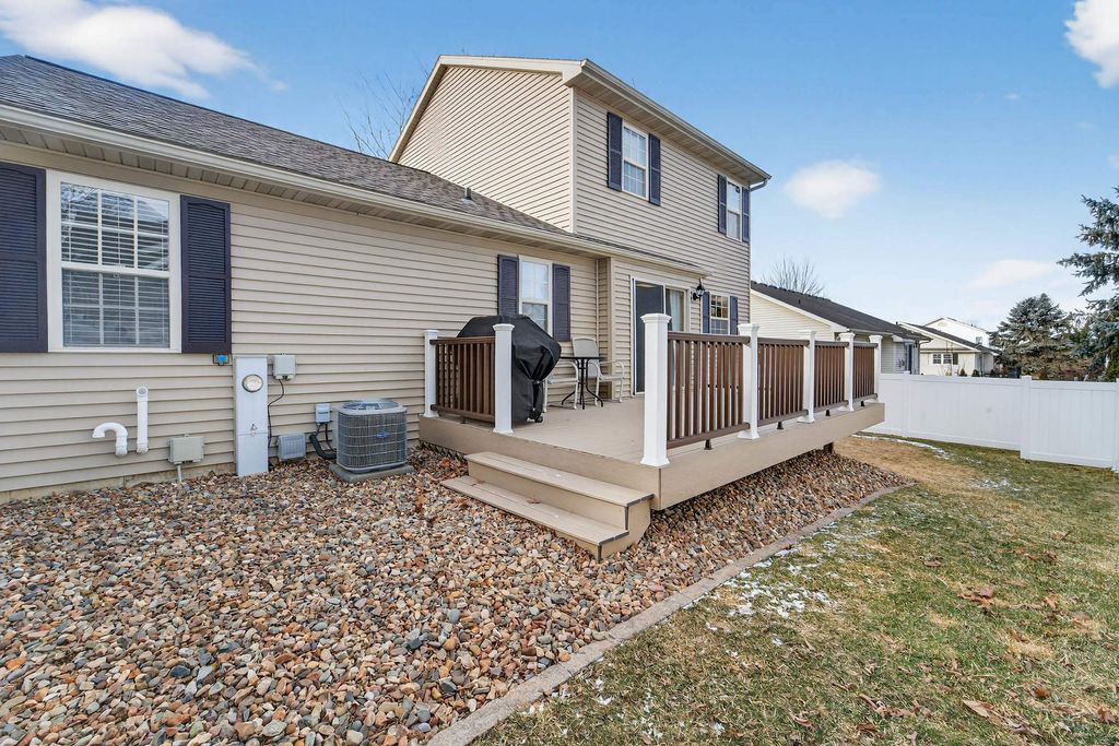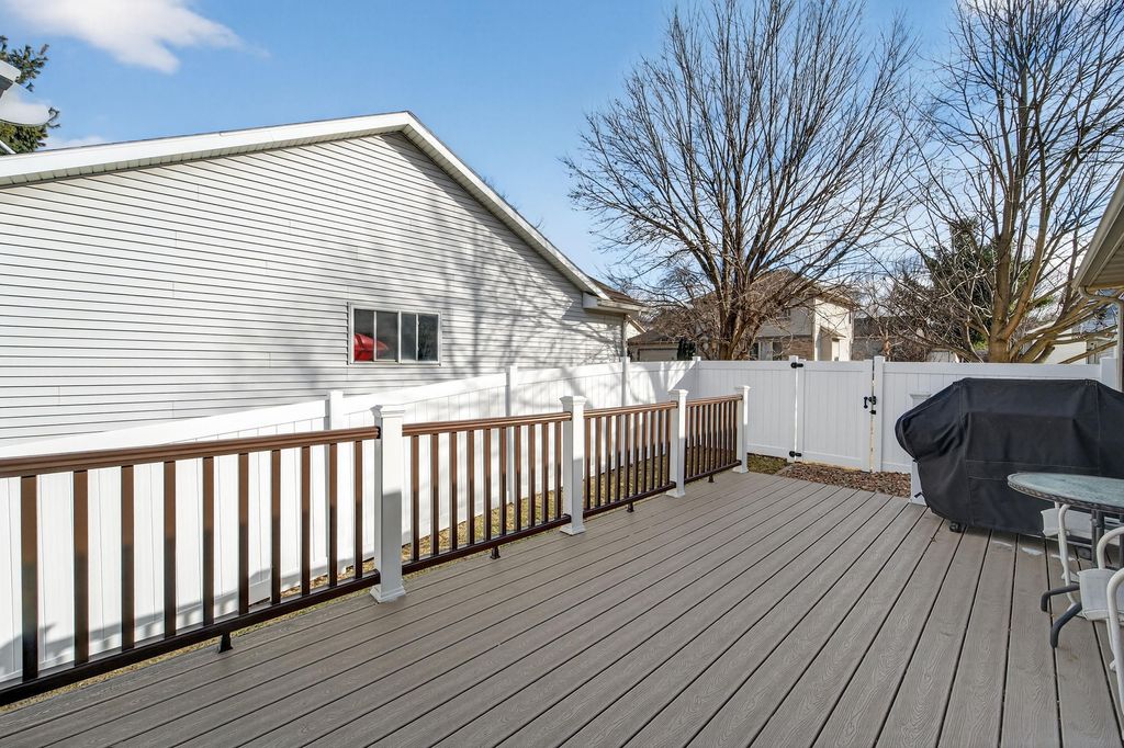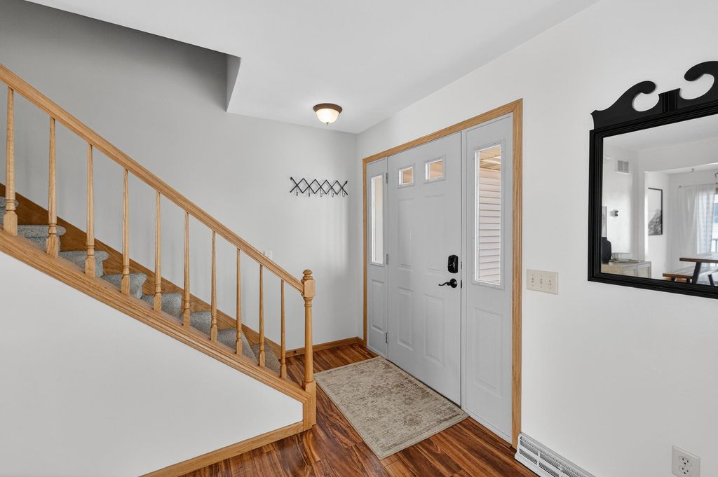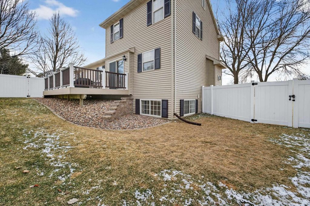 Show 2/27. Don't miss this beautifully updated, light-filled home across from a neighborhood park and playground. The kitchen features custom Dura-Supreme soft-close cabinetry, quartz countertops, tile backsplash, and engineered flooring that flows into the living room.The main level offers a primary suite with full bath and laundry, while two spacious bedrooms and a full bath are upstairs. The finished lower-level rec room provides great space for entertaining or relaxing with bright windows throughout.Recent updates include a new picture window, refreshed gas fireplace with new cladding and mantle, fresh paint, new carpet, new blinds throughout, and a new 6-foot privacy fence. Enjoy the Trex deck just off the kitchen and a convenient location near shopping, groceries, and an easy commute to Epic! New roof, furnace, AC, and water heater all updated within the last 10 years!