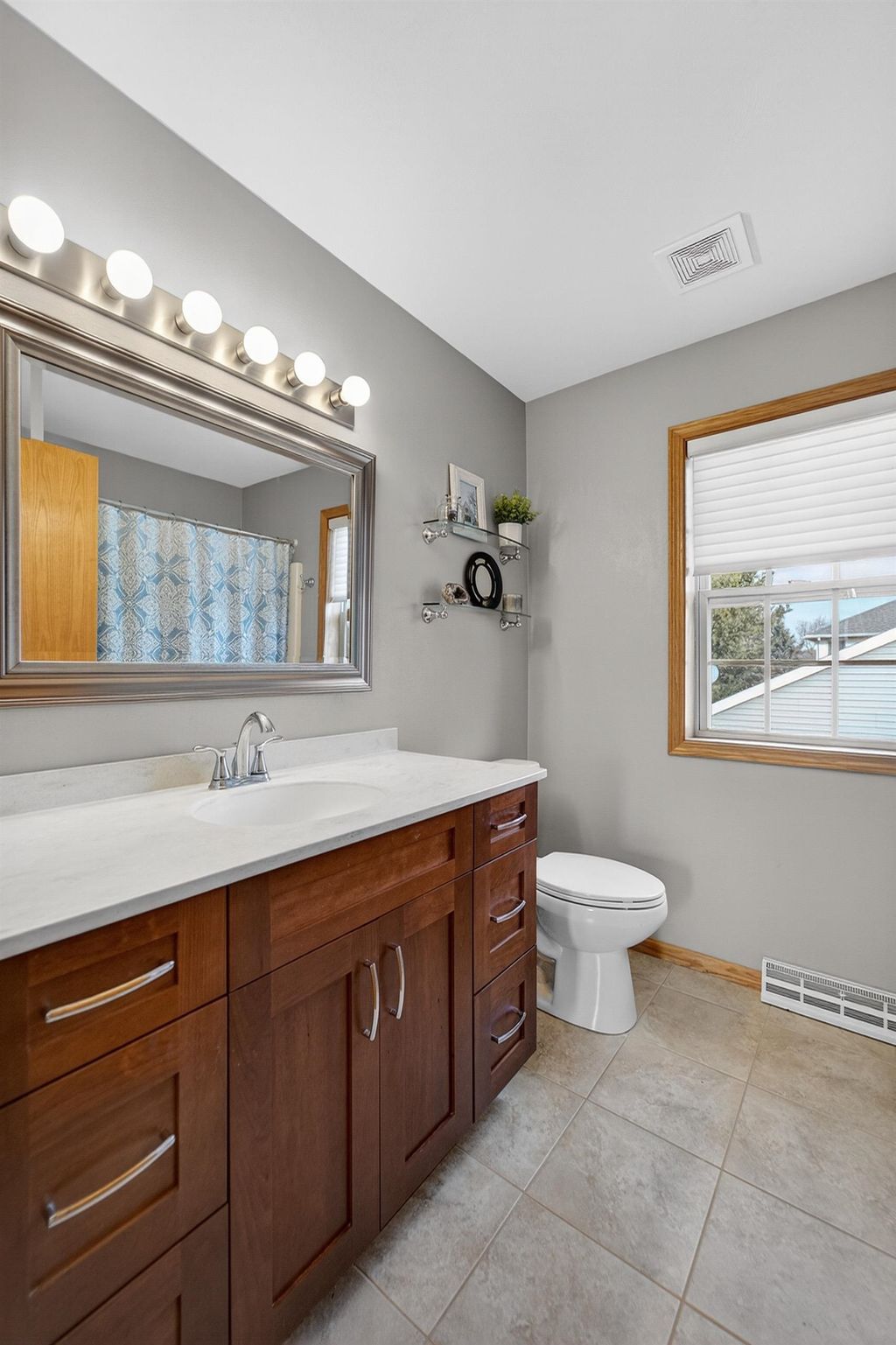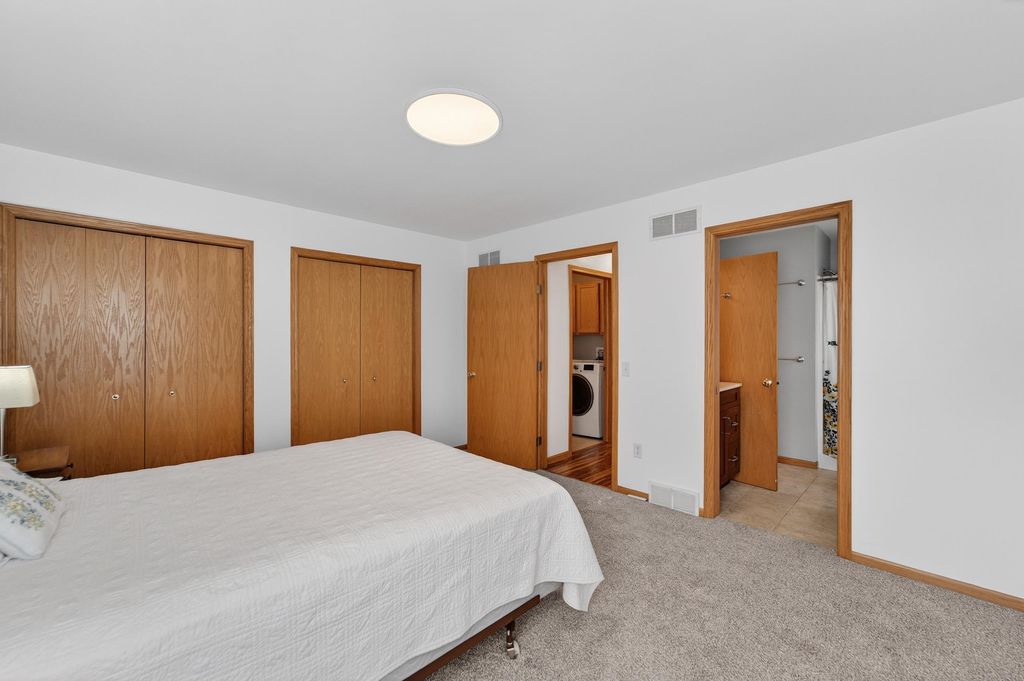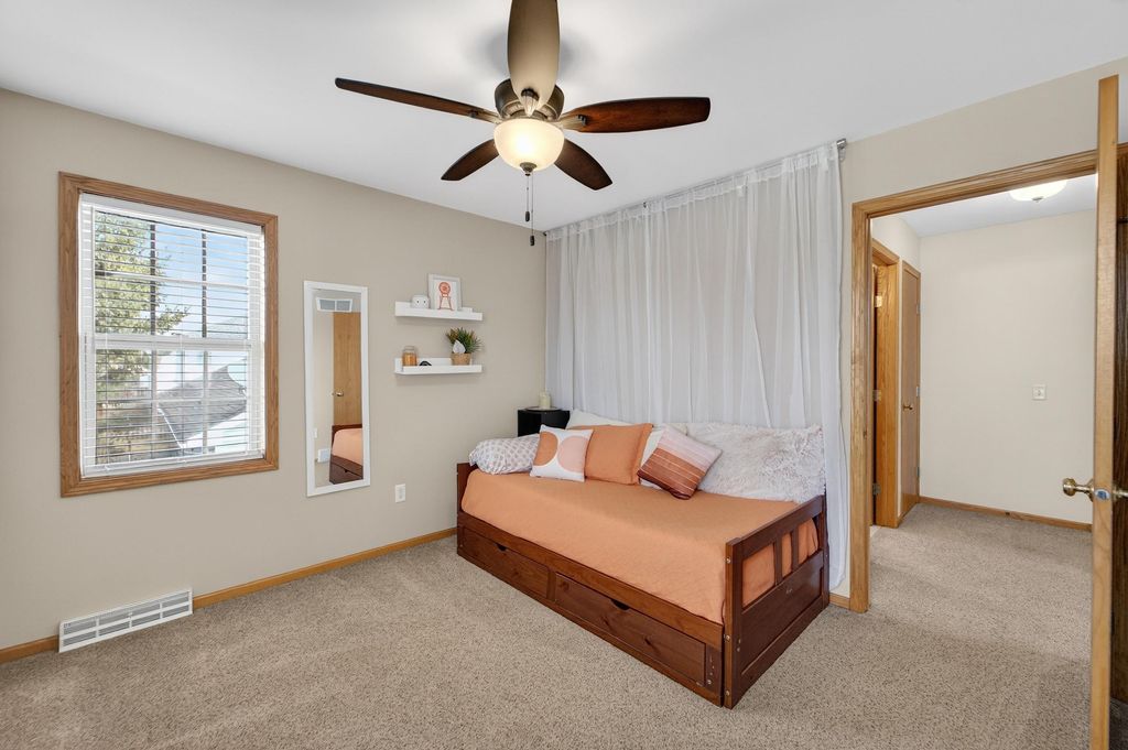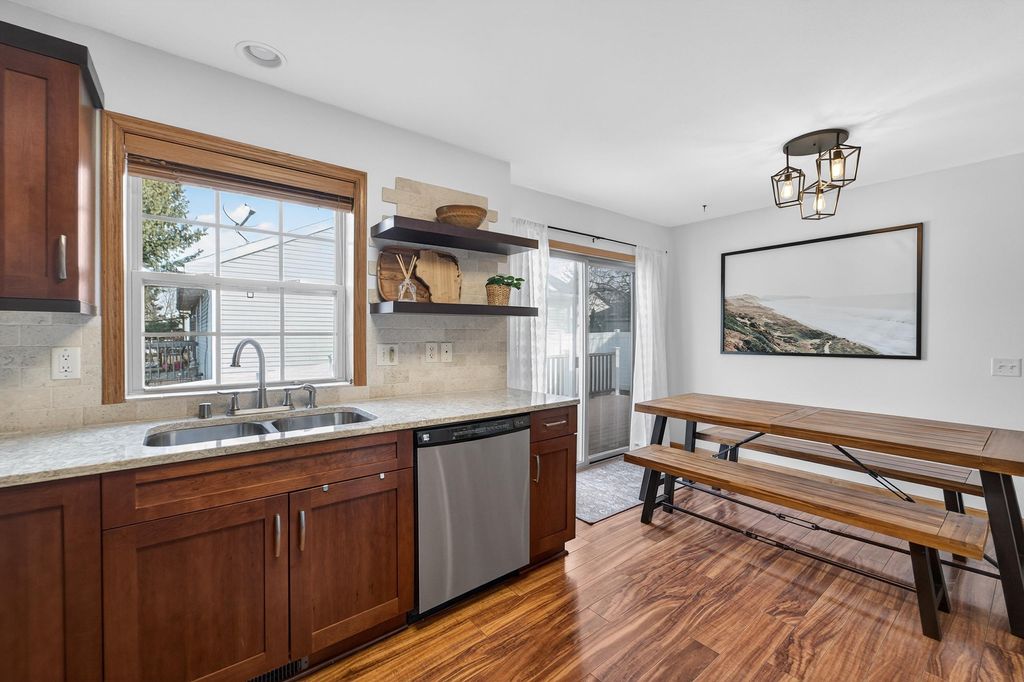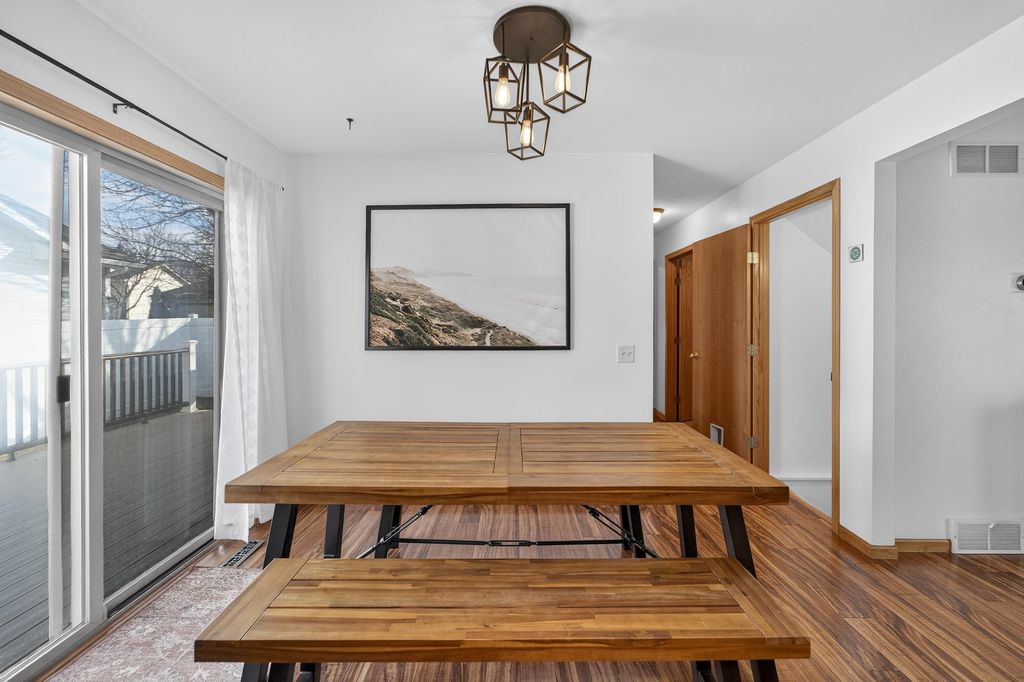 Show 2/27. Don't miss this beautifully updated, light-filled home across from a neighborhood park and playground. The kitchen features custom Dura-Supreme soft-close cabinetry, quartz countertops, tile backsplash, and engineered flooring that flows into the living room.The main level offers a primary suite with full bath and laundry, while two spacious bedrooms and a full bath are upstairs. The finished lower-level rec room provides great space for entertaining or relaxing with bright windows throughout.Recent updates include a new picture window, refreshed gas fireplace with new cladding and mantle, fresh paint, new carpet, new blinds throughout, and a new 6-foot privacy fence. Enjoy the Trex deck just off the kitchen and a convenient location near shopping, groceries, and an easy commute to Epic! New roof, furnace, AC, and water heater all updated within the last 10 years!