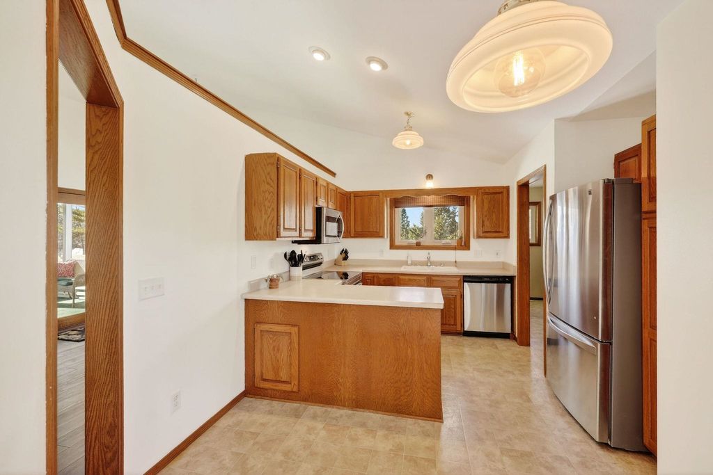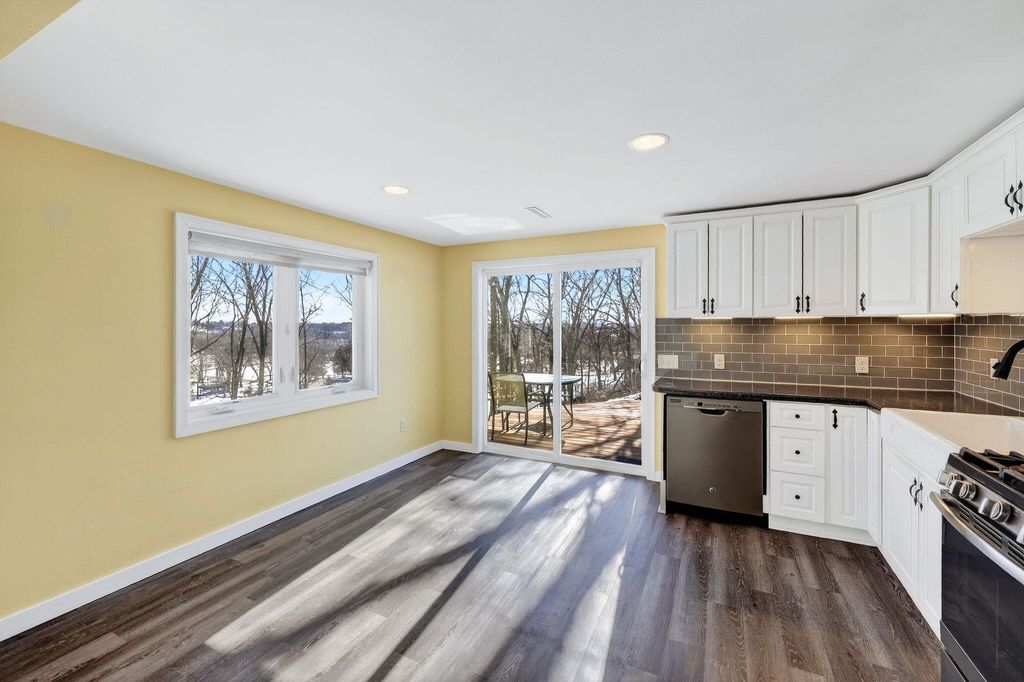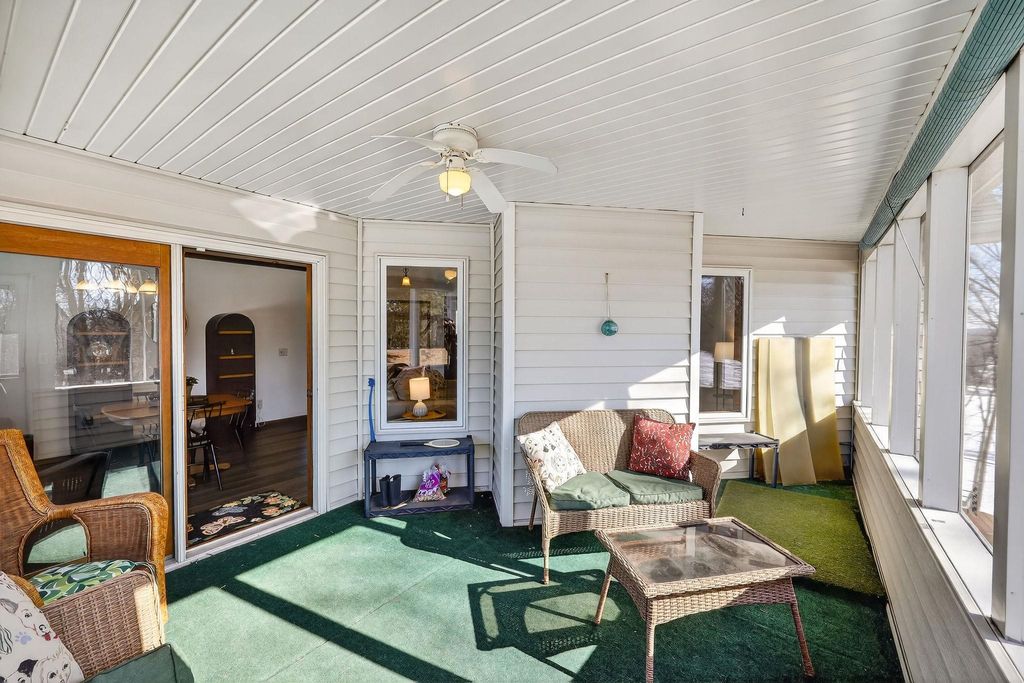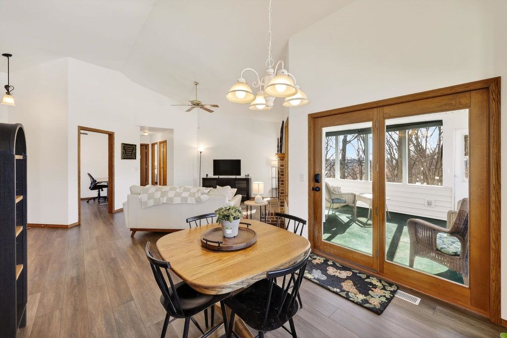 DUAL-LIVING POTENTIAL! This stunning 4 bed, 3 bath ranch welcomes you with a bright living room featuring vaulted ceilings and a cozy fireplace. This space flows seamlessly into a three-season room, perfect for enjoying the outdoors in comfort. The separate kitchen is a functional delight with ample cabinetry and breakfast bar. The primary suite features an ensuite bath, accompanied by 2 more bedrooms and an office. The walk-out lower level is a true standout, offering a secondary living suite complete with its own family room, kitchen and another bedroom with a WIC, ideal for guests, multi-generational living, or an impressive entertainment hub. Close to downtown and directly overlooks Fireman's Park, this property offers the perfect balance of a private sanctuary and city convenience.