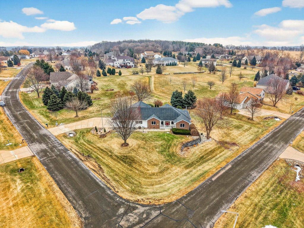 Sprawling ranch nestled on a generous, private lot offering space, comfort, and effortless flow. Vaulted ceilings and a striking fireplace anchor the inviting living room, seamlessly connecting to the dining area and a beautifully appointed kitchen featuring stainless steel appliances and abundant storage. A formal dining room and bright three-season room provide ideal spaces for entertaining or quiet mornings at home. The primary suite boasts a walk-in closet and private bath, with two more bedrooms, full bathroom and laundry on the main level. The finished lower level offers a family room with wet bar and fireplace, fourth bedroom, gym, and a full bath. The property also features a rare four-car garage providing immense storage. Space, comfort, and style, all under one roof! Please allow 48 hours for binding acceptance