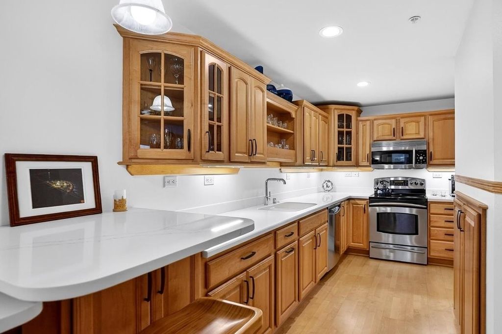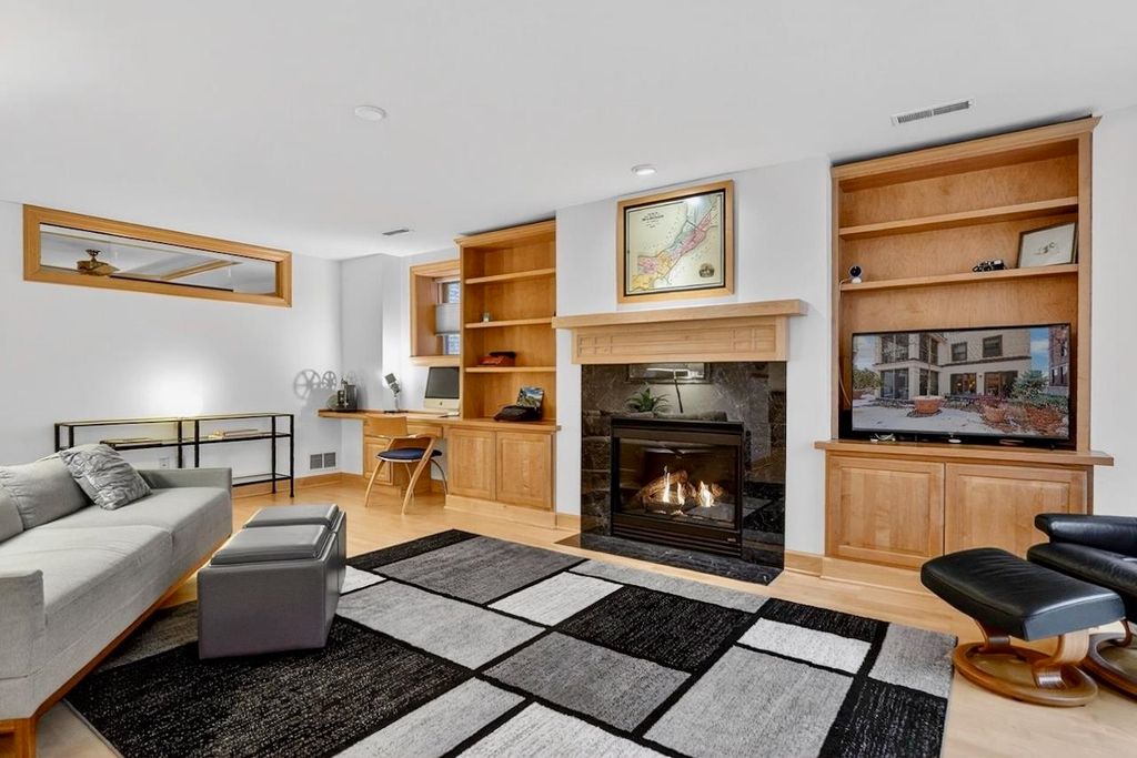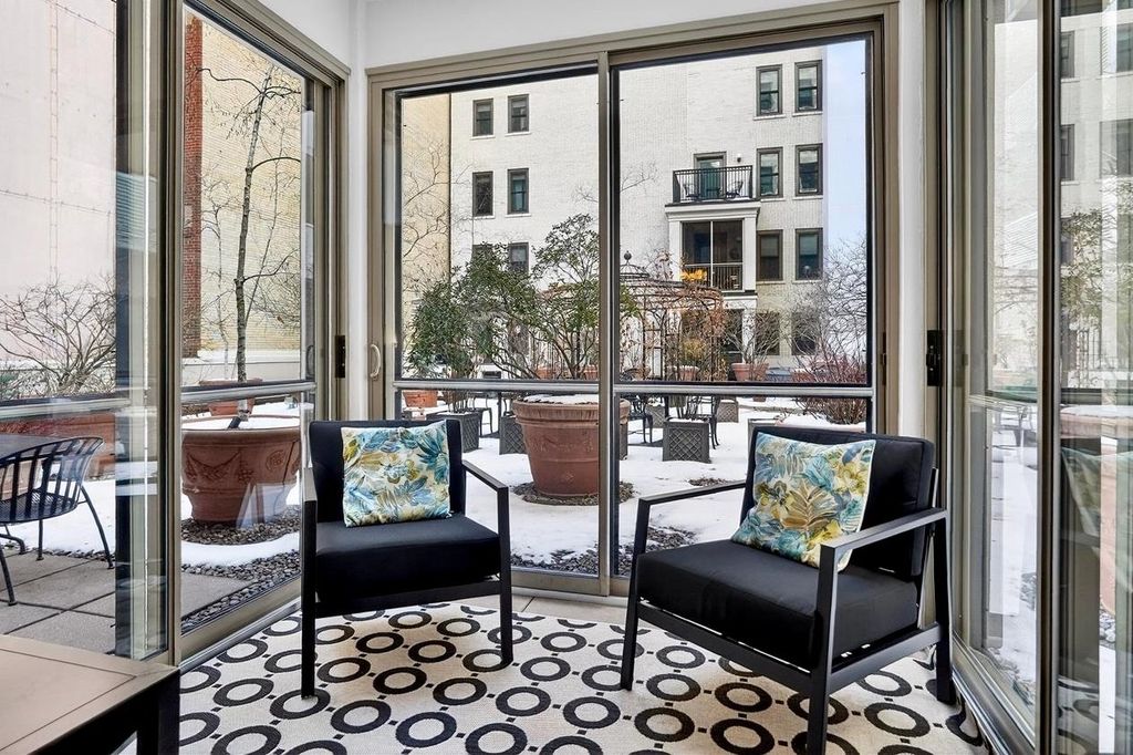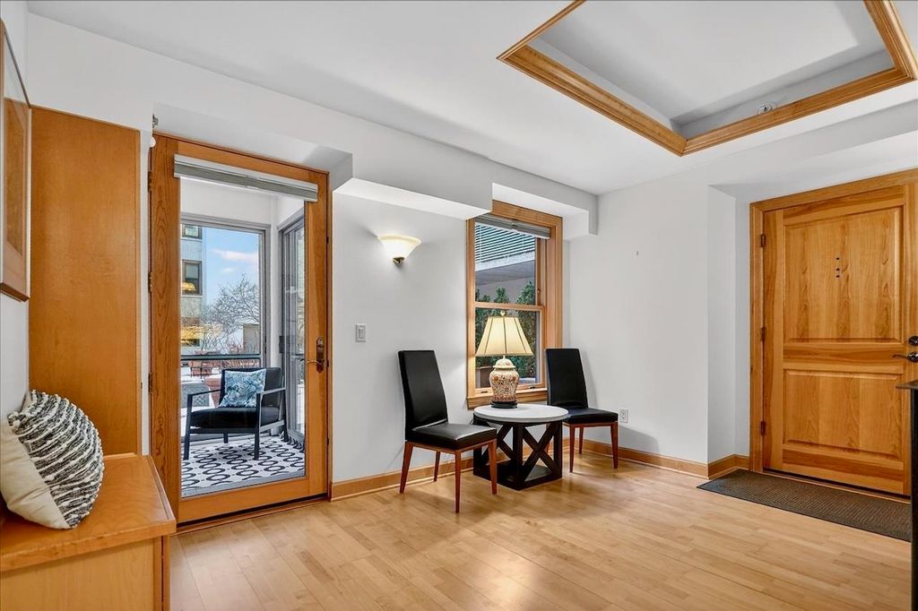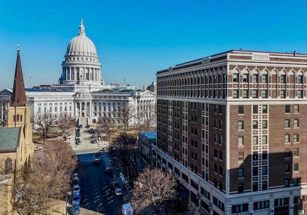 ELEGANT COURTYARD CONDO WITH 3-SEASON ROOM, PATIO, + EV CHARGING. Live next to the Capitol Square shielded from street noise in this one-of-a-kind modern city home within a national historic landmark. This Downtown Madison condominium features a screened porch enclosed with 3 sliding glass doors + a large patio for entertaining, gardening, and relaxing. Unit 311's outdoor spaces are surrounded by the mature landscaping of the building's Crystal Courtyard. This generously sized one bedroom has space for hosting pre/post Badger game parties and friend/family celebrations. The living room has a gas fireplace, custom built-ins including dedicated WFH space, and 2 double sliding glass doors leading to the patio. Recent HVAC (2024), paint, window coverings, & washer/dryer. WIFI enabled whole condo water shutoff for peace of mind while away. EV charging in heated underground parking space. COA fee includes internet, cable, parking and storage. Live Luxuriously at The Loraine!