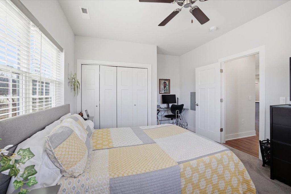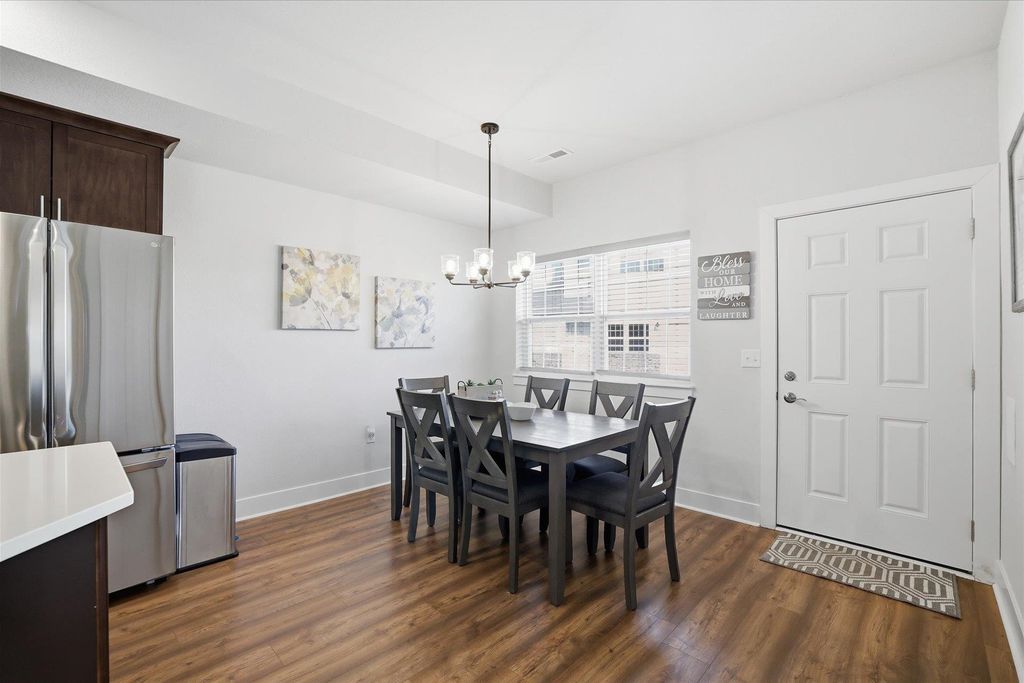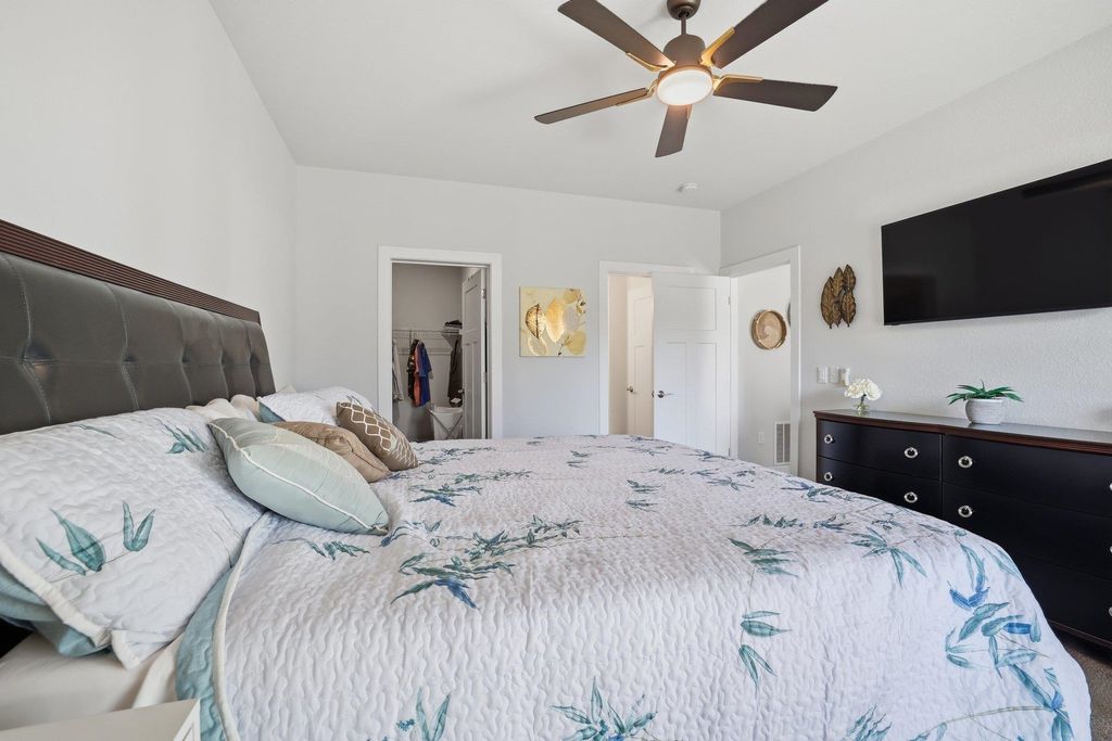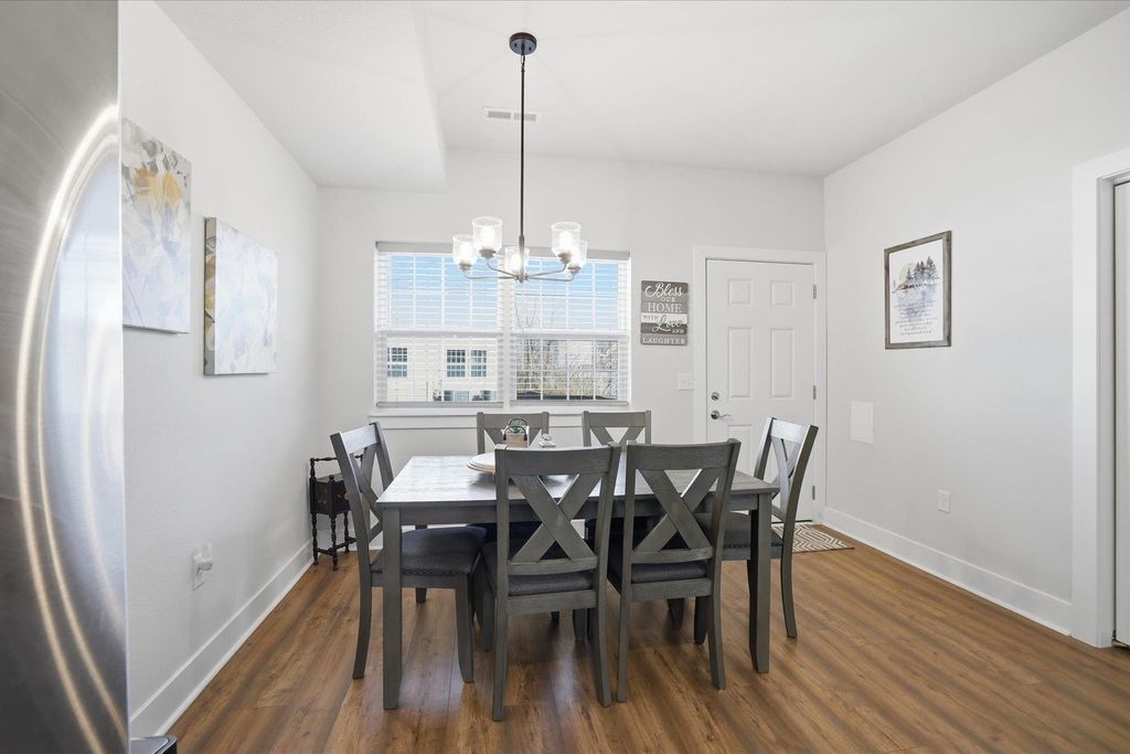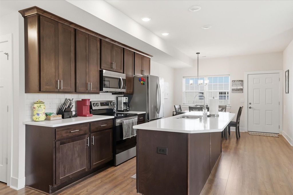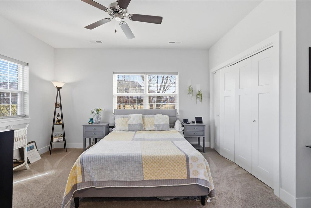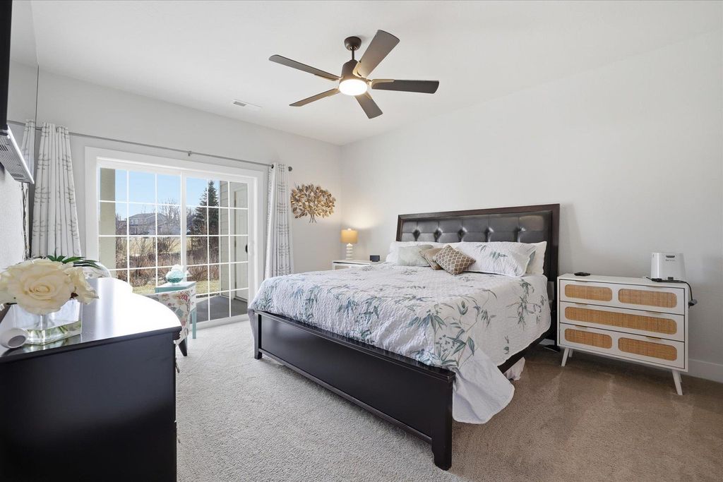 Welcome to this beautifully maintained and thoughtfully upgraded 2 bedroom, 2 full bath first floor condo offering comfort, convenience and easy living. The open concept living and dining area is filled with natural light and provides the perfect space for relaxing or entertaining. The kitchen features quartz countertops, stainless appliances and spacious dining area ideal for everyday meals or hosting guests. The living room features sliding doors to your private patio area. The spacious primary suite features a private full bath and generous closet space. A second bedroom offers flexibility for guests, a home office or additional living space. The garage is equipped with a smart door with camera and there is additional storage off the rear patio. Additional updates include ceiling fans, light fixtures, quality window coverings and new washer and dryer. Enjoy low maintenance living in a desirable location close to shopping, dining, and everyday conveniences.