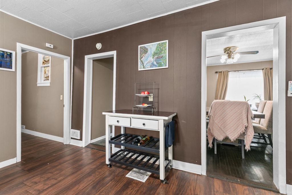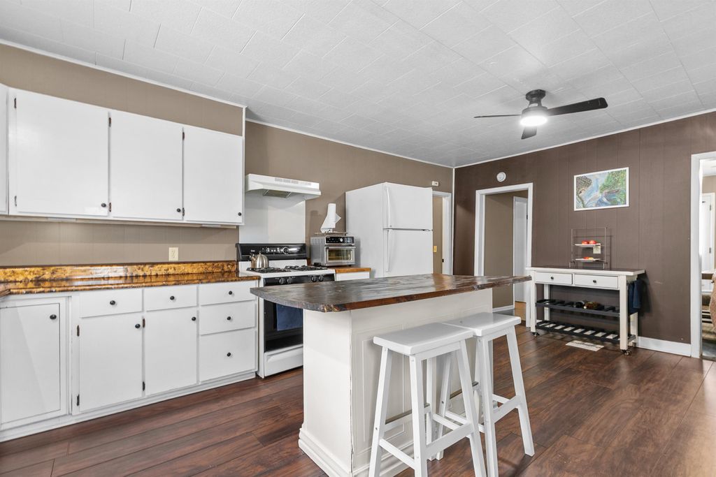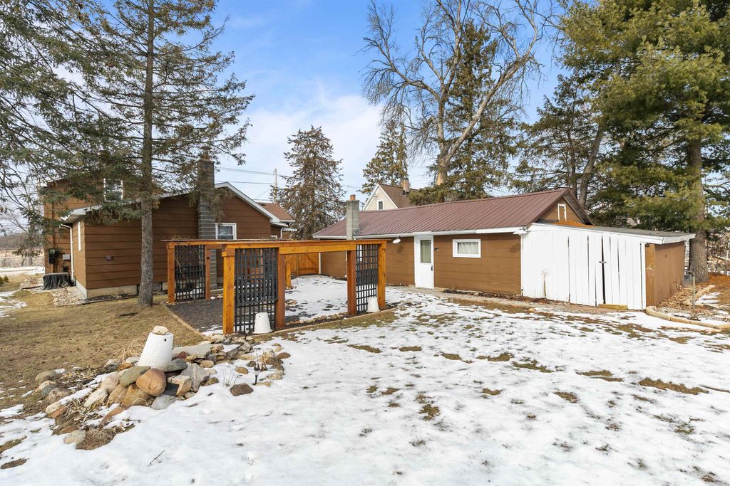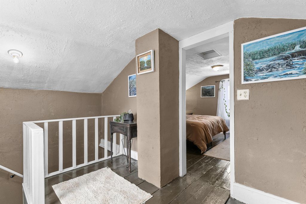 Whether you're a vintage house lover, landscape enthusiast or a project person that needs space to dream and create; this property has it all. This 1800's home has been updated to fit the needs we have today while still offering all the charm of an older home. Original hardwood floors, spacious kitchen, main floor laundry, main floor bedroom and storage at every turn! Venture upstairs to the quaint sitting area and the 2nd bedroom. The lower level offers lots of options with finished living space and a half bath (currently staged as a 3rd bedroom). Outside this timeless charmer you'll find extensive landscaping and 3 small ponds offering a peaceful place to escape the hustle of the world. Garage has 1 door but is large enough to fit up to 4 cars (most of garage is being used as a craft area) and additional garage/shop for more parking/creating/project space/or storage. Walkable to restaurants, flea market, river view but not in flood plain.