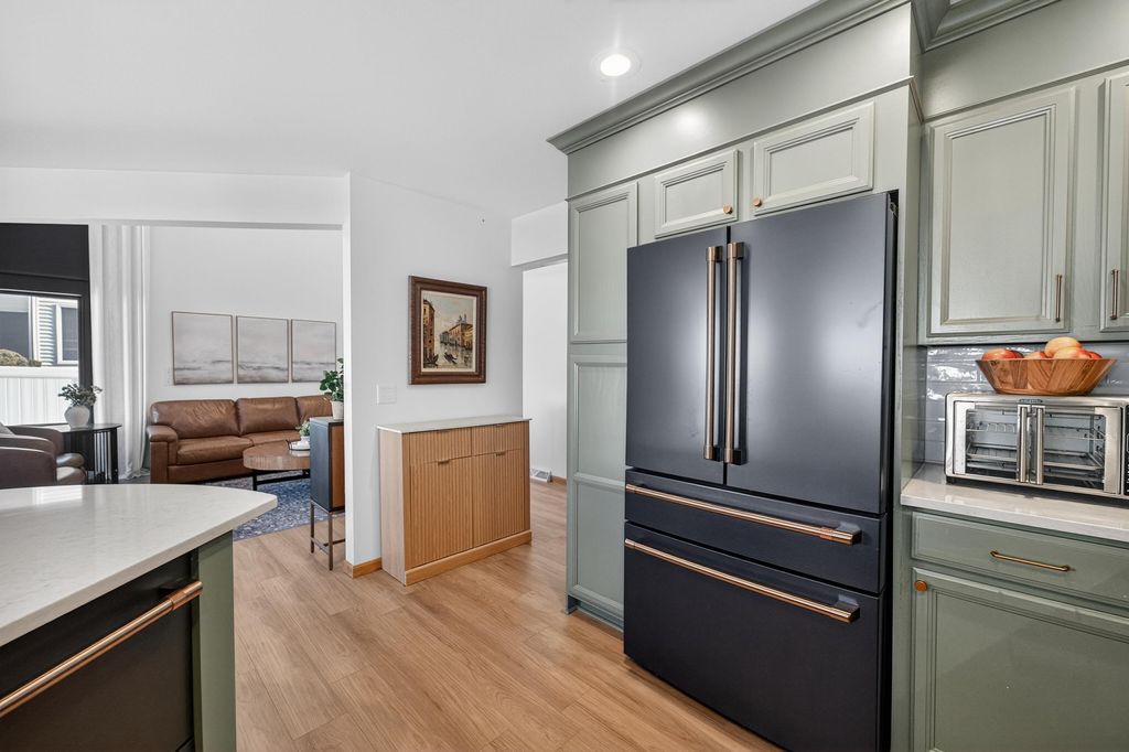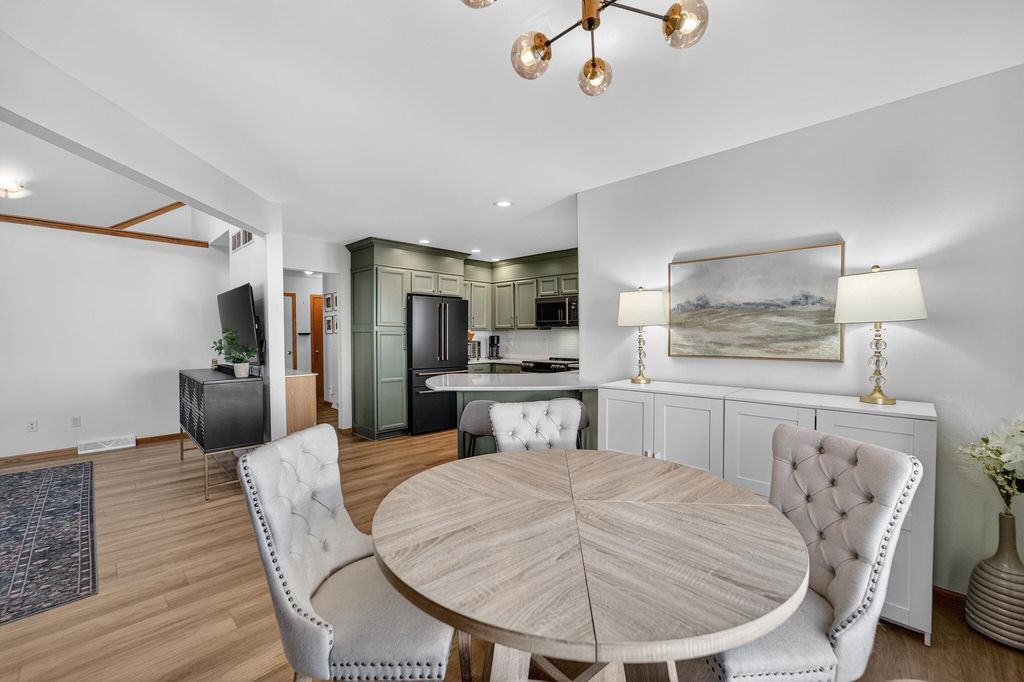 Welcome home to this charming & thoughtfully updated 2 story townhome in the heart of Dodgeville! Enter inside to find soaring ceilings w/ 2 stories of stacked windows for ample natural lighting, new LVP floors, & eat-in kitchen w/ new Café appliances: double dishwasher, double induction oven, microwave w/air-fryer & oven feat, premier fridge with a beverage drawer, quartz counters/breakfast bar, tile backsplash, refreshed cabinetry/hardware, and dining nook w/ walkout. Upstairs find all 3 beds including the Owners Suite w/ private en-suite bath boasting both walk-in shower & soaking tub, plus a spacious walk-in closet. Brand new fenced in yard w/ patio is perfect for kids and/or pets. Also enjoy newly added permanent exterior lighting for seasonal displays or year-round white lighting. The unfinished basement has an added egress window for all your future ideas such as a legal 4th bed and another full bath! Not to forget the main level laundry & 2 car attached garage. Don't miss out!