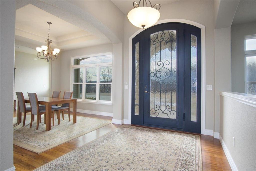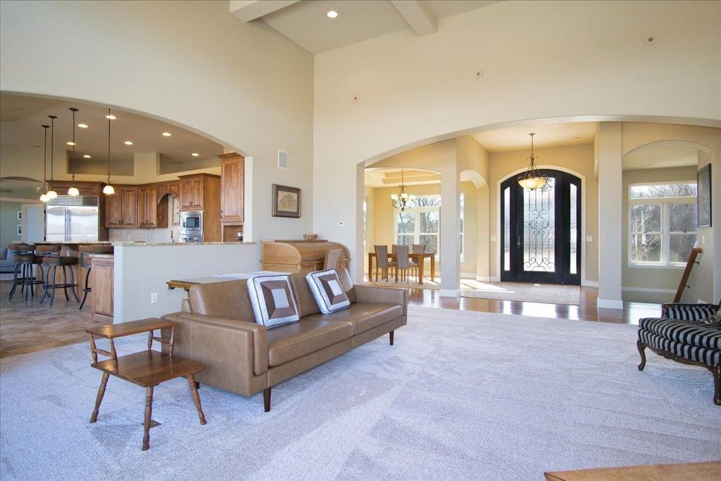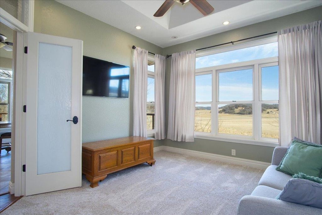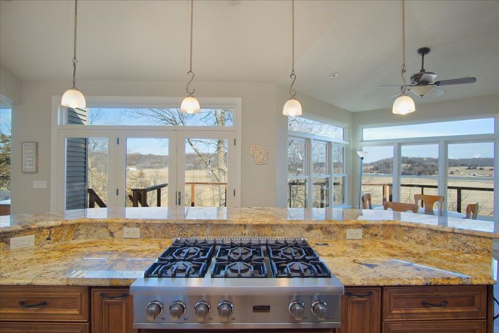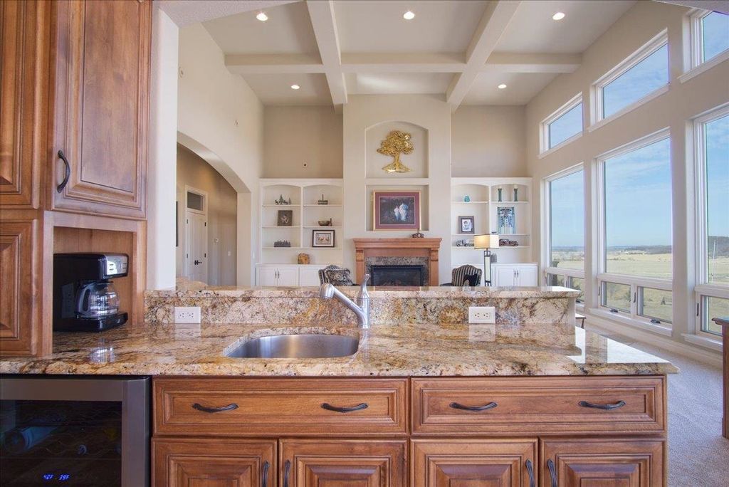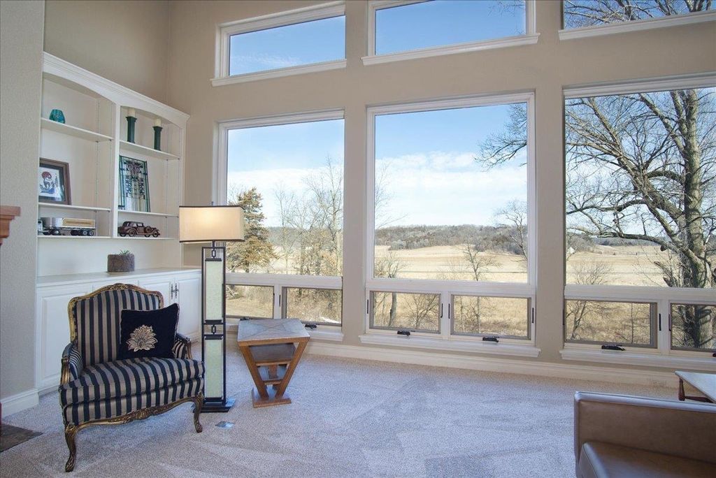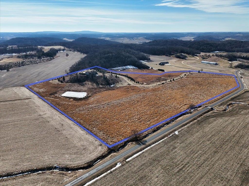 Perched on an elevated knoll overlooking the 40+ acre lot, this executive ranch showcases sweeping countryside views and exceptional privacy. A dramatic entry leads to a great room with fireplace, walls of windows, and 15' coffered ceilings. The chef's kitchen features premium appliances, stone surfaces, and an oversized island designed for entertaining. The primary suite offers private deck access and a spa-like bath with soaking tub and dual vanities. The exposed lower level with additional bedrooms and baths is ready for your personal finishing touches. The entire home is efficient and comfortable with in-floor radiant heat throughout. Attached 3-car garage plus 30'x40' heated hanger/shop with hydroswing door. A rare blend of luxury, land, and lifestyle.