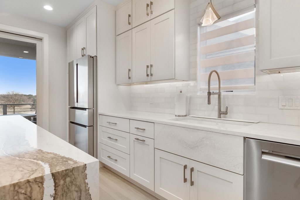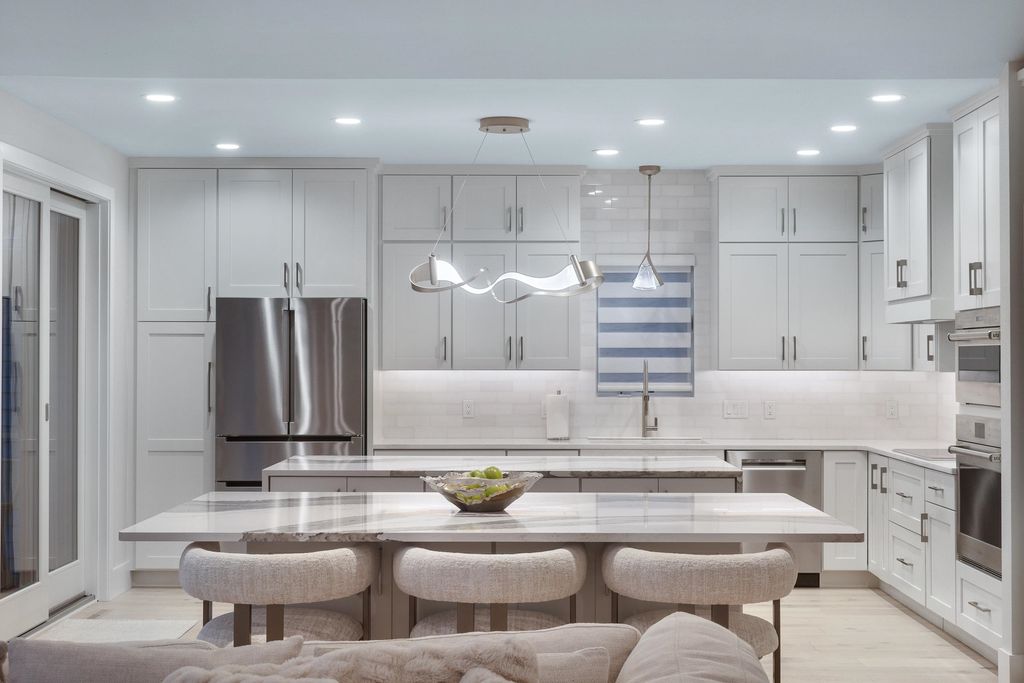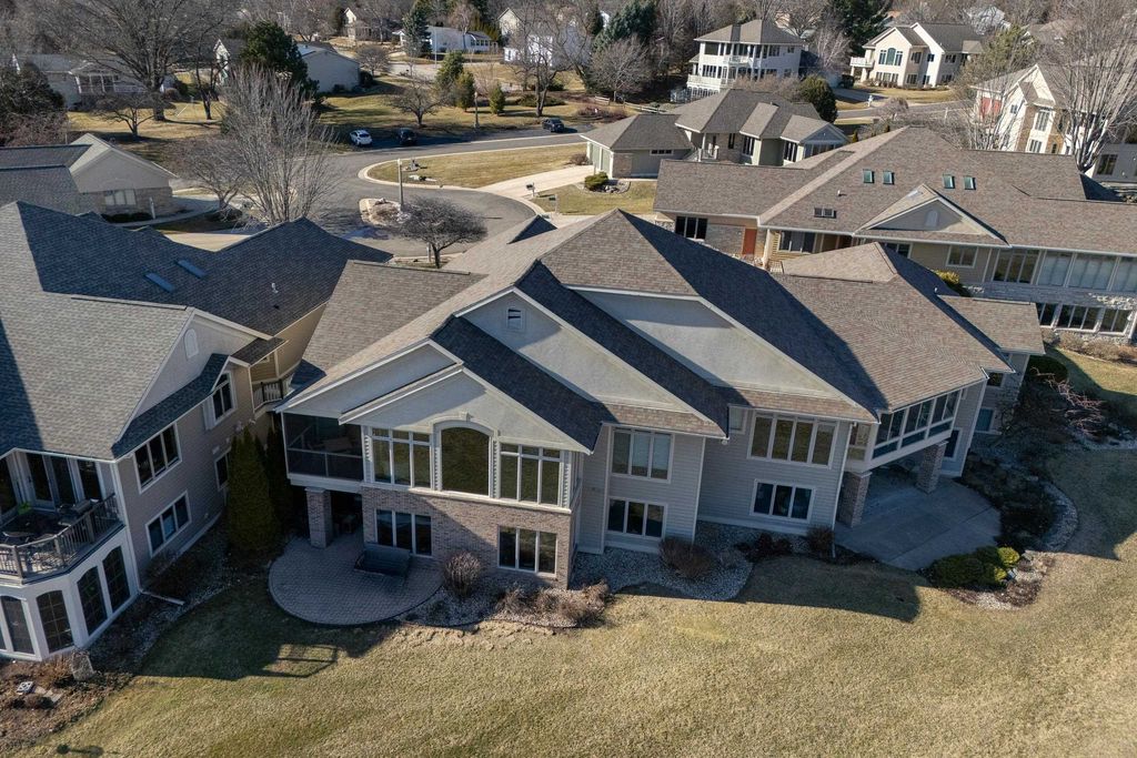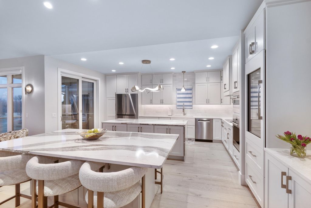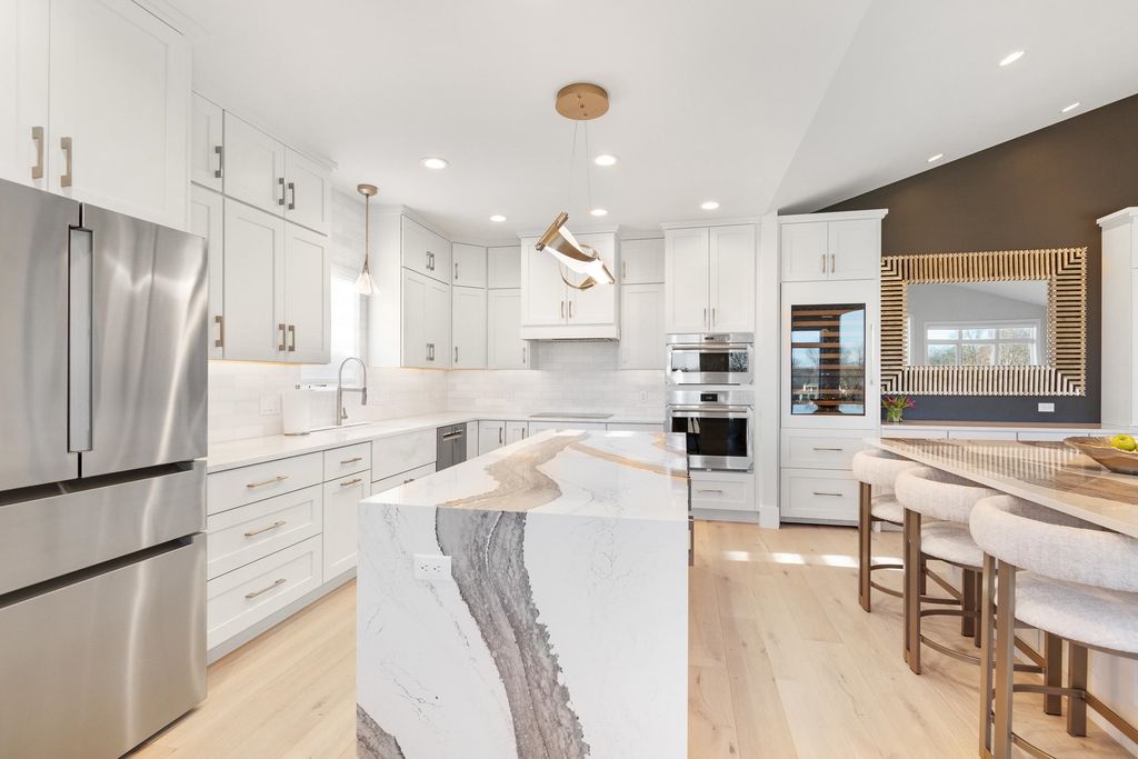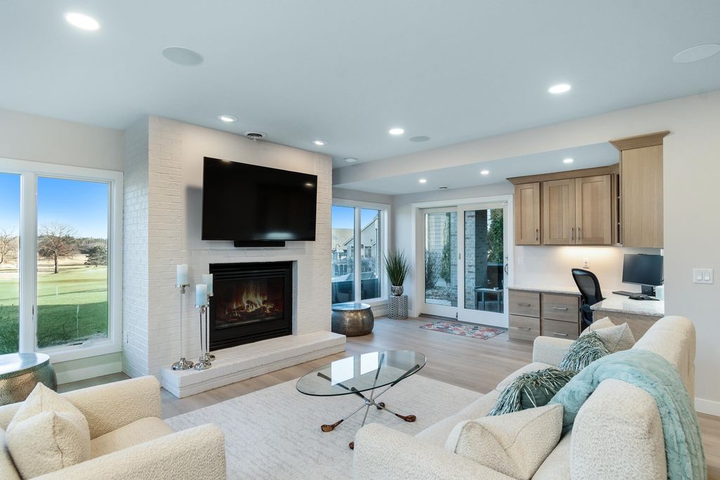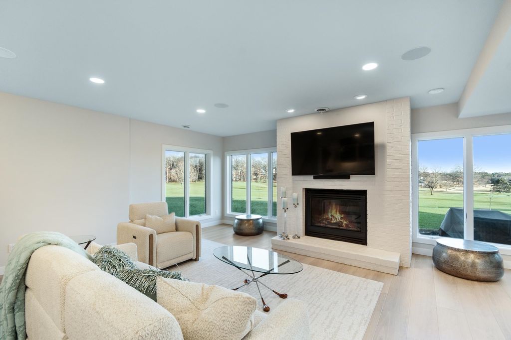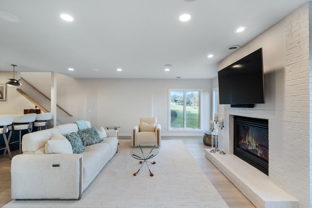 Experience refined living on Bishop's Bay golf course in this fully renovated condo. Recent high-end transformation showcases exceptional craftsmanship + elevated design thru-out. Stunning kitchen offers 2 islands, quartz counters, custom cabs, + high-end appliances Wolf, Bosch + Sub-Zero. ML boasts new hardwood floors, gas fireplace, lux primary suite w/ heated tile bath floors & large walk-in shower. Walk-out LL offers flex space, full bath, bar area w/ bev fridge, wine cooler + ice maker, plus two addtl rooms. Outdoor living shines w/ screened porch w/ composite decking + large paver patio space w/ gas line for grilling. Major mechanical upgrades include 2025 Bryant Evolution furnace & A/C w/ zoning + WiFi thermostats. Oversized garage fits 2 cars plus golf cart, includes epoxy flooring, storage racks, utility sink, + EV pre-wire. Luxury living at its finest.