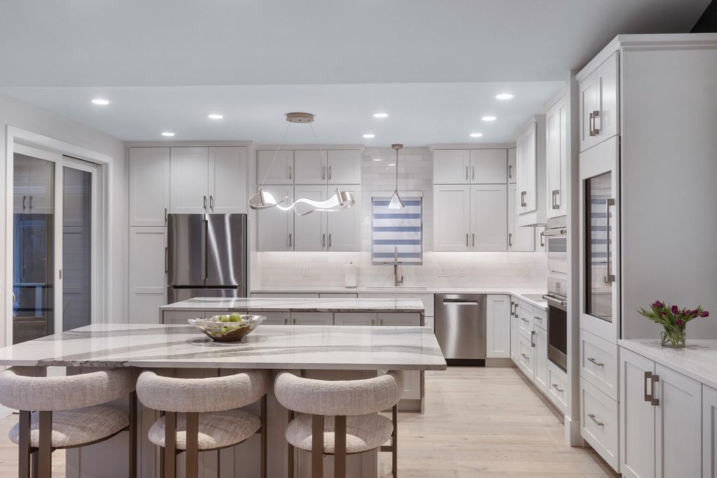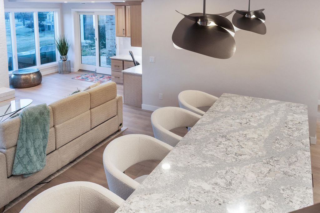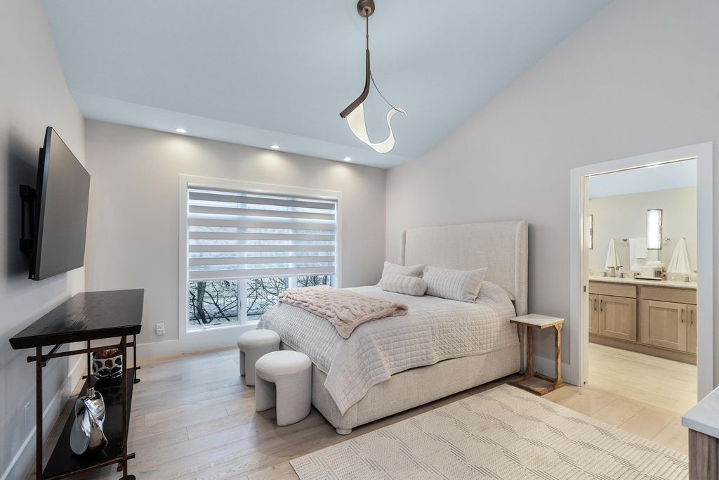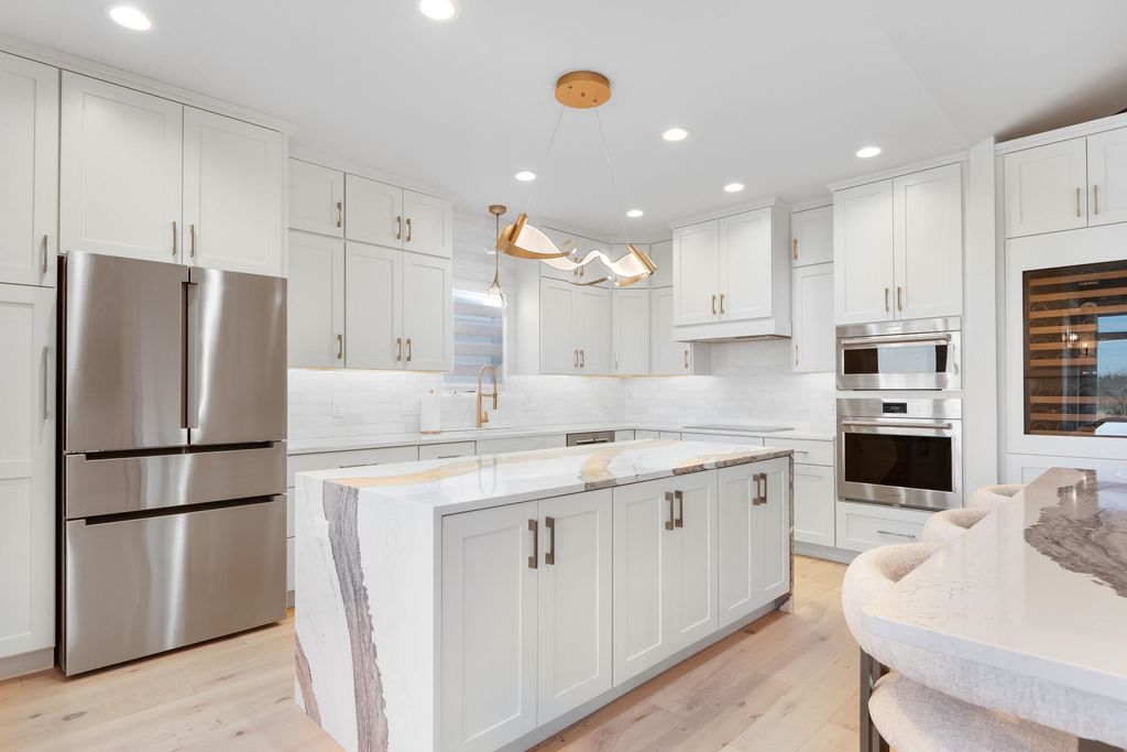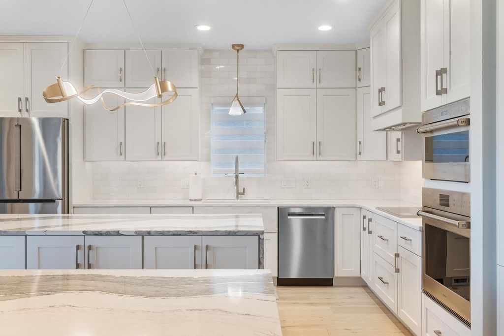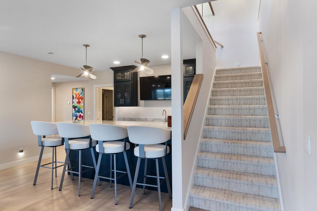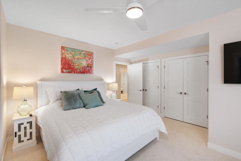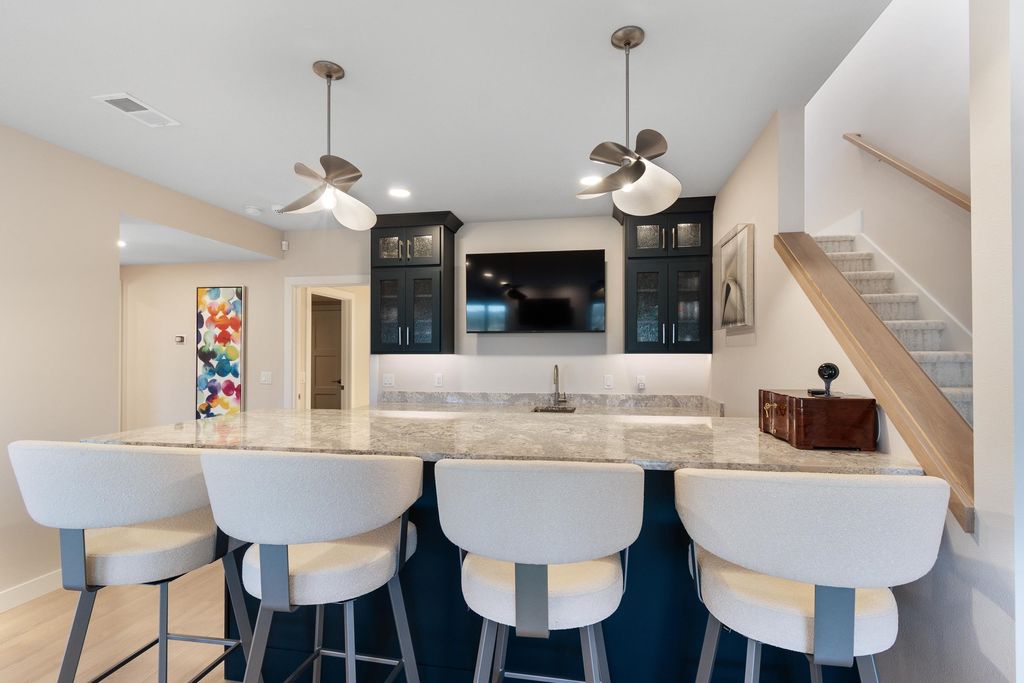 Experience refined living on Bishop's Bay golf course in this fully renovated condo. Recent high-end transformation showcases exceptional craftsmanship + elevated design thru-out. Stunning kitchen offers 2 islands, quartz counters, custom cabs, + high-end appliances Wolf, Bosch + Sub-Zero. ML boasts new hardwood floors, gas fireplace, lux primary suite w/ heated tile bath floors & large walk-in shower. Walk-out LL offers flex space, full bath, bar area w/ bev fridge, wine cooler + ice maker, plus two addtl rooms. Outdoor living shines w/ screened porch w/ composite decking + large paver patio space w/ gas line for grilling. Major mechanical upgrades include 2025 Bryant Evolution furnace & A/C w/ zoning + WiFi thermostats. Oversized garage fits 2 cars plus golf cart, includes epoxy flooring, storage racks, utility sink, + EV pre-wire. Luxury living at its finest.
