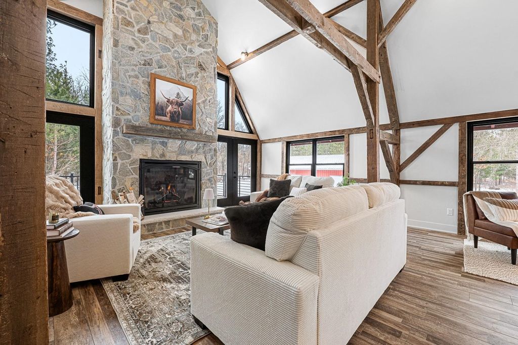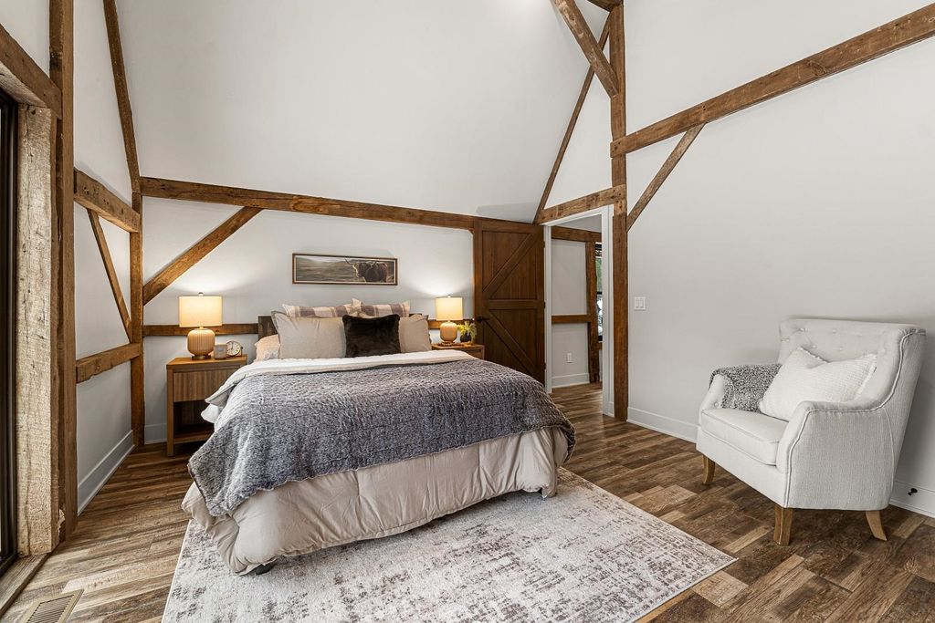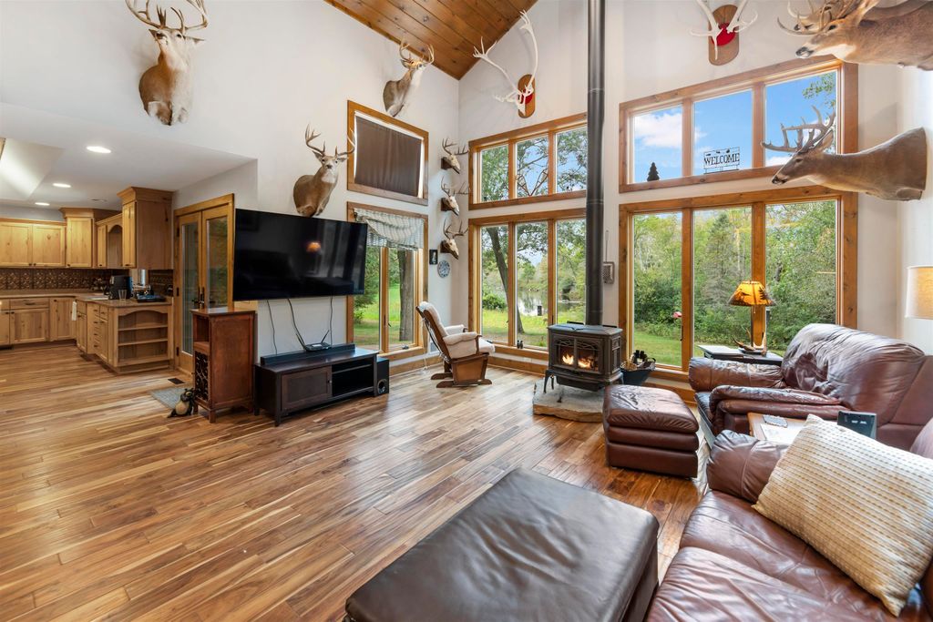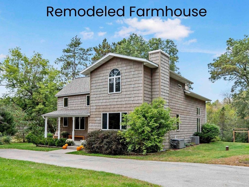 108 acre farmette w/3 homes located on a private dead end road. Has wooded land and cropland. Composed of a stunning recently renovated barn w/2,683 sq ft, 3 bed/2.5 baths. 100 year old beams, floor to ceiling stone gas fireplace. Hook-ups for washer/dryer on both floors. Maintenance free deck. Everything in interior of home and outside siding is new, including new well & septic. Second residential home was totally renovated in 2008-09. Has 1,864 sq ft, 3 bed/3.5 baths. Beautiful teak floors, hickory cabinets, large pantry, washer/dryer on main floor. Vaulted living room ceiling and framed window with views to recently refurbished 1 acre pond. Has its own septic and a shared well w/3rd property. Third home is a 1 bed/1 bath guest house with living room and wood burning stove. Has it's own septic system and shared well w/2nd home. Has microwave, small refrigerator and gas heat. Also a 2 car det. garage and large heated tractor shed are part of the property. 8 food plots, 3 deer stands.