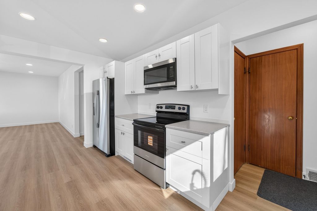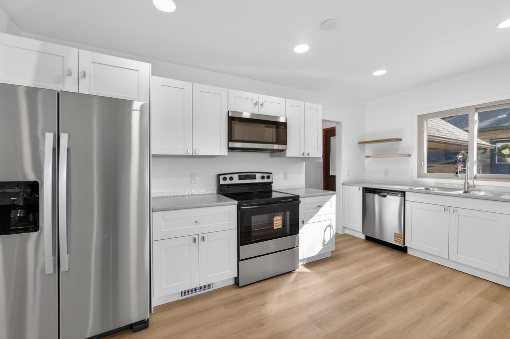 So much charm and thoughtful updates await you in this move-in ready 3BR/2BA cape cod style home! Enter inside to find sleek luxury vinyl plank flooring leading you through the bright and airy main level boasting the open concept living room, kitchen, and dining area. The kitchen is sure to impress with brand new stainless steel appliances, solid counters and plenty of cabinet space. 2 spacious bedrooms and a fully updated bathroom round out the main level. Upstairs find the private owners suite & flex space offering many possibilities such as an in-home office, playroom, or custom walk-in closet! Not to forget the stunning upstairs en-suite bathroom w/ walk-in tile shower. 1 car detached garage w/ covered entry to the house, great location, so much curb appeal. You won't want to miss out!