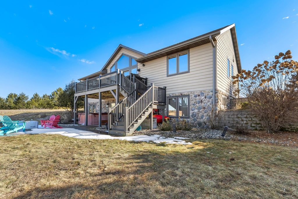 Castle Rock Lake Area Retreat - Private Waterfront Living in New Lisbon, WI! Retreat. Relax. Reconnect. This 4BR, 3BA lake home offers 77' of owned frontage on beautiful Stone Gate Lake in Juneau County. This could be a year around home or use as a 2nd-home (no vacation rentals allowed), enjoy peaceful lake life w/out STR traffic. Sleeps up to 12 people"”perfect for hosting. Gorgeous sunsets from the spacious 'composite' deck with steps down for you to unwind on the patio or in the hot tub. This Wisconsin retreat is an amazing place for you to enjoy fishing, kayaking & floating just steps from your very own 77 ft of shoreline. Home is just minutes to Castle Rock Lake boat landings, many boat slips available in the area & home is very convenient to local restaurants, golf, trails & neighboring Wisconsin Dells fun. Features include solid hickory cabinets,no maintenance siding & gutters, new washer & dryer, dual-zone heat & A/C, Nest thermostat & LL gas fireplace for year-round comfort.