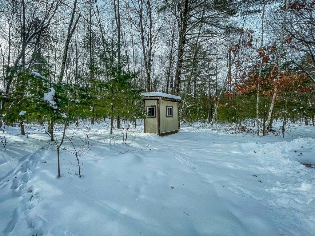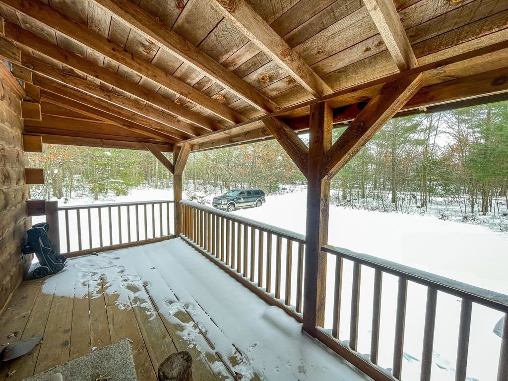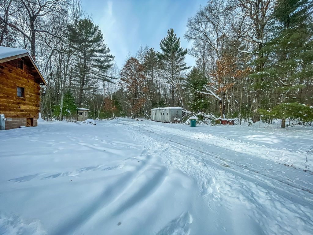 Located near Babcock, Wisconsin, this recreational property features wooded acreage, established trails, and Hemlock Creek along the western boundary. The primarily wooded terrain provides natural cover, wildlife habitat, and a mix of hardwoods and softwoods. Trails allow convenient access throughout the property by foot or ATV. A log cabin serves as a functional recreational base, offering a covered porch, wood fireplace, air conditioning, kitchen, dining area, and spacious loft suitable for guests. The property shows consistent deer activity, supported by timber cover and creek frontage. Conveniently located near Sandhill Wildlife Area, Dexter County Park, and Dexter Lake, providing access to hunting, fishing, camping, and outdoor recreation. Ideal for hunting, seasonal use, or a private retreat.