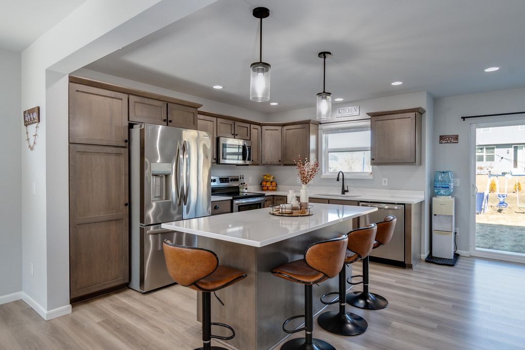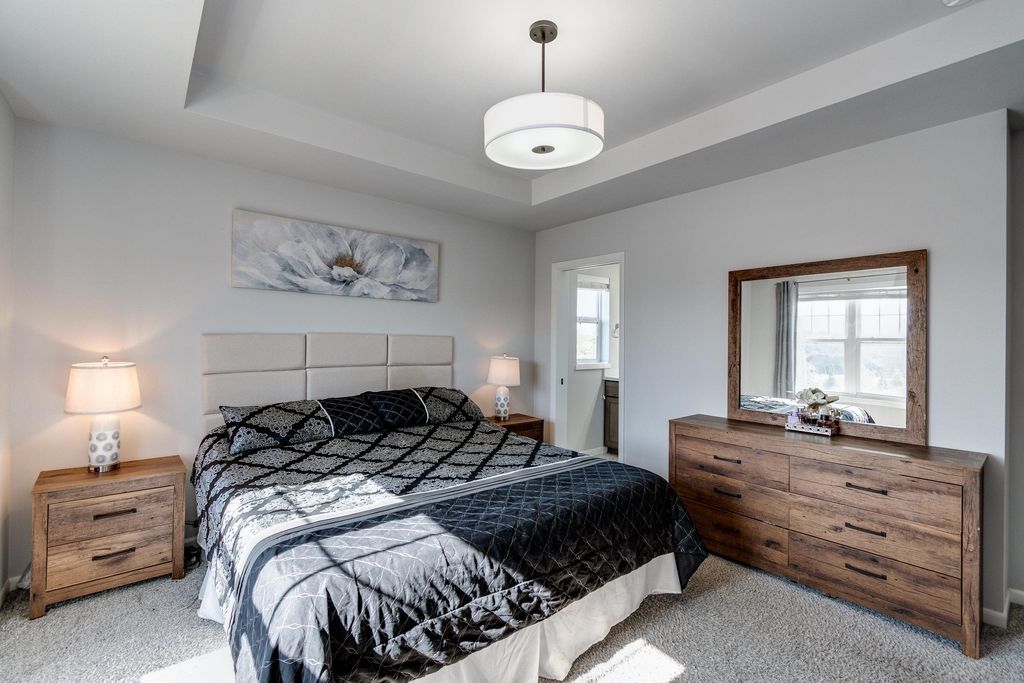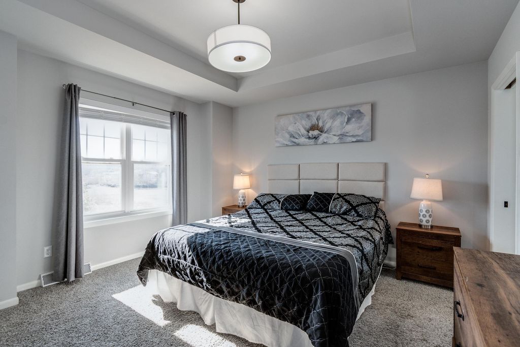 This move-in ready Harlequin home at the end of a quiet cul-de-sac offers a smart, open layout designed for modern living and efficiency. This energy-conscious property features fully paid solar panels to help reduce utility costs. The main level includes painted trim and doors throughout, leading into a gourmet kitchen with a functional island, stainless appliances, a large pantry, and locally crafted cabinetry. The owner suite serves as a comfortable retreat with a tray ceiling, private bath, and spacious walk-in closet. With 3 bedrooms, 3.5 bathrooms, and a finished basement, there is plenty of versatile square footage for a home office, gym, or media room. Enjoy outdoor relaxation on the private patio. Includes a 2-car garage. This property combines a prime location with thoughtful interior finishes and sustainable features. Schedule your showing today!