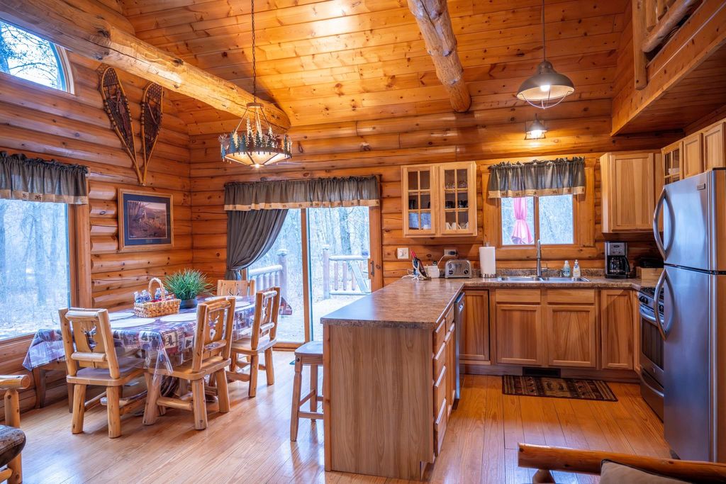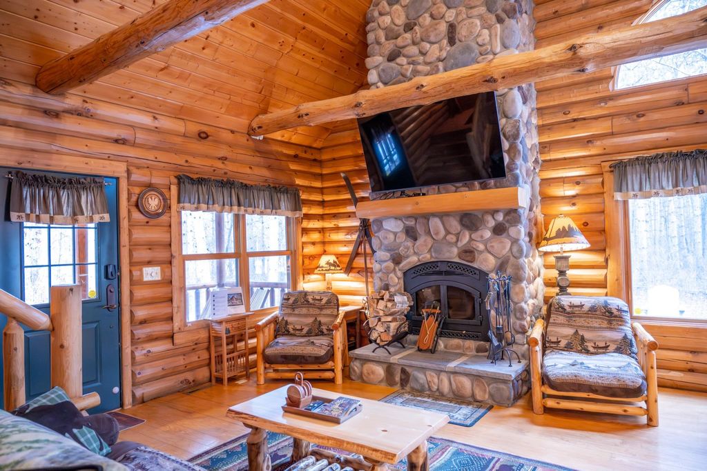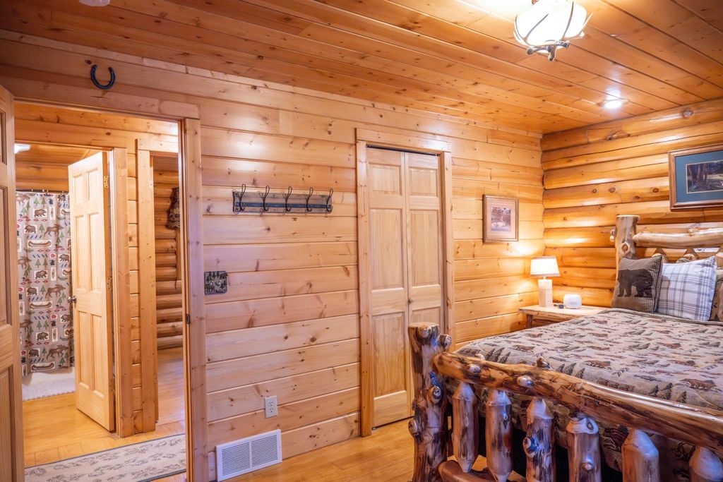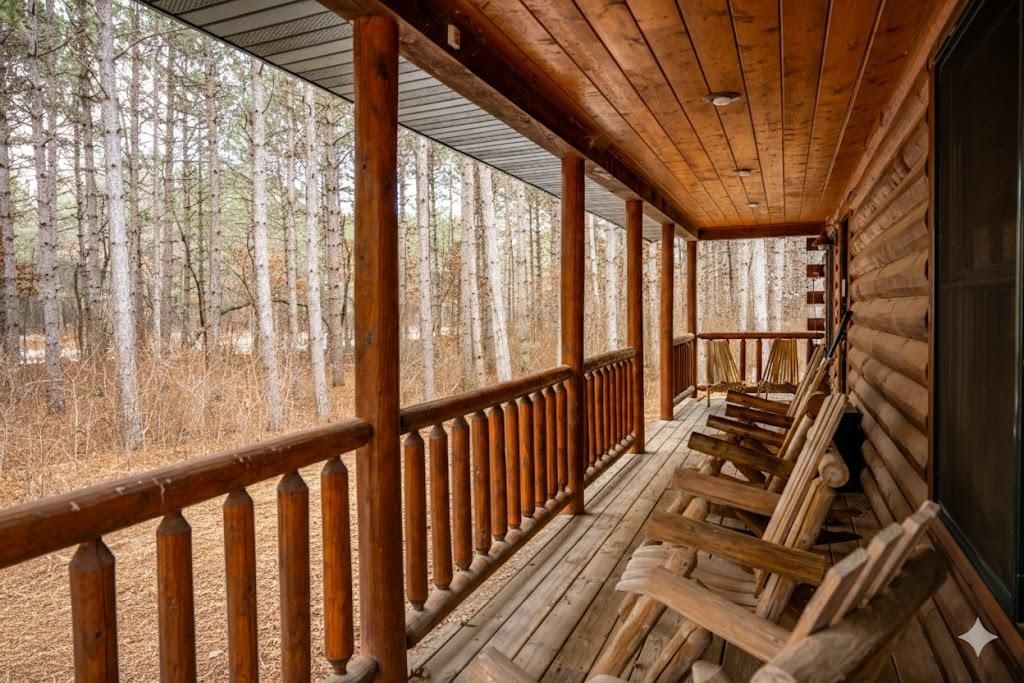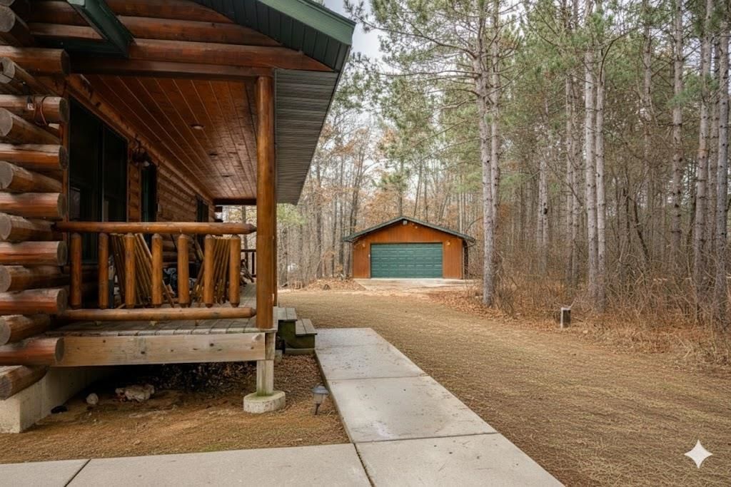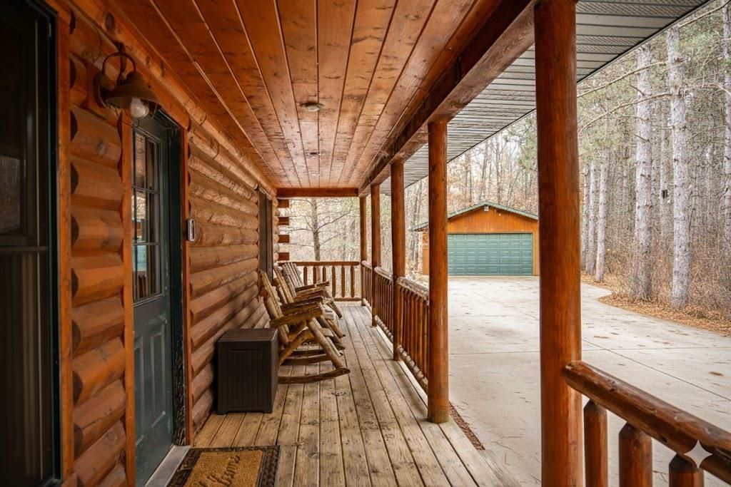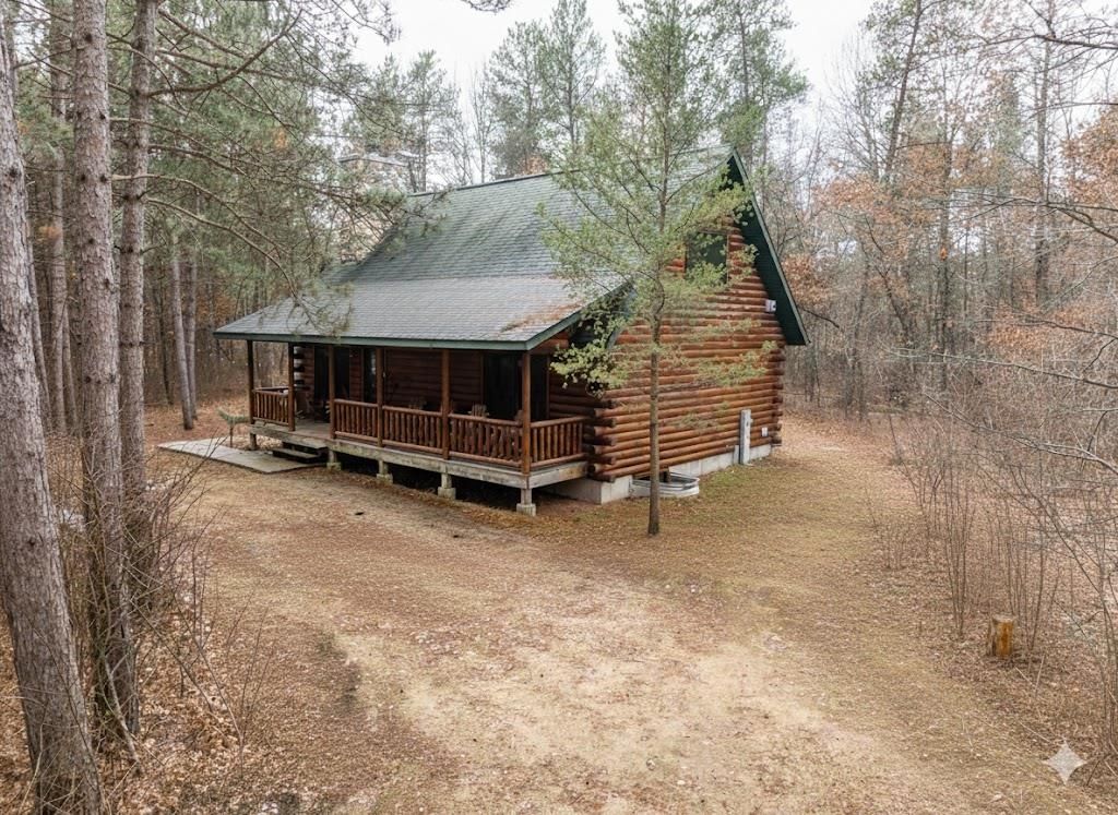 Charming Golden Eagle full log cabin located just across from Petenwell Lake, offering the perfect blend of privacy, recreation & investment potential. Nestled on 2 wooded acres, this 2 bedroom cabin with a spacious loft & 1 full bath features warm rustic finishes, a welcoming covered front porch & 14x18 back deck ideal for relaxing or entertaining after a day on the water. The 900 sq ft full basement with 8' ceiling is already studded for an additional bedroom with an ingress/egress window, pre-wired electric & stubbed for a future bathroom, providing excellent opportunity to expand your living space & add value. A 24x24 detached garage offers plenty of room for vehicles, boats, and all your lake toys. Located just 2 miles from the sandy beach & boat launch on Petenwell Lake. Short-term rentals are allowed, making it a fantastic vacation getaway, year-round retreat, or investor ready property. No association fees, yet protective covenants are in place to help preserve the investment.