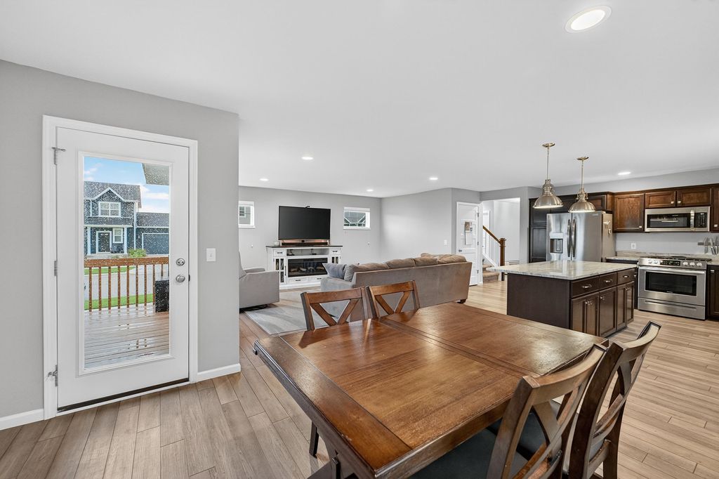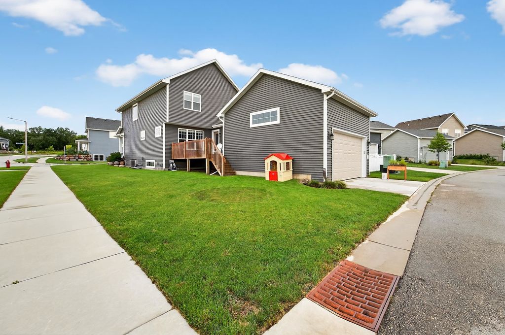 Refined comfort meets everyday functionality in this beautifully appointed two-story home offering 4 bedrooms and 2.5 baths in a thoughtfully designed layout. The upper level features all four bedrooms, anchored by a spacious primary suite showcasing tray ceilings, a spa-like private bath with dual vanity, and a walk-in closet. The main level is light-filled and inviting, with an elegant living room, a flexible den ideal for a private office or library, and a well-designed mudroom with laundry for effortless daily living. Step outside to the wood deck "” perfect for quiet mornings or evening entertaining. The unfinished lower level is stubbed for a future bath and provides an exceptional opportunity to create a custom retreat, gym, or media space. Ideally located near Epic, upscale shopping and dining, parks, and the Ice Age Trail, all within the sought-after Verona School District, this home offers a rare blend of style, comfort, and location.