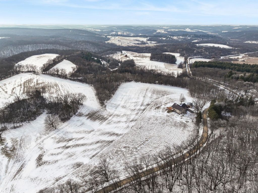 Exciting Offering in NE Iowa County, WI - Rural Home on Approx. 21 Acres! Views of the Existing Landscape, Southern Exposure. Tillable Acreage that is Gradual and Surrounded by Woods. Great Access to Hwy 151, with the Quiet Life of Dugway Rd. The Home Estimated at Approx 2700 SQ FT has been Maintained Very Well, with a nice Open Concept Kitchen, Living Room, and Breakfast Area. This Home has 3 BR, Much Storage, Completed Lower Level, Wood Burning Stove which accents a Room full of possibilities. There is Oak Cabinets, Quartz Counter Tops and Island. Knotty Pine Laminate Flooring, Some Carpet. The Home has a Two Car Attached Garage and a Barn Styled Outbuilding, Large Composite Deck, and Walk Out Lower-Level Patio. The Mechanical's are in Good Condition with Many Updates. Vinyl and Brick Exterior and Steel Roof with Eaves. Newer Windows, Some with Remote Control Blinds, and Doors Throughout. Well and Septic Good Shape, Maintained and Inspected. Internet Accessible.