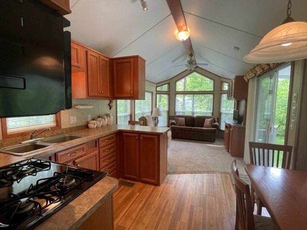 Looking for your Tiny Home in the Woods? Here's a 2012 Breckenridge Park Model with a private Bedroom, Sleeping Loft, Bath w/Full Size Tub & Shower! Kitchen is fabulous with Gas Range, Full Size Refrigerator and lots of storage! Enjoy the privacy from your fabulous Covered Deck! Lot is over a half acre and nicely wooded! Driveway, 3 Bedroom Septic, 6" Drilled Well and oversized air conditioner and heat pump! Also comes with a 12x12 shed and 12x12 patio firepit area! Just a short walk to the Pool & Tennis Courts! Deeded access to Lake Arrowhead & 4 Lake Centers! Just across the road from Sand Valley Golf Course; a mile from Lake Petenwell...location is key!!