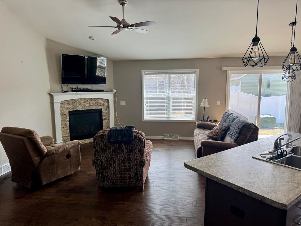 Delayed for photos. Showings start Feb 27th. Location, Location, Location! This great 2 bedroom, 2 bathroom condo has an open floor plan and a split bedroom design. Spacious eat in kitchen. Cathedral ceilings in the great room. Gas fireplace. Pantry, kitchen island and stainless appliances. Large primary suite with walk in closet. First floor laundry with zero step from garage into the home. Come take a look!