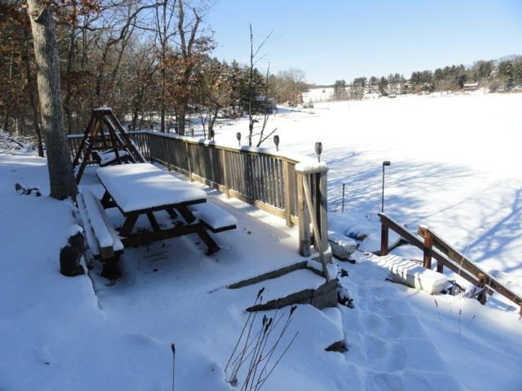 A very generous amount of square footage with this waterfront property on the secluded and quiet Marl Lake, a 41 acre 35 foot deep clear water lake with great fishing. Motors are allowed, with a no wake ordinance. The home has 4 bedrooms, 3.5 baths on 3 levels with 3700 square feet. Open concept with a large living room, kitchen (all appliances included) and dining area. There is a formal dining area as well. The main floor also has a bedroom, half bath & access to the 2 car attached garage. A huge bonus is the upper level which has 2 very large master suites w/spacious walk-in closets. The exposed walk-out lower level is a very nice feature with this property with a large family room, the 4th bedroom and 3rd full bath, wet bar, laundry/storage room and has direct access to the garage. The walkout leads directly to the lower deck/patio & access to the steps down to the waters edge. A very nice pier system & boat house are included in the sale as well as a hot tub. Enjoy the Lake Life!