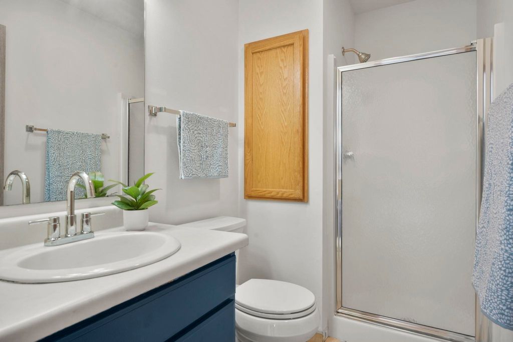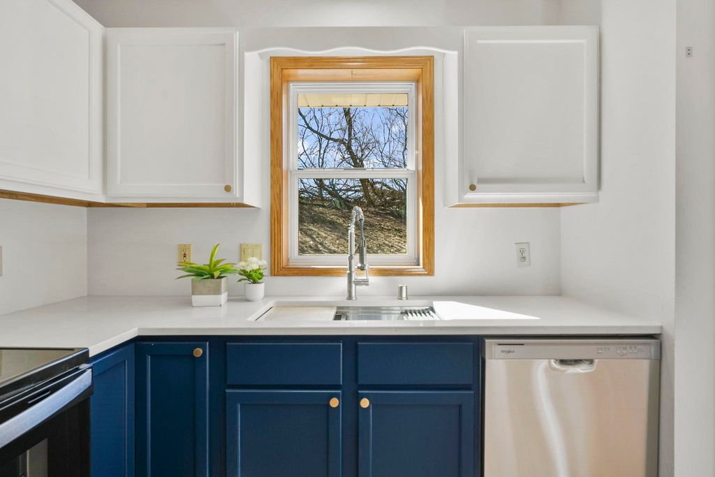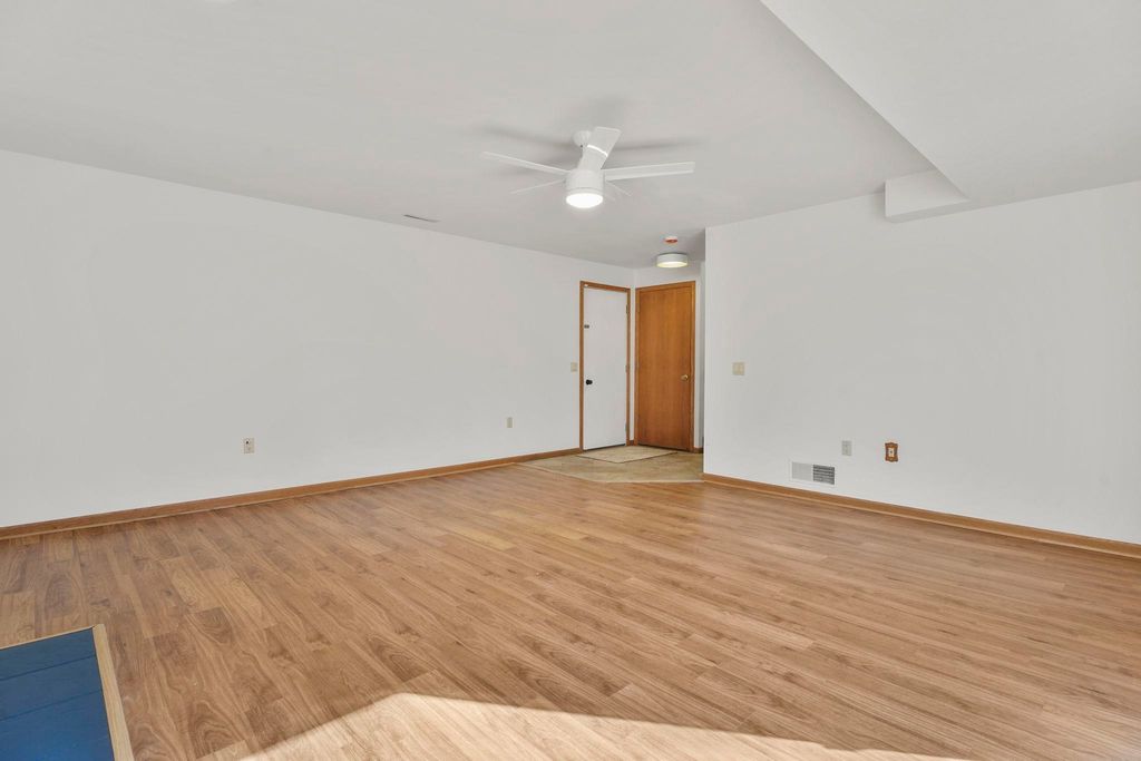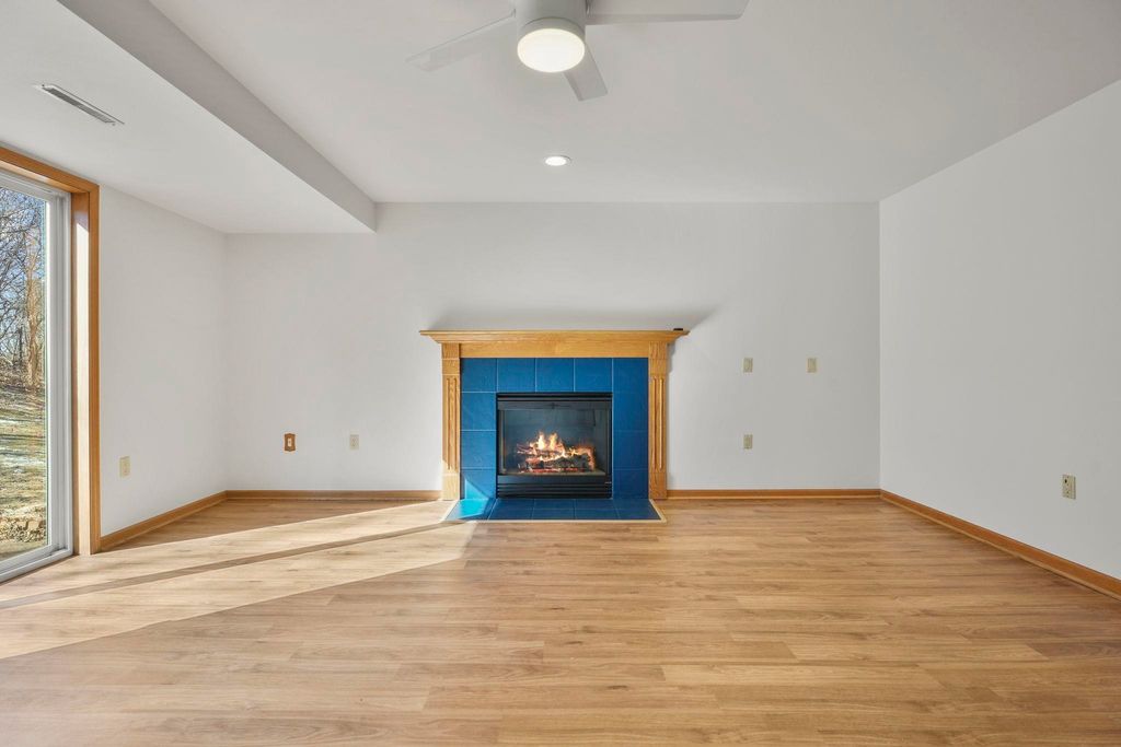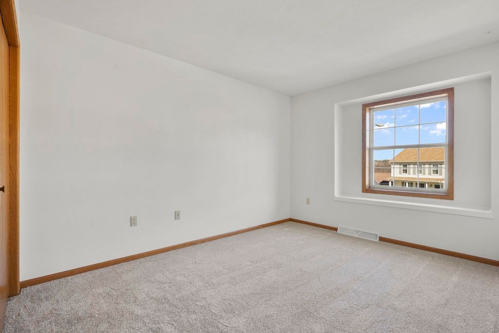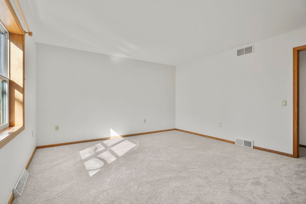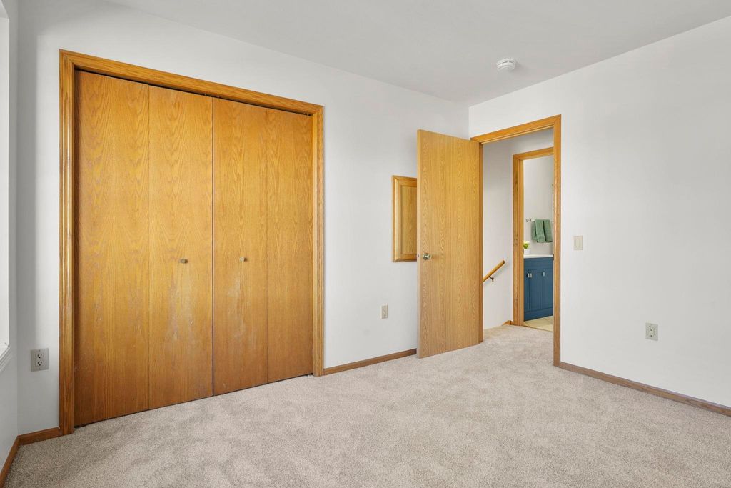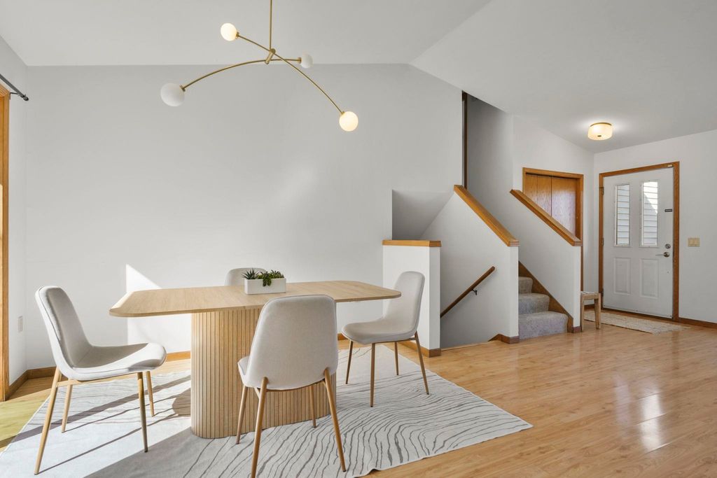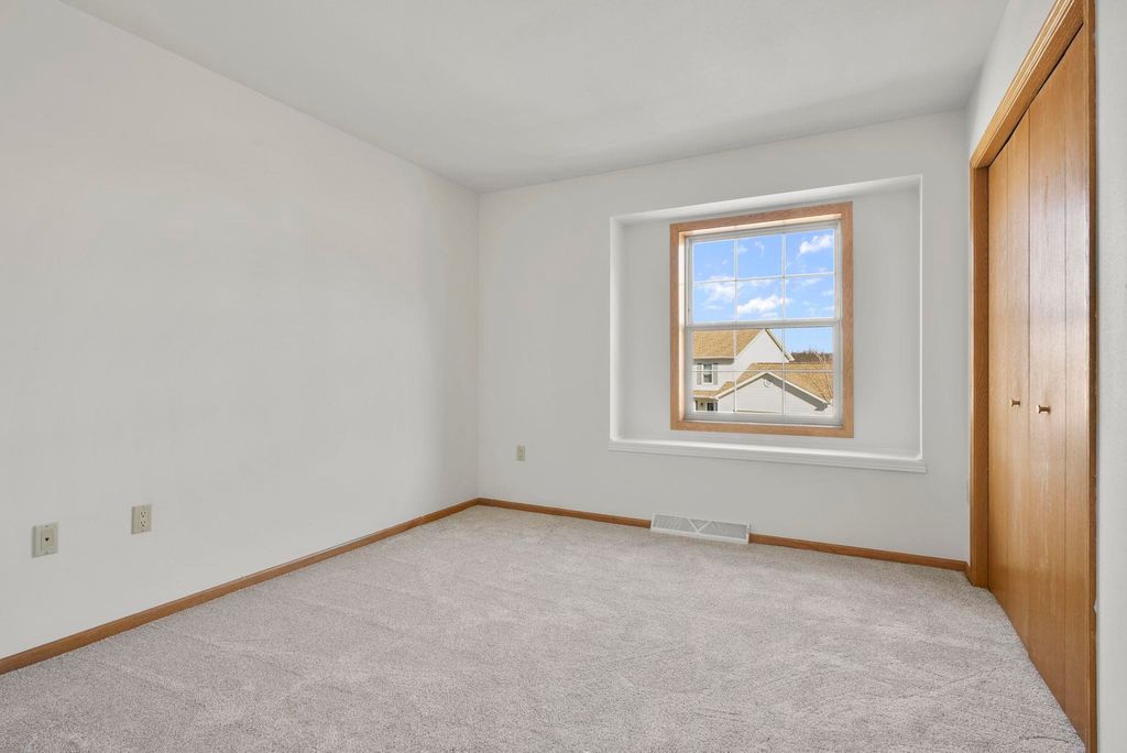 Showings to begin 2/27. Tucked in a quiet cul-de-sac and backing to city green space, this beautifully updated home offers rare privacy in a convenient location. Major recent improvements include a new roof and skylight, furnace and A/C, water heater, water softener, kitchen appliances, attic insulation, carpet, lighting, and fresh paint, which makes it move-in ready. The open-concept main level connects the living, dining, and kitchen areas with easy access to the back deck overlooking the wooded yard. The kitchen has all new appliances, quartz countertops and handy workstation sink. Upstairs features three bedrooms, including a spacious owner's suite with walk-in closet and private bath. The full walk-out lower level adds flexible living space with a gas fireplace, third full bath, and finished rec area, ideal for a family room or office. Close to shopping, dining, and a few steps away from Sandstone Park and the elementary school. Includes $1,000 landscaping credit.