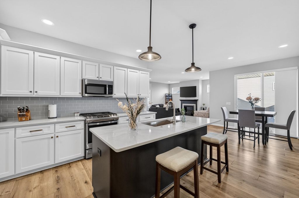 Welcome home to this move-in ready, like new ranch style duplex in the sought after Haven at Birchwood Point! Enter inside to find sleek LVP flooring leading you throughout the bright and airy main level boasting a stainless steel kitchen w/ quartz island/breakfast bar, tile backsplash, & dining area w/ walkout what could be your very own deck or patio! Nicely laid out split style bedrooms including your owners suite w/ private en-suite bath, walk-in tile shower, & walk-in closet. 2nd full bath, laundry room, and 3rd bedroom that easily doubles as an in-home office/den round out the main level. Huge unfinished basement w/ endless opportunities to add your finishing touches. Not to forget the spacious 2 car attached garage. Low maintenance living in a great West side location, minutes to shopping, restaurants, parks, schools and more! HOA fee inc lawn care and snow removal