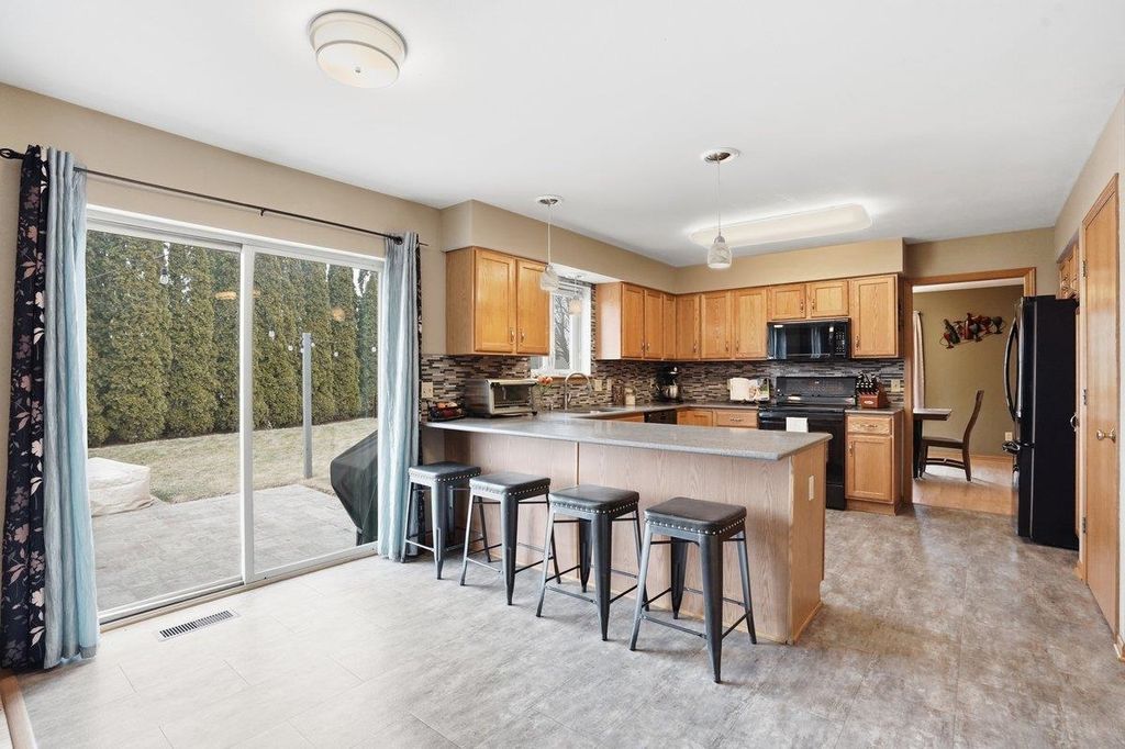 Showings begin 2/27. This is the one you've been waiting for, located on a quiet cul-de-sac with no backyard neighbors! You'll love the updated kitchen, with new flooring, quartz countertops, and wonderful views to your brick patio and green space beyond. The multiple living spaces offer plentiful room for entertaining, and the fireplace is the perfect place to relax on those winter nights. Upstairs you'll find 3 bedrooms, including the spacious primary suite with updated bathroom. The basement features another large living space, and bonus room for that home office. Former laundry room offers space for another full bathroom, and you still have plenty of storage! And don't forget about one of the best backyard playhouses you've ever seen! Updates include roof (2025), AC (2021), furnace (2019), kitchen and appliances (2017), and fresh landscaping and paint. Within walking distance to beautiful downtown Stoughton, Yahara River Trail, and elementary school, this home truly has it all!