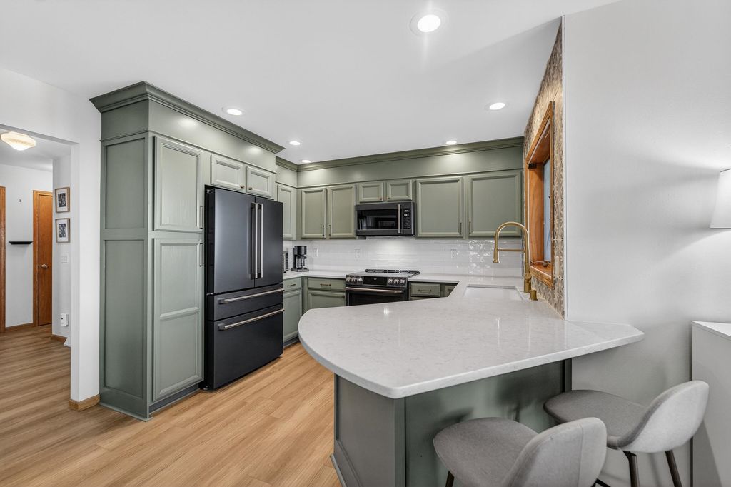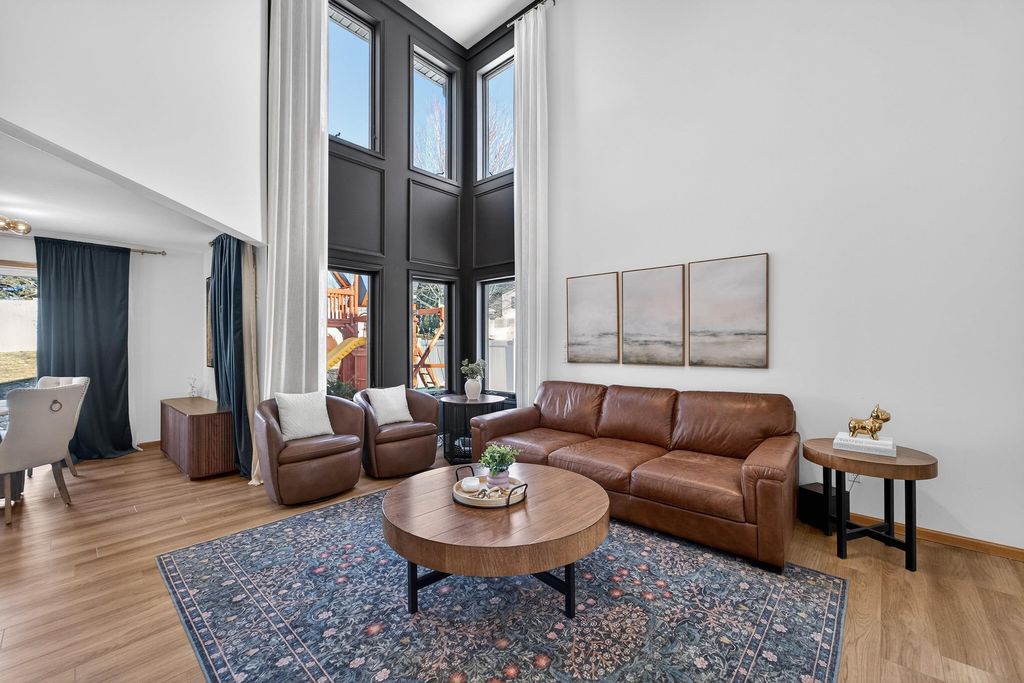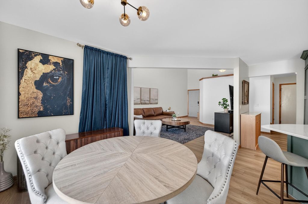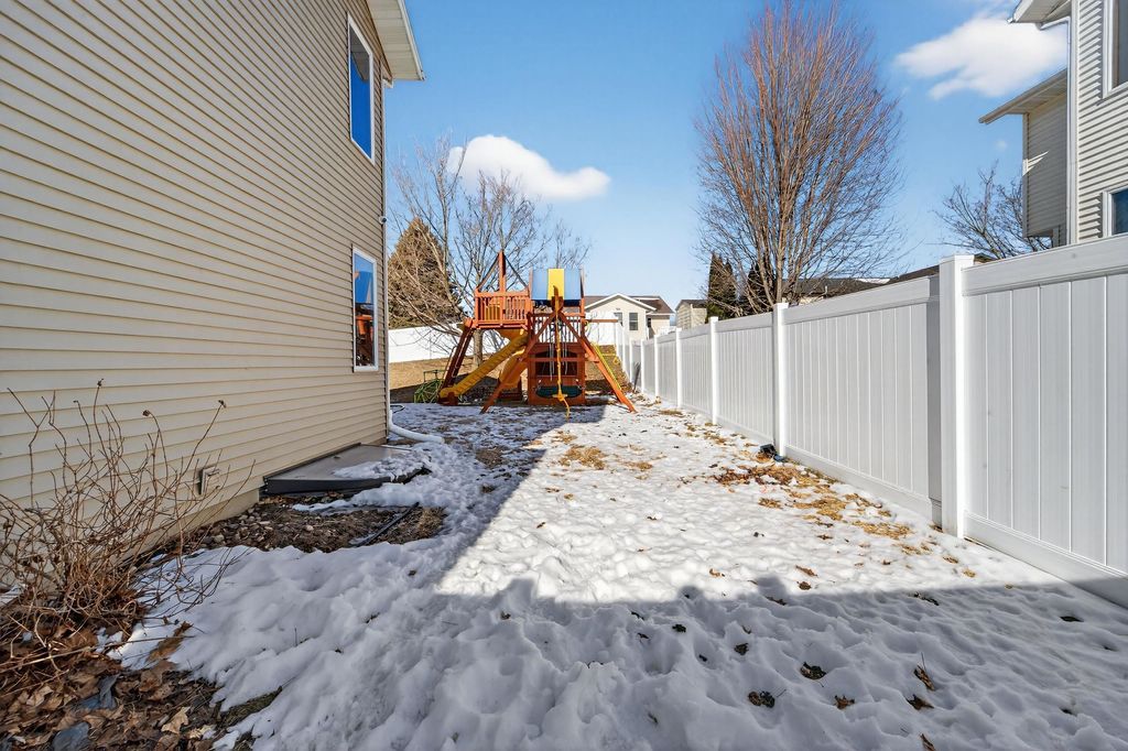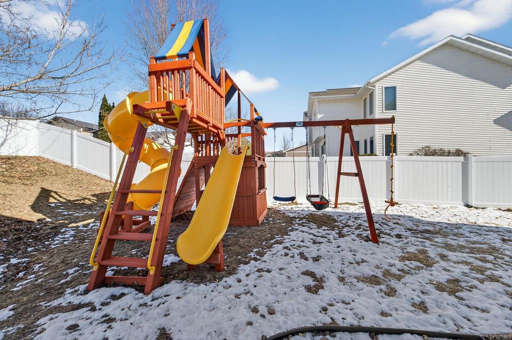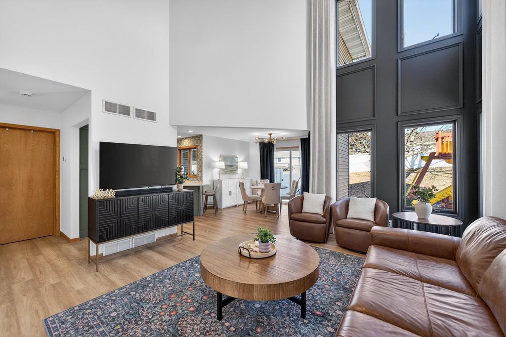 Welcome home to this charming & thoughtfully updated 2 story townhome in the heart of Dodgeville! Enter inside to find soaring ceilings w/ 2 stories of stacked windows for ample natural lighting, new LVP floors, & eat-in kitchen w/ new Café appliances: double dishwasher, double induction oven, microwave w/air-fryer & oven feat, premier fridge with a beverage drawer, quartz counters/breakfast bar, tile backsplash, refreshed cabinetry/hardware, and dining nook w/ walkout. Upstairs find all 3 beds including the Owners Suite w/ private en-suite bath boasting both walk-in shower & soaking tub, plus a spacious walk-in closet. Brand new fenced in yard w/ patio is perfect for kids and/or pets. Also enjoy newly added permanent exterior lighting for seasonal displays or year-round white lighting. The unfinished basement has an added egress window for all your future ideas such as a legal 4th bed and another full bath! Not to forget the main level laundry & 2 car attached garage. Don't miss out!