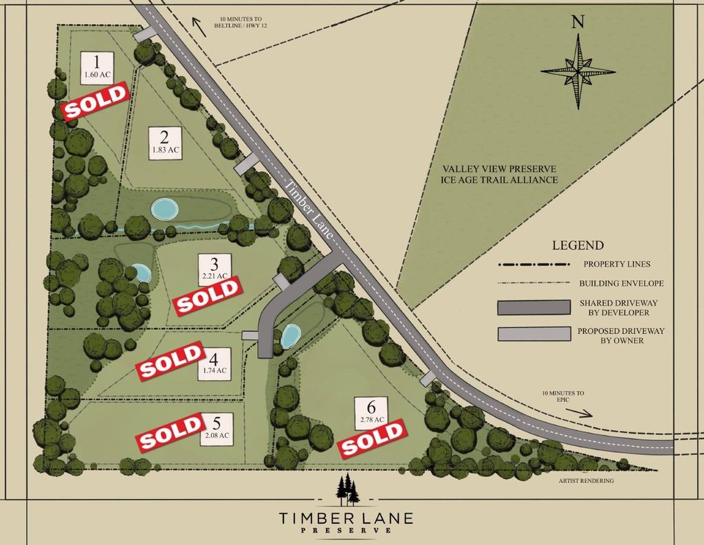 Build on 1.83 acres in Timber Lane Preserve, a limited lot neighborhood in the Middleton-Cross Plains Area School District. This is the only lot currently available, offering a rare opportunity for acreage in the Town of Middleton just minutes from downtown Middleton, West Madison, Epic, and the Beltline. Homes are scheduled to begin construction this summer.