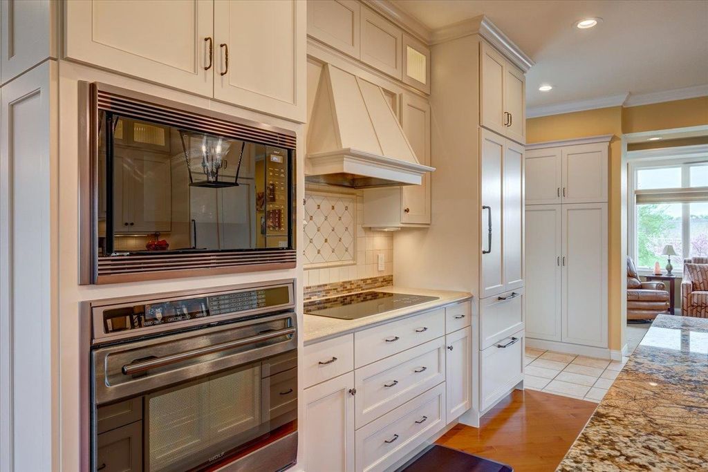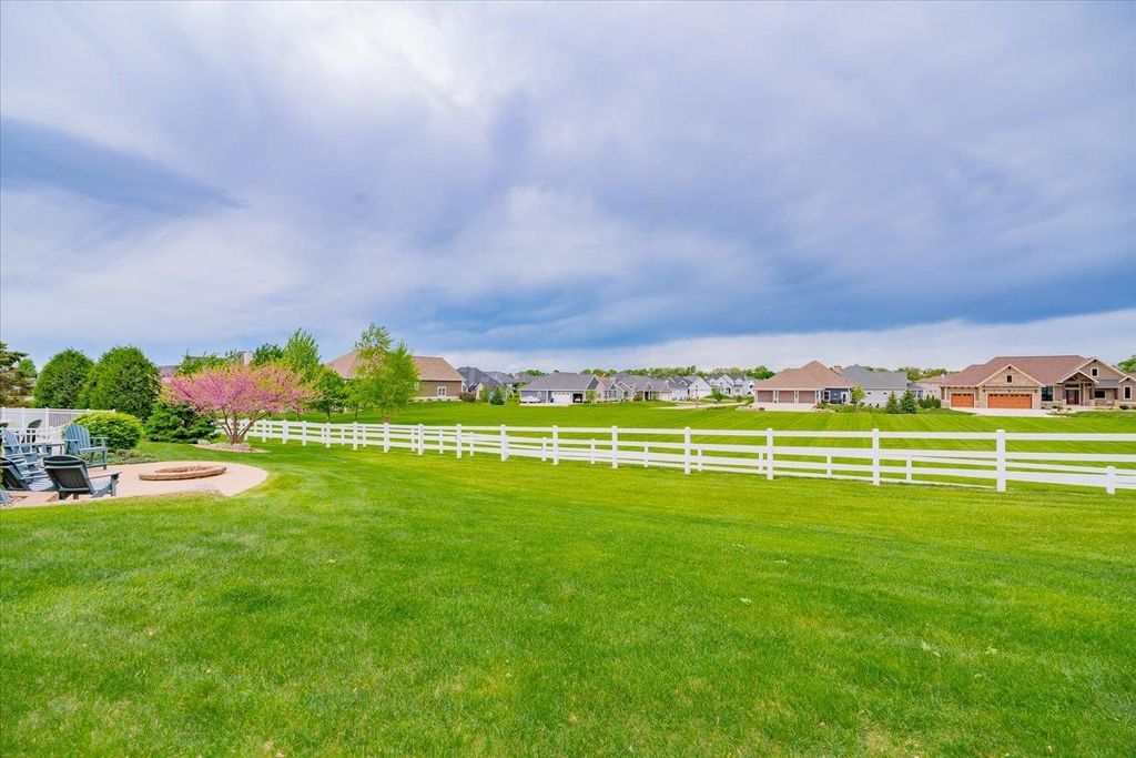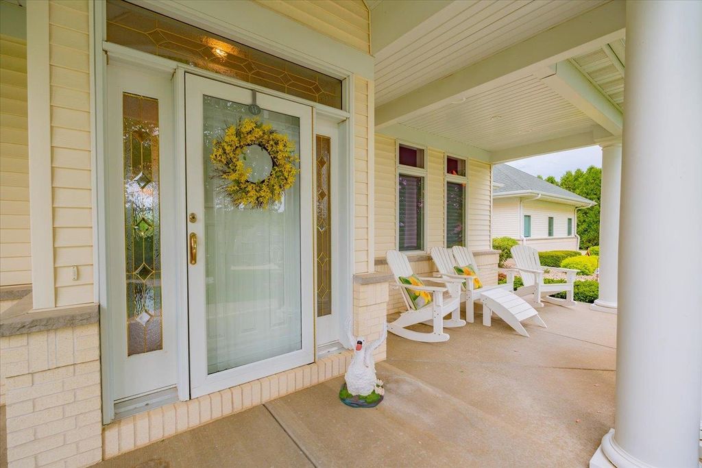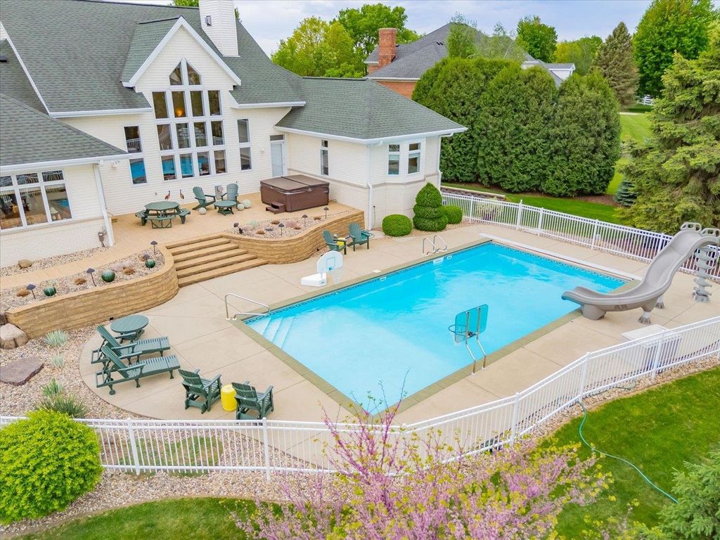 Waunakee Schools! Discover this stunning one-level home in the picturesque Carriage Ridge community, surrounded by miles of walking trails and situated on nearly an acre. Experience effortless living with luxurious touches throughout. The vaulted living room boasts large windows, a floor-to-ceiling stone fireplace, and breathtaking views. The gourmet kitchen features top-tier Wolf appliances, a spacious butler's pantry, and ample storage. Custom closets enhance both convenience and style. With four fireplaces, including a charming gas fireplace in the sunroom, the home exudes warmth. The lower level is ideal for gatherings, complete with a wet bar. Outside, enjoy a vast patio, a built-in fire pit, hot tub, and pool with slide. A large garage rounds out this incredible property!