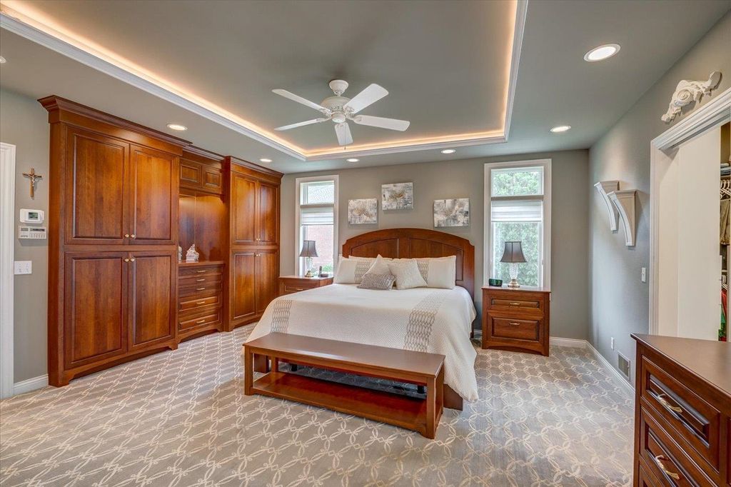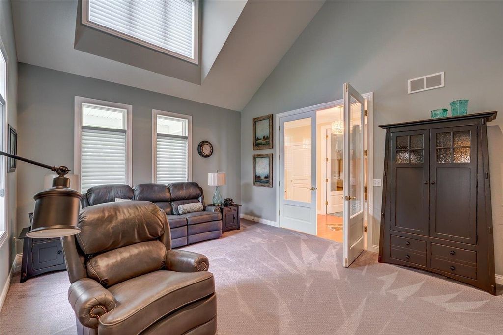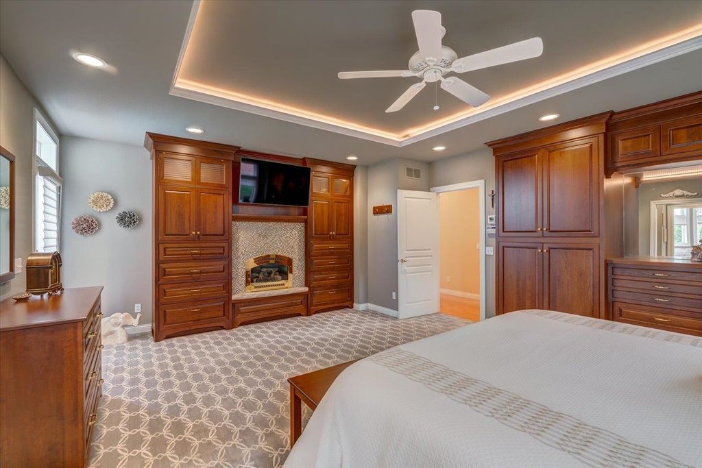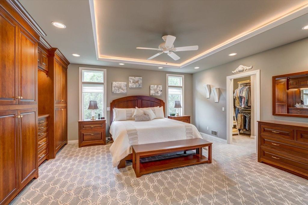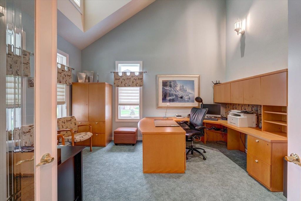 Waunakee Schools! Discover this stunning one-level home in the picturesque Carriage Ridge community, surrounded by miles of walking trails and situated on nearly an acre. Experience effortless living with luxurious touches throughout. The vaulted living room boasts large windows, a floor-to-ceiling stone fireplace, and breathtaking views. The gourmet kitchen features top-tier Wolf appliances, a spacious butler's pantry, and ample storage. Custom closets enhance both convenience and style. With four fireplaces, including a charming gas fireplace in the sunroom, the home exudes warmth. The lower level is ideal for gatherings, complete with a wet bar. Outside, enjoy a vast patio, a built-in fire pit, hot tub, and pool with slide. A large garage rounds out this incredible property!