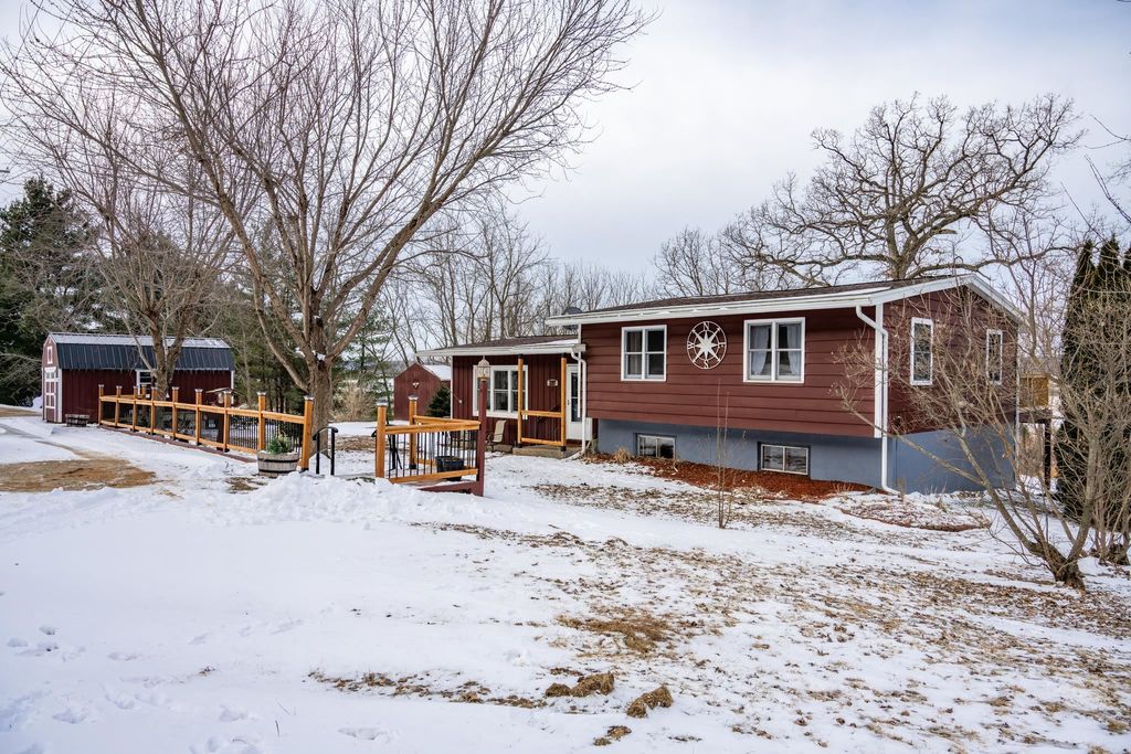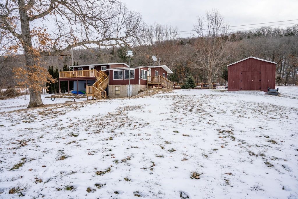 Country living yet close to town! This split-level home offers amazing sunset views. Large living room, updated dining room and kitchen and main level offers a finished sunroom as well. Upper level has three bedrooms with a full bathroom and has a walkout onto a beautiful, newer back deck (to watch the sunset from!). Lower level currently being used as a workshop but could be an office/home gym area/den. Pull-through drive makes entering on and off State Road 58 a breeze. Storage shed for lawnmower/snowblower. These owners have made many updates in the time they've owned the home including new natural gas boiler, new hot water heater, new roof and gutters and new drilled well, along with updated flooring throughout and renovated bathroom. Schedule a time to see it in person today!