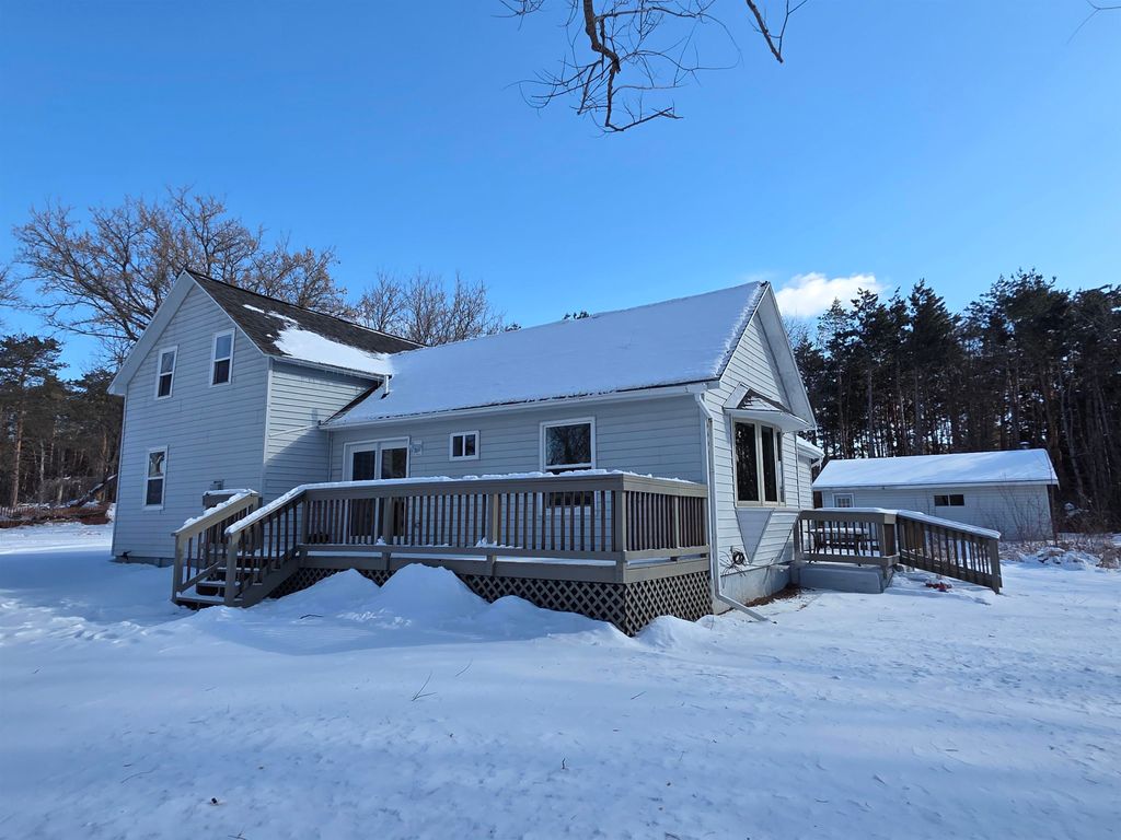 Don't let this home pass you by! Remodeled farm house with a kitchen that is easy to fall in love with. Kitchen features large kitchen island, stainless steel appliances, Hickory cabinets, quartz counter tops, farmhouse sink and a pot filler! Decks off of kitchen and living room to enjoy the wildlife or entrainment. 5 acres to enjoy or potential to have a few animals. Small barn/outbuilding could be used for storage or animals. ROOF is only 2 years old! Prefect hunting spot as the DNR public land is at the end of the driveway.