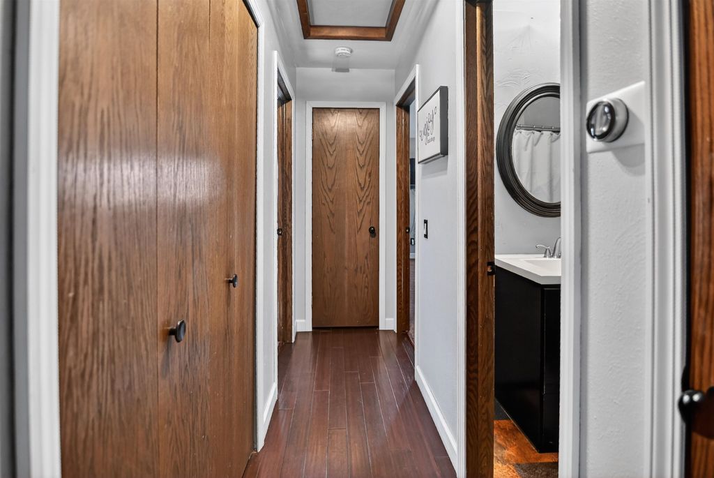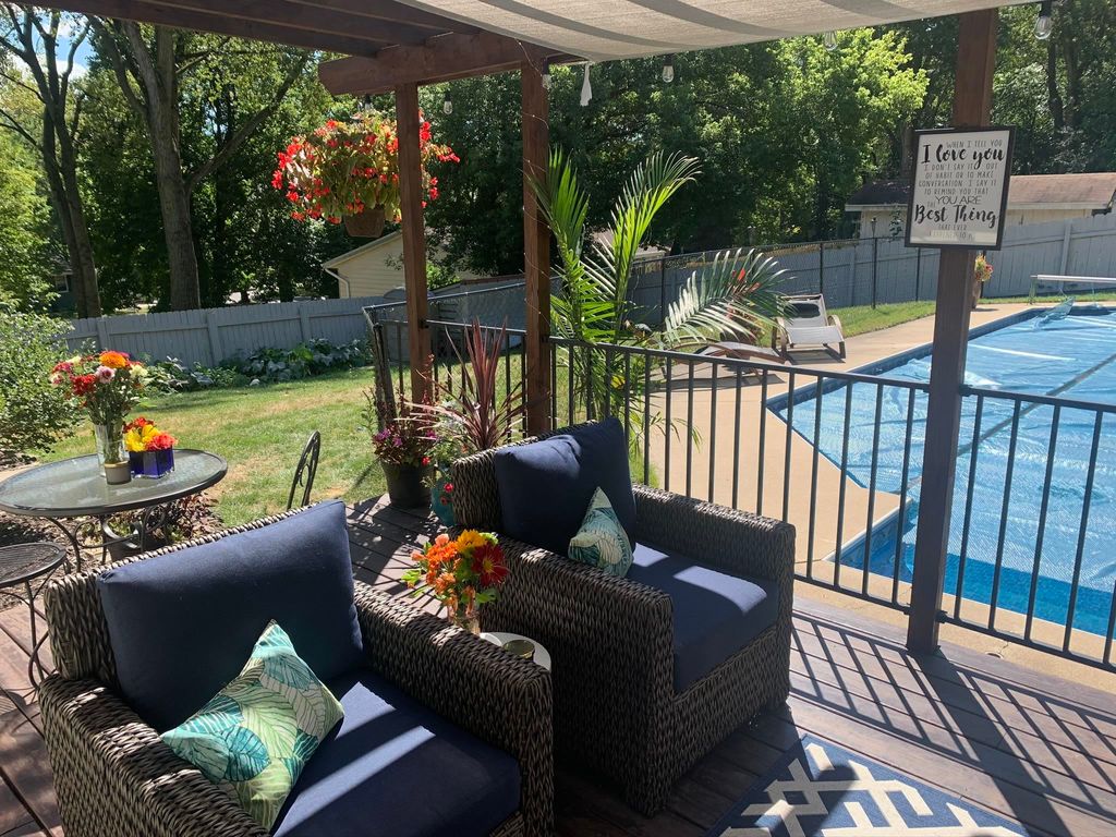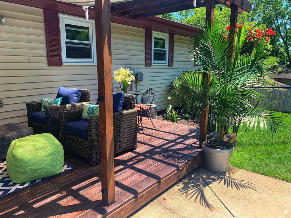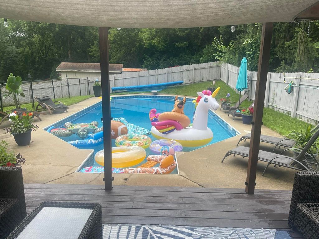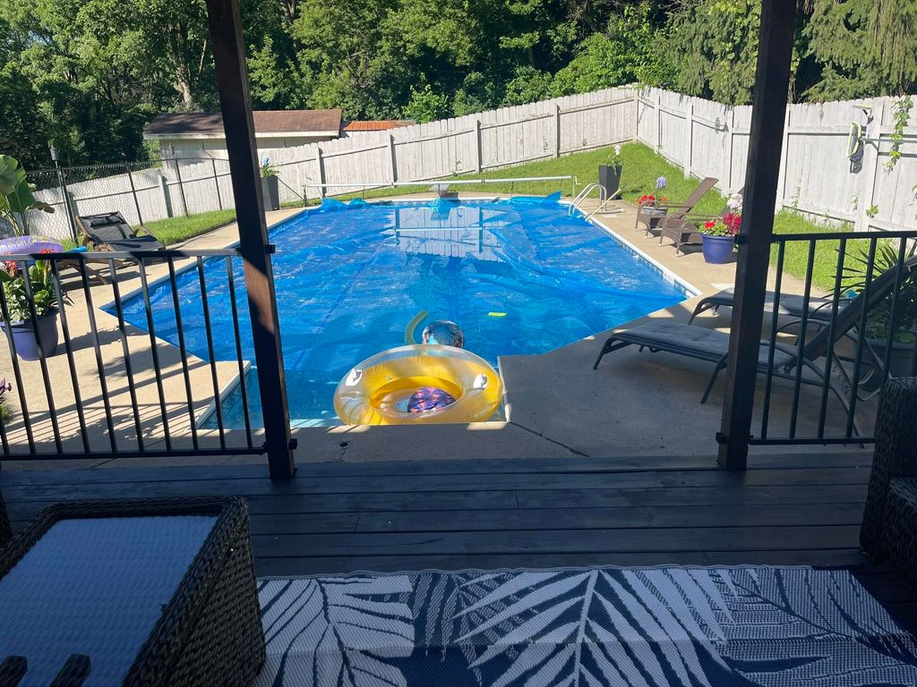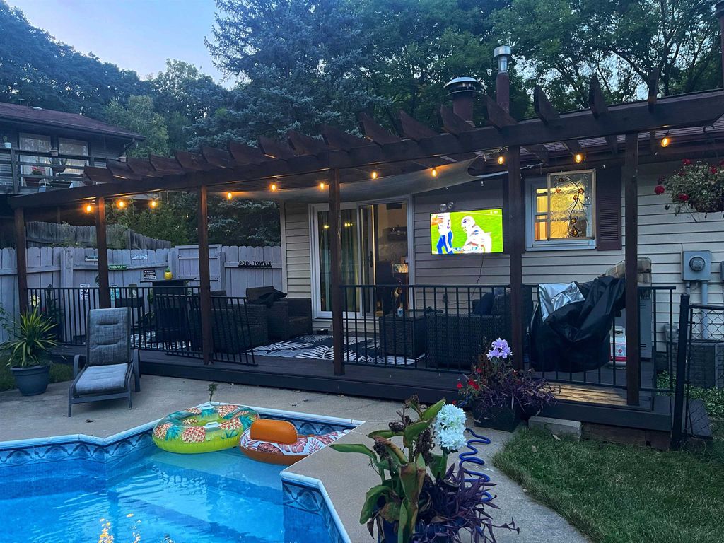 SHOWINGS BEGIN 2/28/2026 Nestled in a serene cul-de-sac, this charming two-bedroom, one-and-a-half-bath home is a true sanctuary, perfect for first-time homebuyers or those who love to entertain. Step outside to an expansive backyard oasis featuring a large, beautifully crafted in-ground pool, ideal for summer gatherings or peaceful relaxation. The deck, adorned with a pergola, offers a serene space to unwind while enjoying the lush backdrop. Inside, a double-sided fireplace anchors both the living room and kitchen, creating a warm, inviting ambiance. The master suite offers a private bath with a shower, while a full bathroom serves the main floor. The finished basement includes a convenient half bath with a toilet and sink. Best of all, this gem backs up to the peaceful High Stand Park, a frisbee golf course and nature trail, ensuring privacy with no rear neighbors, just calm and quiet. This is a home you'll never want to leave.