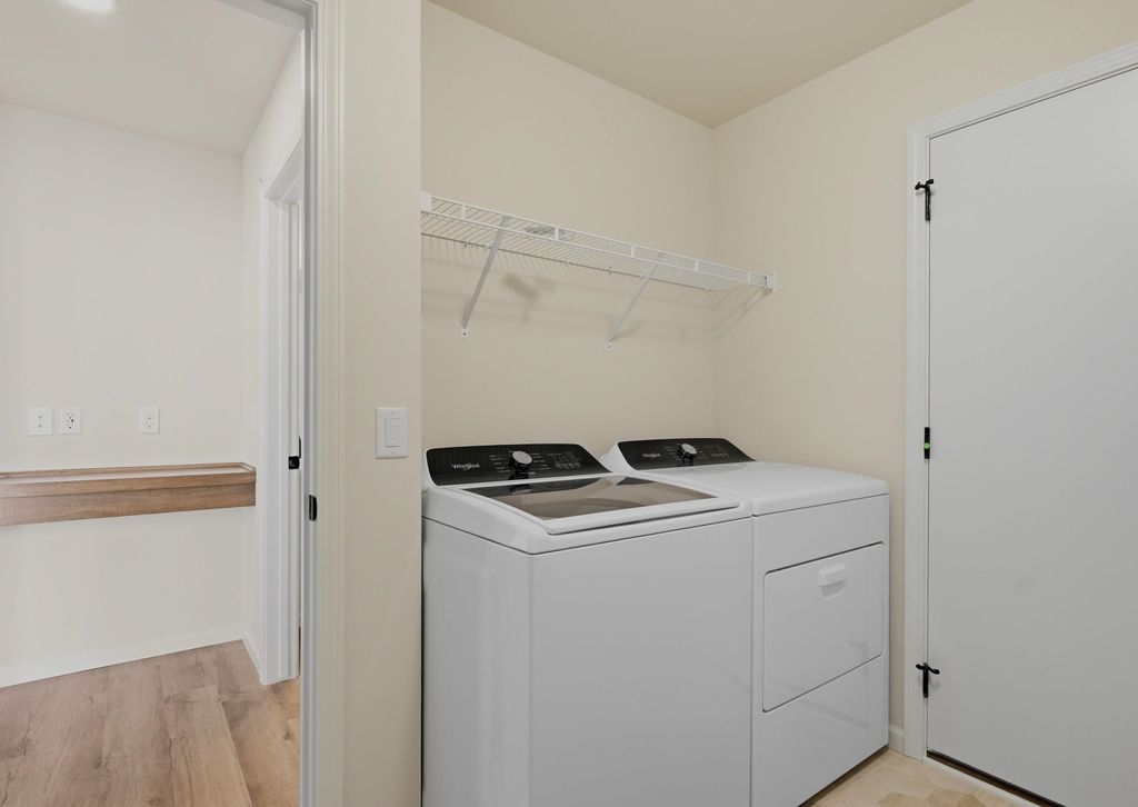 This Emerald home features a thoughtfully designed, open-concept layout ideal for modern living. Offering 3 bedrooms, 2.5 baths, and a 2-car garage, this home showcases locally made, custom Auburn Ridge® cabinetry, doors, and trim crafted to last. The stylish kitchen includes a center island, quartz countertops, and quality finishes from trusted brands like Kohler®, Moen®, and Shaw®. Durable luxury vinyl plank flooring enhances main living areas, while painted solid-core doors provide superior sound control. Designer lighting curated from Kichler® and Visual Comfort & Co. adds a polished touch. Smart Home+ technology with integrated lighting control brings everyday convenience. Enjoy added peace of mind with a one-year warranty.