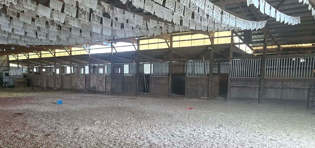 Equestrians dream property on 11.43 fully fenced acres! Features a 17-stall horse barn and an impressive 130x90 indoor riding arena, perfect for year-round riding and potential private events. Currently generating $500/month from boarding two stalls, with 15 additional stalls offering strong income potential. Raised ranch home with 4 bedrooms (2 main level, 2 in lower level) and full exposed walkout. Updated kitchen all new cupboards and beautiful quartz counter tops! All appliances included! Wood burning fireplace. Nice deck on the land. Separate fenced dog run/ 2 storage sheds/ 2 car garage w/wood burning stove. Tree program in progress including black walnut, peach, pear, spruce, and white oak trees. Enjoy gorgeous sunrises, sunsets, and stunning views of the southern horizon in this private, secluded setting. Property has road access from Hwy 81 & Beloit Newark Rd. Seller is in the process of completing projects in the home and is open to to all offers!!
