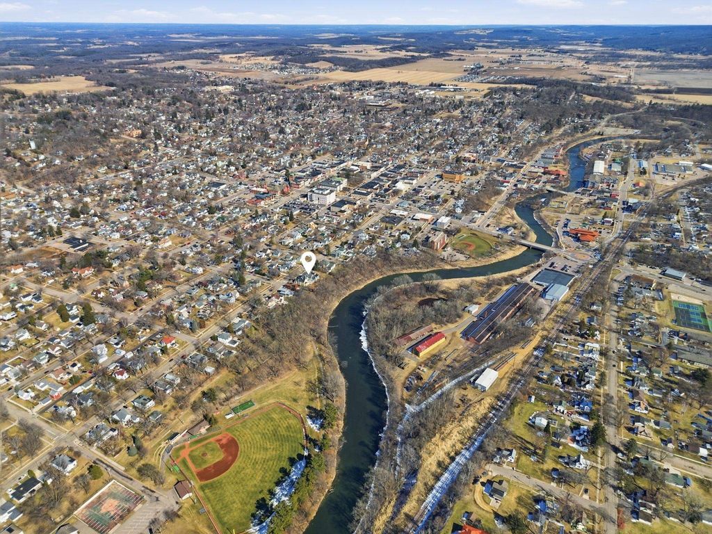 River views. Solar-powered. Move-in ready. This classic home backs up to the Baraboo River on a third-acre lot with native landscaping, a fire pit, and a private side deck. A 6.27 kW solar array (2021) handles nearly all electricity. A heat pump (2024) provides efficient heating and cooling. Roof, furnace, hot water heater, all windows, and a fully rebuilt kitchen (2020) are all recent. Inside: hardwood floors, tall ceilings, oversized windows, and a converted sunroom "” fully conditioned year-round with stained wood trim and light on three sides. Main floor laundry and a natural home office nook round out the main level. The yard was planted with intention "” native species for pollinators and privacy that are established enough to maintain themselves. The Baraboo River runs right behind the home and winds into downtown, where you'll find restaurants, cafes, and local shops just a short walk away. Historic character. Modern systems. A home that's been cared for, not just lived in.
