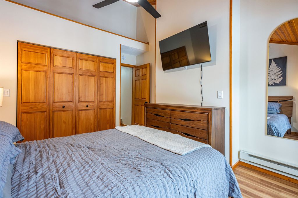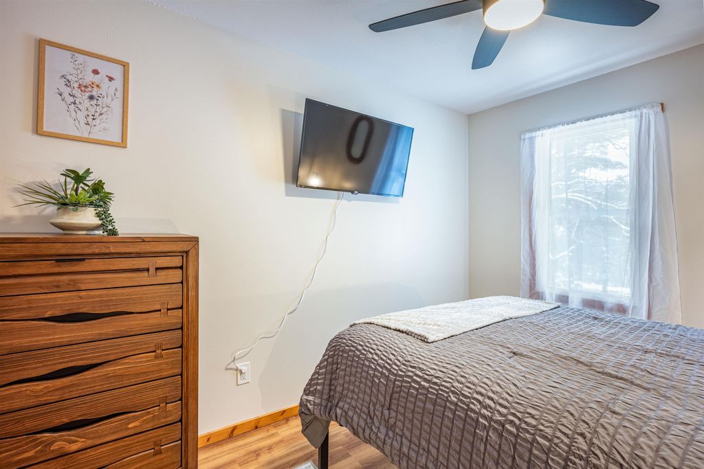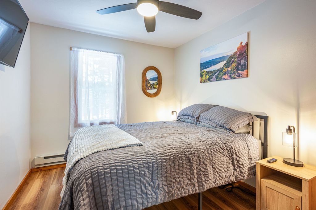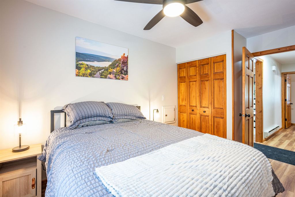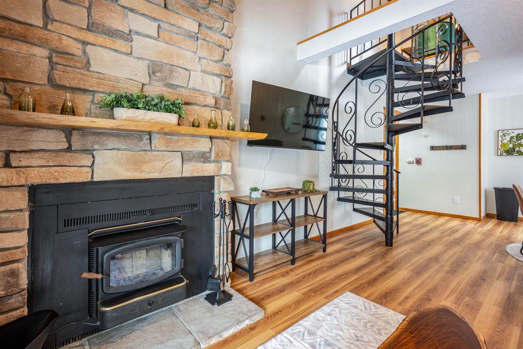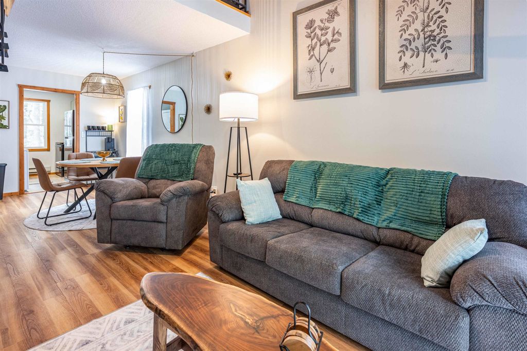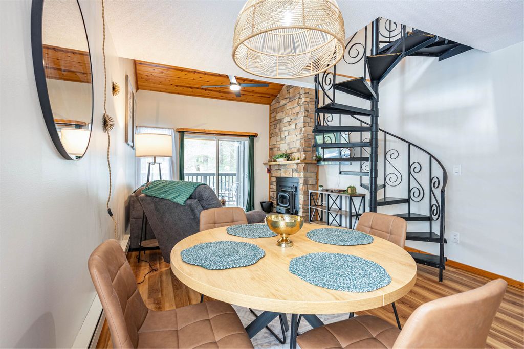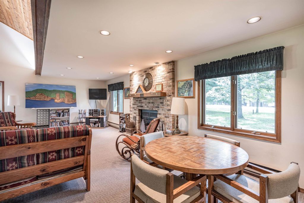 This turnkey, fully furnished, recently renovated end-unit condo at the Dells Club is move-in ready for you and your guests. This rare three-bedroom, one-bath condo is located just outside Wisconsin Dells, offering peaceful surroundings away from the hustle and bustle. Updates include a stunning floor-to-ceiling stone fireplace, luxury vinyl flooring, energy-efficient windows and patio doors, new light fixtures and ceiling fans, beautiful pine tongue-and-groove ceilings, solid six-panel doors, and a private balcony overlooking the outdoor pool. The kitchen is fully stocked. Enjoy fantastic amenities including river access, tennis and pickleball courts, outdoor pool, fitness area, clubhouse for gatherings, community garden, and more. Schedule your showing today!