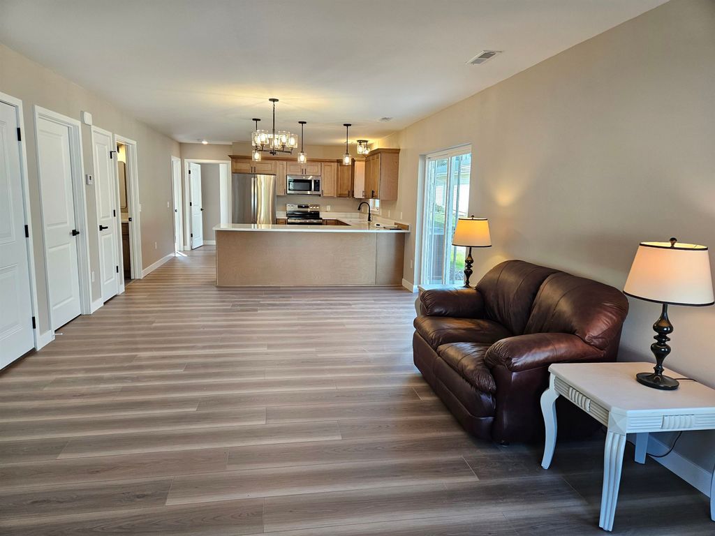Offer-bump. This association is restricted to ages 55 and better. Tucked away down a quiet cul-de-sac is the definition of 'easy living'. Association dues include snow removal and lawn care, so you can just enjoy being home. Everything is on one level for convenience and ease of aging in place. The open floor plan allows for seamless entertaining and living spaces. Check out the thoughtfully planned kitchen with lower cabinet drawers - no more getting on your hands and knees to reach that pan in the back of the cabinet. There is also a breakfast bar, stainless appliances and plenty of countertop space. Luxury vinyl plank flooring in all areas, except for tile floors in the bathrooms. 1 year builder warranty included for peace of mind. Licensee interest.