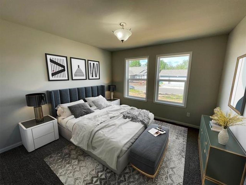 Estimated completion May 2026. Lot 104 in Bell West Subdivision offers over 1,900 sq. ft. of thoughtfully designed living space with a desirable split bedroom layout. The kitchen showcases solid surface counters, a large island, pantry, and stainless steel appliance package with stove, microwave, and dishwasher. Bright white trim and cabinetry highlight the interior, while stone accents add curb appeal to the front exterior. Additional features include seeded yard, first floor laundry, two full bathrooms, nickel finish hardware, blacktop drive, and a basement rough in for a future bath. Pictures shown are of a similar floor plan, finishes will vary. May include a 10 year limited basement waterproofing warranty, giving peace of mind for years to come.