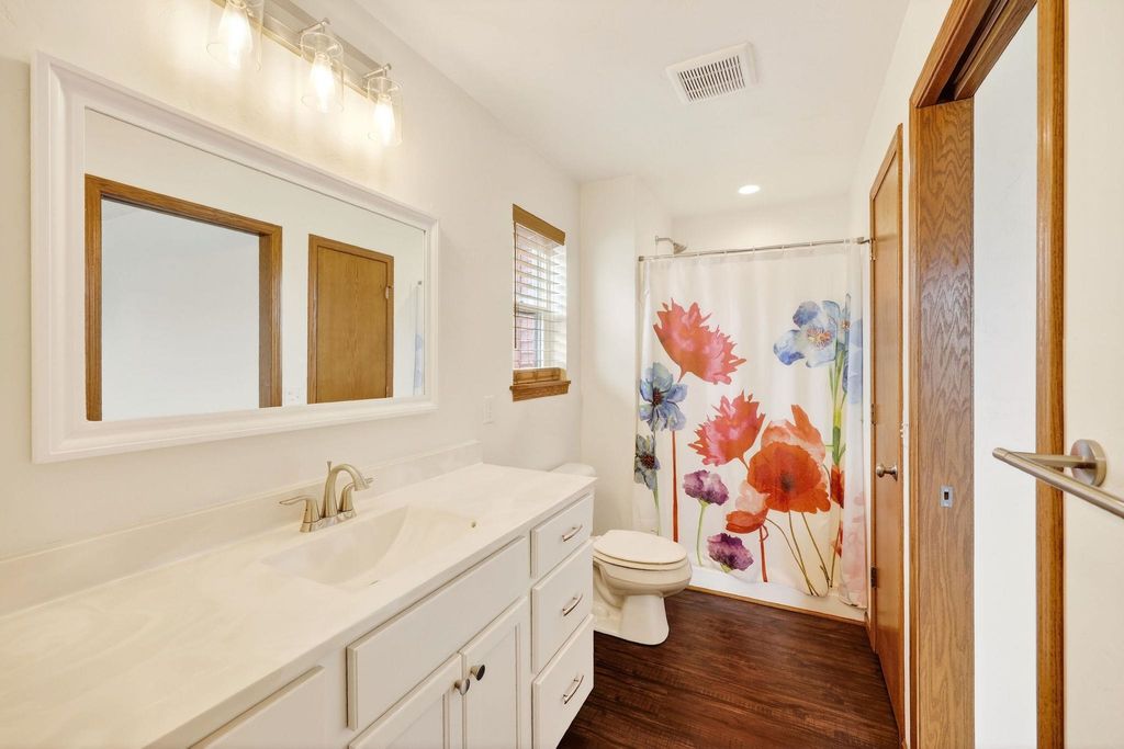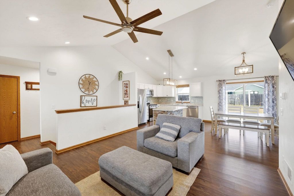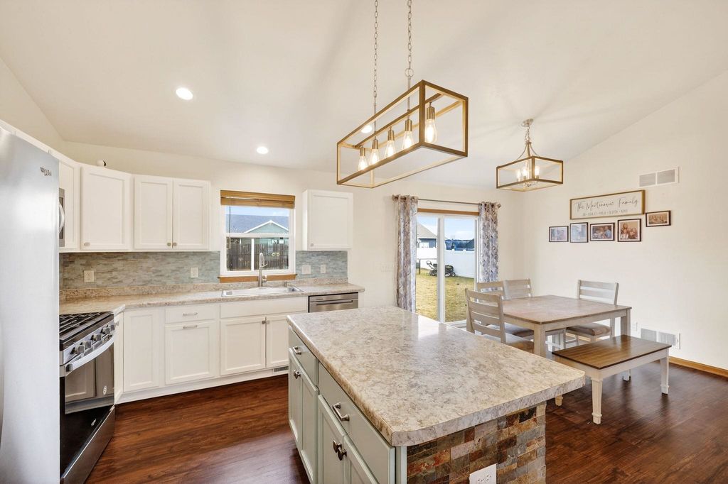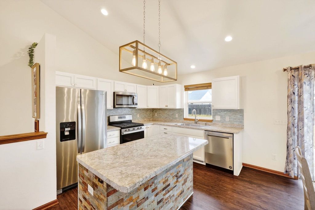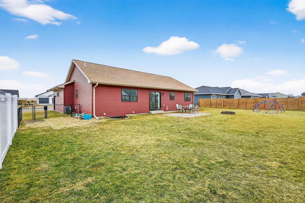 Like NEW home in Westfield Meadows just a stone's throw from Larson Acres Park and Aquatic Center! New in 2025: Roof, siding, gutters, fascia, garage door and a couple of windows. The minute you step into this home, you'll notice the lovely new flooring installed two years ago and loads of natural light. First-floor open floor plan allows for ease of family and friend gatherings and just outside the patio doors, a large, private patio perfect for entertaining on those warm summer nights. The lower level with 4th bedroom, full bath, family room and romper room are great when you need separate space.